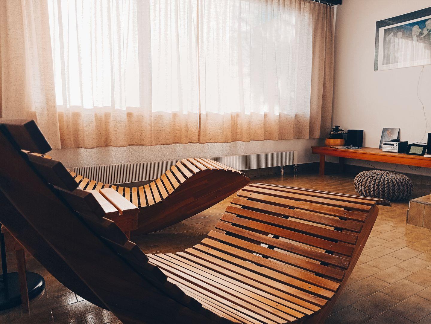 Zur gemeinschaftlichen Nutzung gehören ein Hallenbad mit Liegewiese, Sauna zur privaten Nutzung*, Fitness und Bewegungsraum, Billard*, Tischfussball und Kaminstube. (*kostenpflichtig)