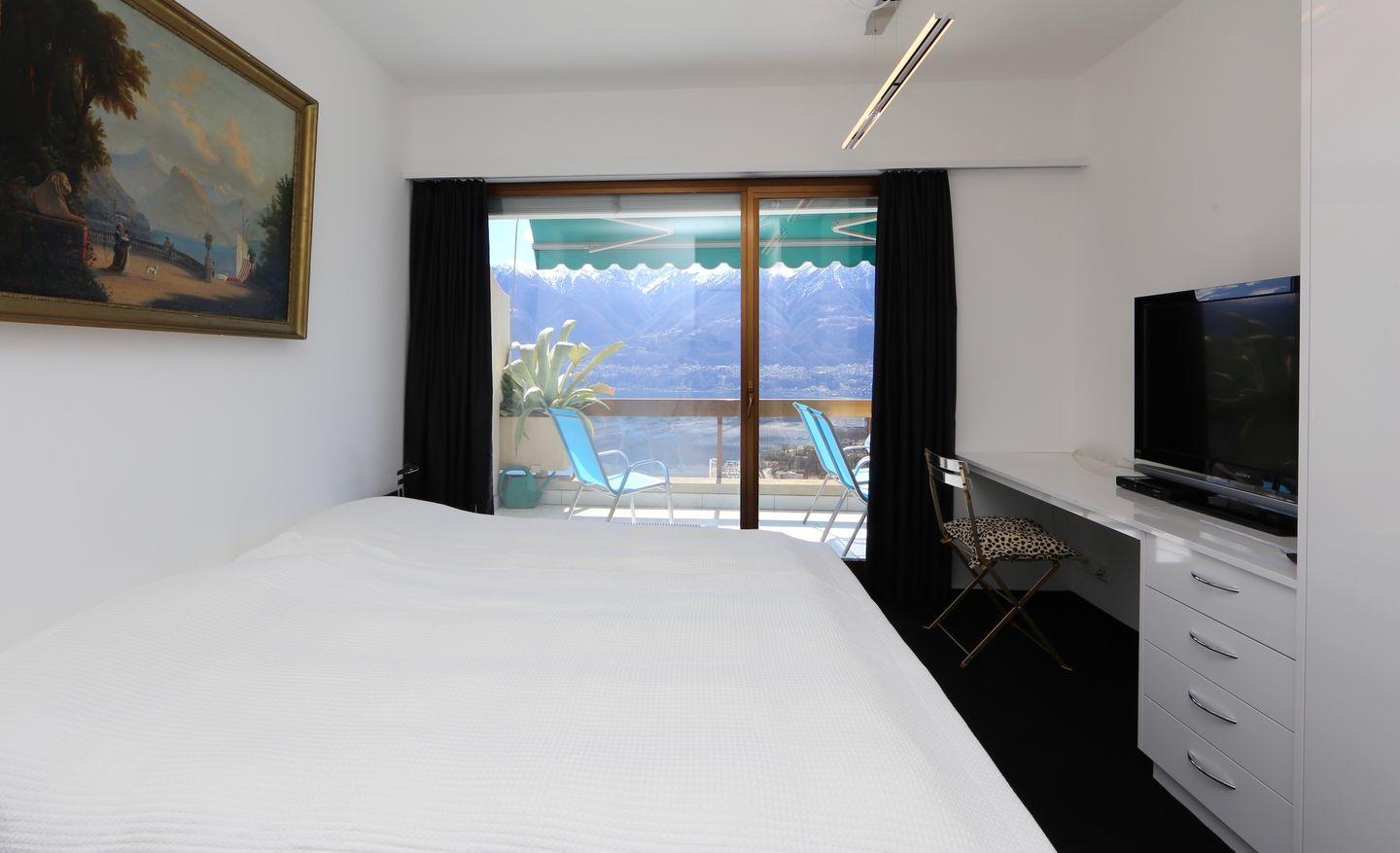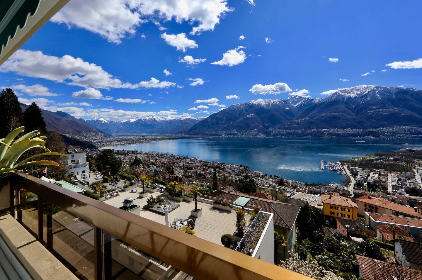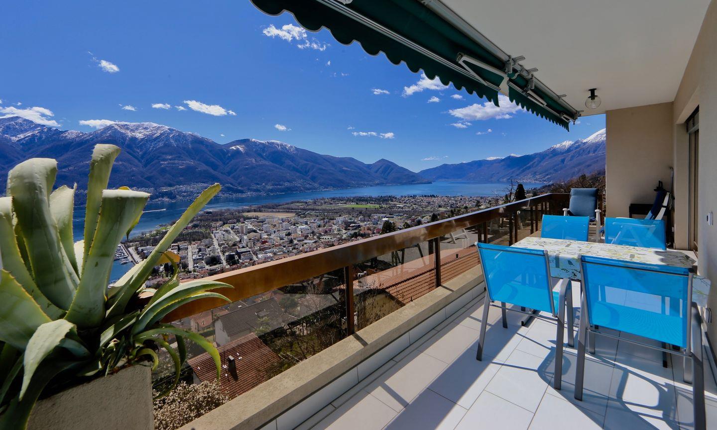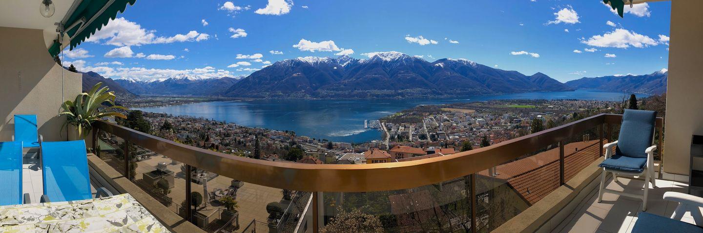 Grosser, möb. Balkon mit Panorama-See- und Bergsicht.