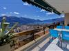Grosser, möblierter Balkon mit Panorama-See- und Bergsicht.