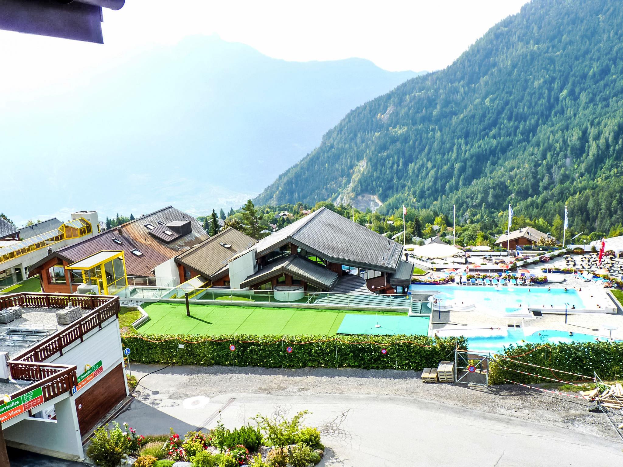 Centre thermal: The swimming pools and spa are part of the Thermal Centre and entrance fees are not included in the rental price. Prices can be found on their website. Residence "Sources, Thermalies, Eaux-Vives", 3 storeys. In the district of Mayen Blanc, in a quiet, sunny position, 1.5 km from the skiing area. For shared use: indoor pool (extra). In the complex: restaurant, bar, breakfast room, sauna, fitness room, massage, steam room, solarium, hot tub (all extra), kiosk, lift, storage room for skis, central heating system, washing machine (extra), tumble dryer (extra). Motor access to the house. Communal covered parking. Shop, bakery 900 m, bus stop 50 m, thermal baths "directement accessible" 50 m. Golf course (18 hole) 25 km, tennis 1.8 km, ski bus stop 50 m, cross country ski track 1.8 km. Please note: baby equipment on request. Ski bus (free of charge). Free ski bus service to the ski region d'Ovronnaz. Please note: Additional accommodations can be booked.