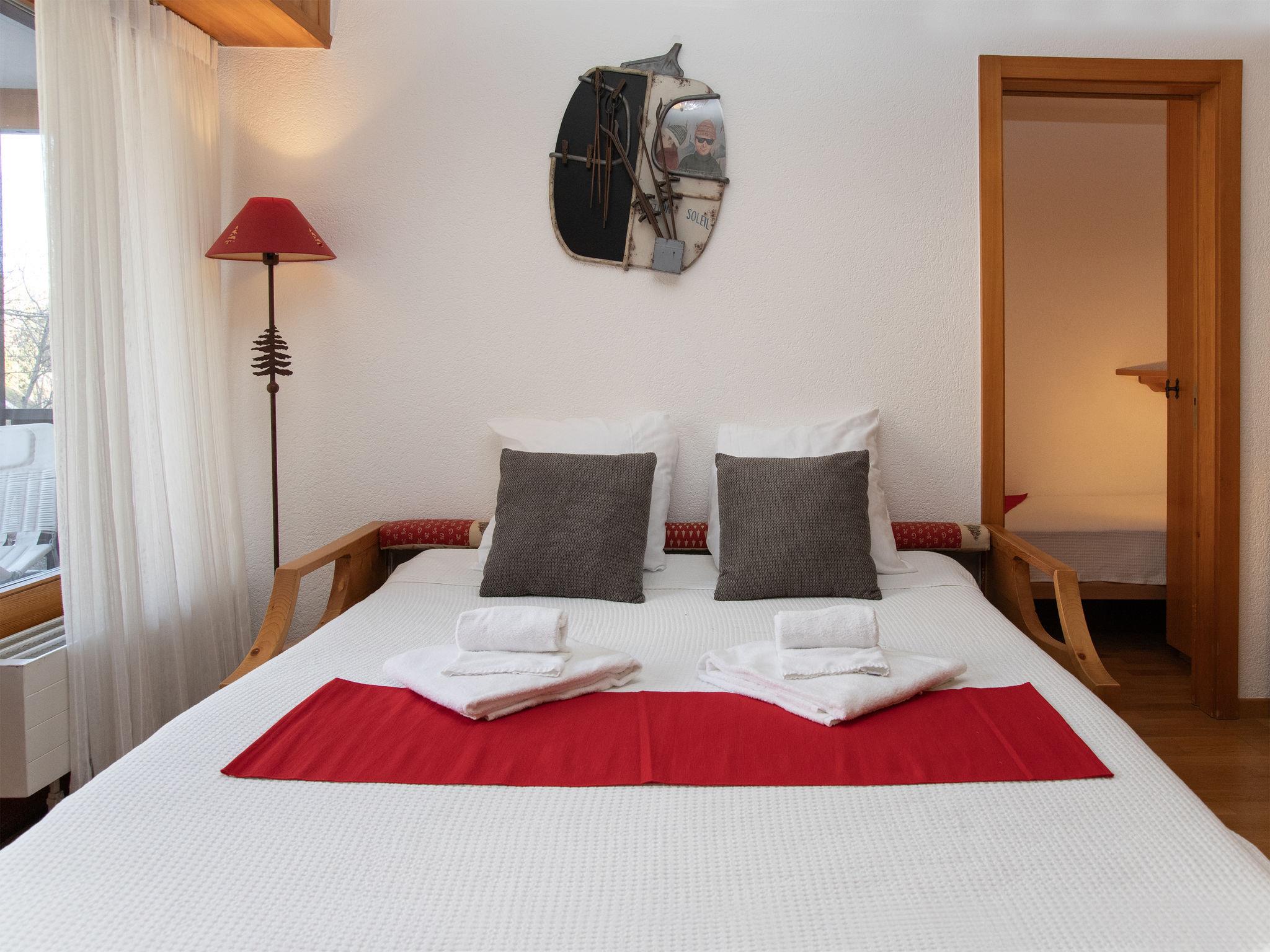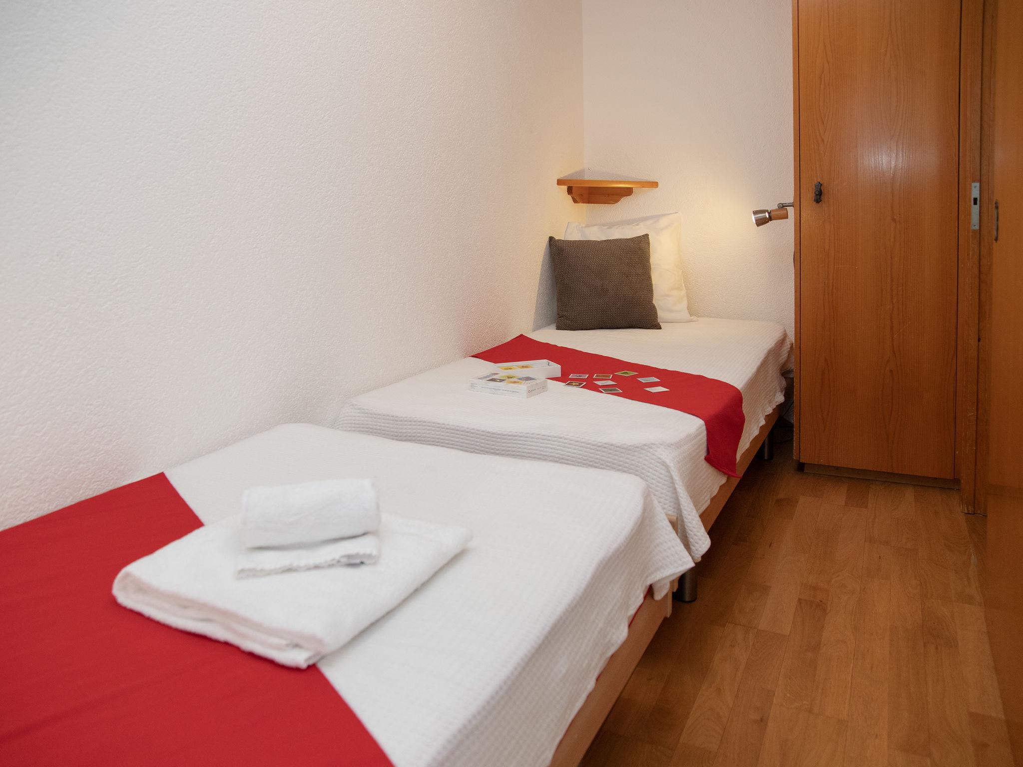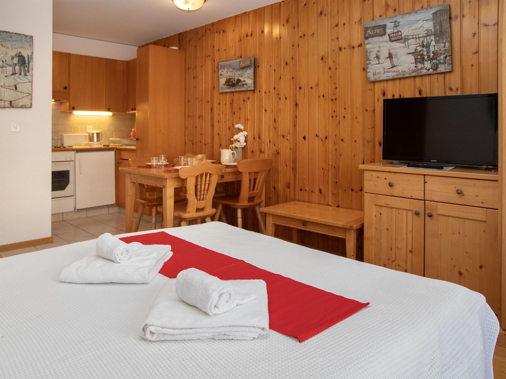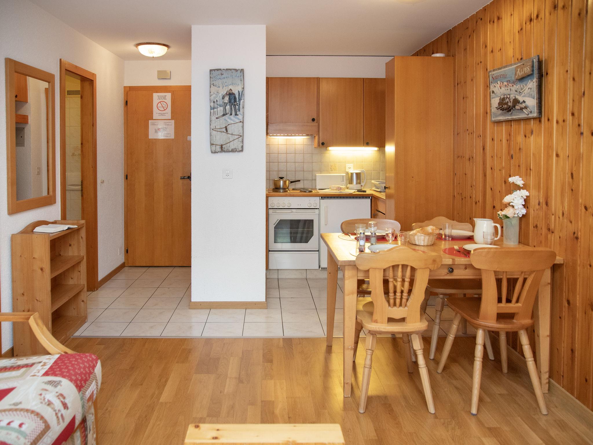 "Eaux-Vives 205", 2-room apartment 42 m2 on 2nd floor, north facing position. Object suitable for 2 adults + 2 children. Practical and comfortable furnishings: living/dining room with 1 sofabed (160 cm, length 190 cm). 1 small room with 2 beds (90 cm, length 180 cm). Small kitchenette (4 hot plates, toaster, kettle) with dining table and cable TV. Shower/WC. Small balcony, north facing position. Terrace furniture. View of the resort. Facilities: hair dryer. Internet (WiFi). Garage space n 205 (1 car). Please note: suitable for families. Non-smokers only.