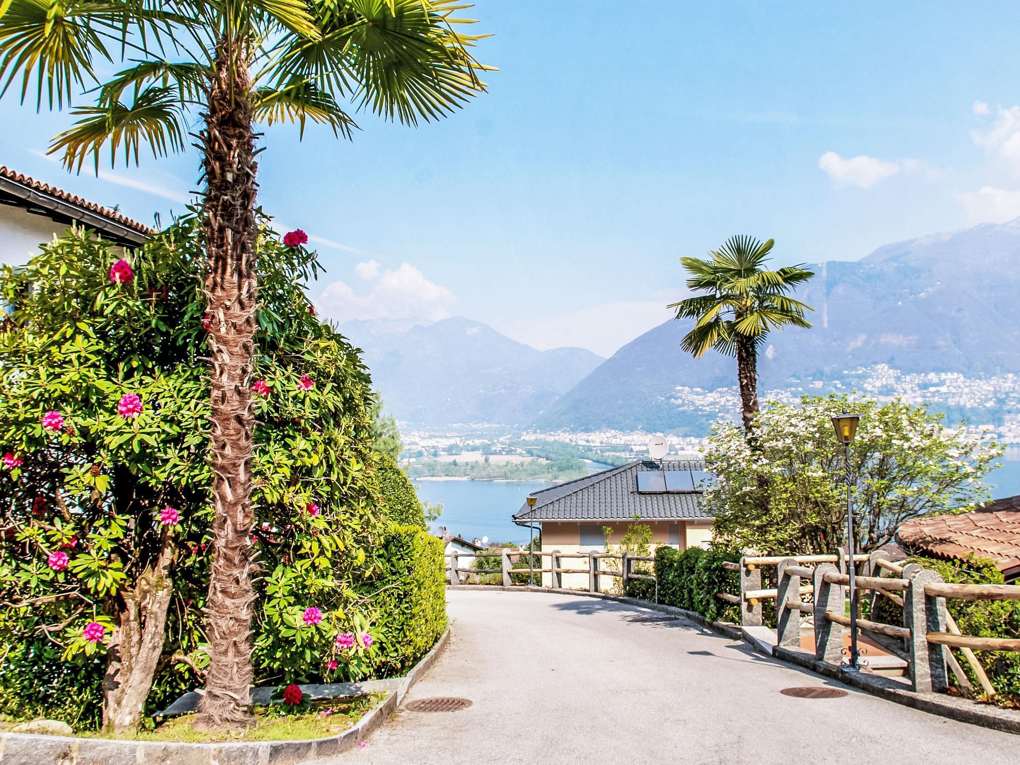 Piazzogna 19 km from Ascona: Modern, comfortable residence "Miralago", surrounded by trees and meadows. 4 houses in the residence. 39 apartments in the residence. Above Vira (3 km), in the district Gambarogno, in a quiet, sunny, elevated position on a slope, along the wooded area, 3 km from the lake, in a cul-de-sac, south-east facing position. For shared use: lawn for sunbathing, swimming pool angular heated (depth 170 - 170 cm, seasonal availability: 15.Apr. - 15.Oct.) with internal staircase and shutter cover. Outdoor shower, terrace, garden furniture. In the complex: reception, lounge, central heating system, washing machine (for shared use, extra). Motor access to the house the grounds. Parking. Grocery, restaurant 300 m, bus stop 50 m. Minigolf 4.5 km, walking paths from the house 100 m. Nearby attractions: Parco Botanico, Piazzogna 300 m, Mercato Luino IT, Mercato Ponte Tresa IT, Bellinzona Unesco-Mercato, Swissminiature, Melide, Schokomuseum, Caslano. Well-known lakes can easily be reached: Lago Maggiore, Lago di Lugano, Lago di Como, Lago Orta. Hiking paths: Gambarogno, Indemini, Monte Tamaro und Splash and SPA, Rivera, Locarno - Ascona Cardada. The 4 typical Ticino houses offer a magnificent panoramic view of the lake. 1 parking space per apartment is included in the price, each additional space is CHF 35/week.