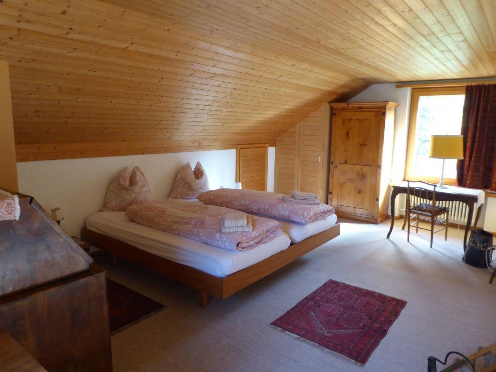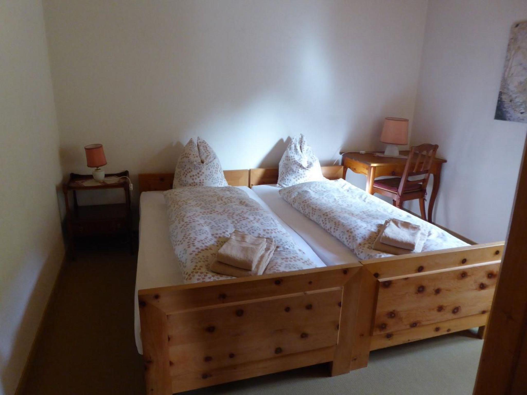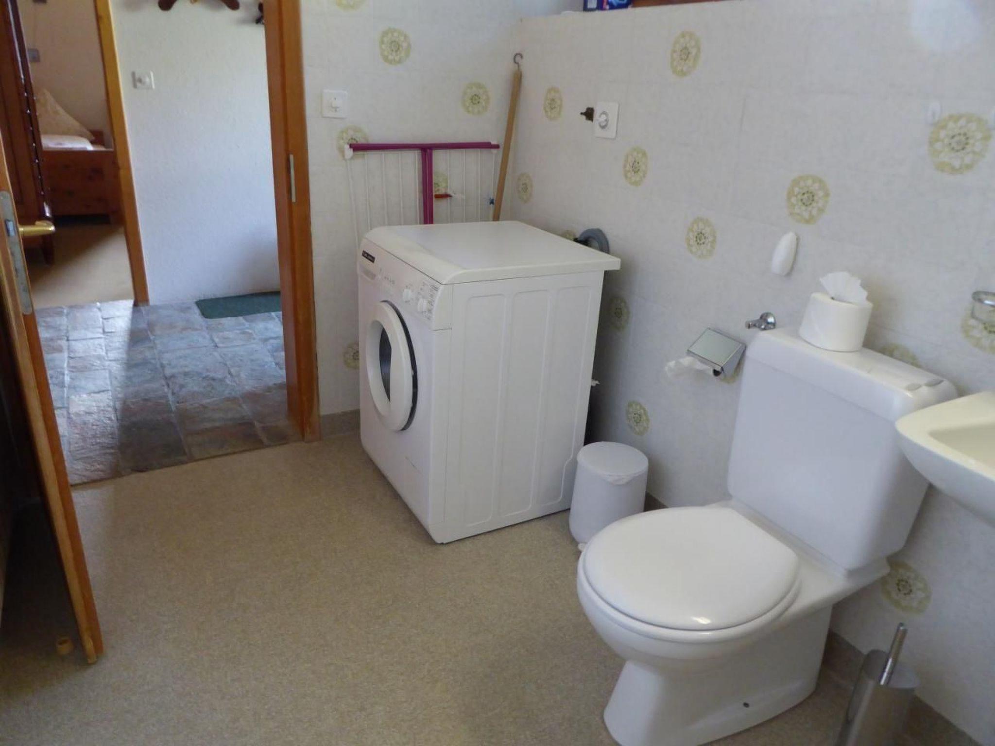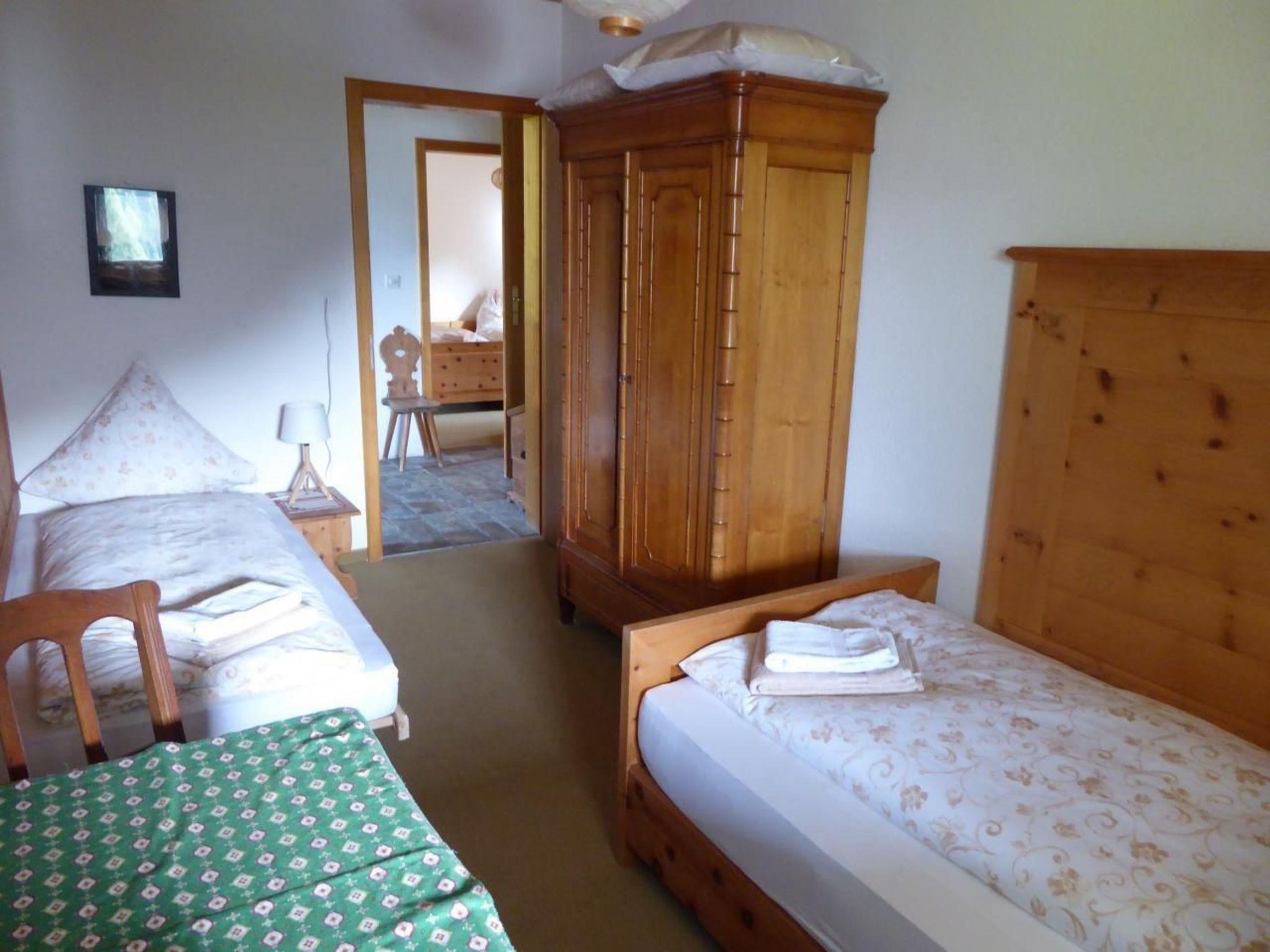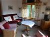 Above the living area is a spacious gallery with two windows. There is a double bed with bedside table. A wardrobe, chest of drawers and wall cupboard provide ample space for storing equipment and clothes. Two workstations with views of the forest or the village are ideal for writing or reading. On the lower floor (entrance level) there are two bedrooms: a double room with a large wardrobe and a room with two separate beds, a wardrobe, table and chairs (wood panelling). Next to it is a spacious bathroom with bath, shower, WC and washing machine. Tables, chairs and two deckchairs are available on the terrace and the cosy spot at the rear exit. You can store your skis in your own garage (with parking space).