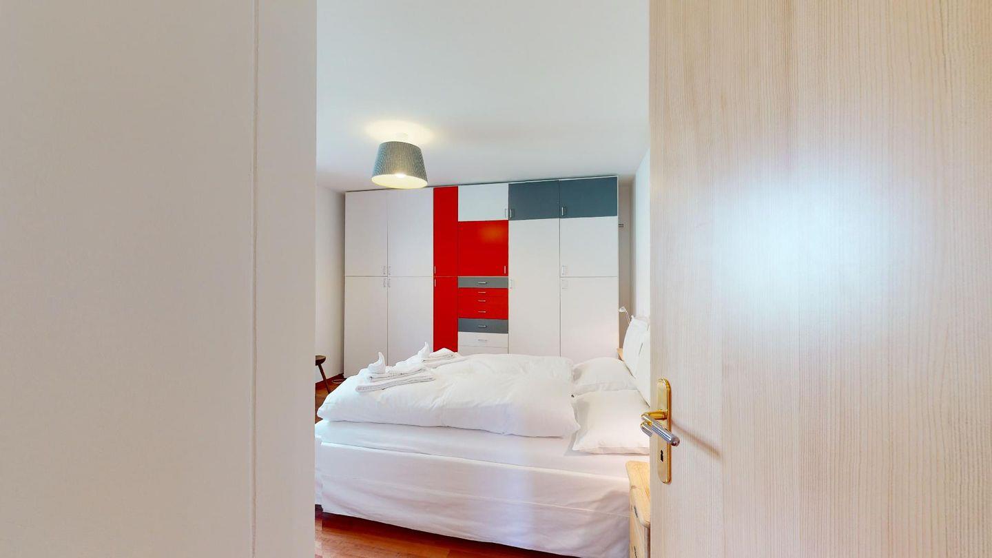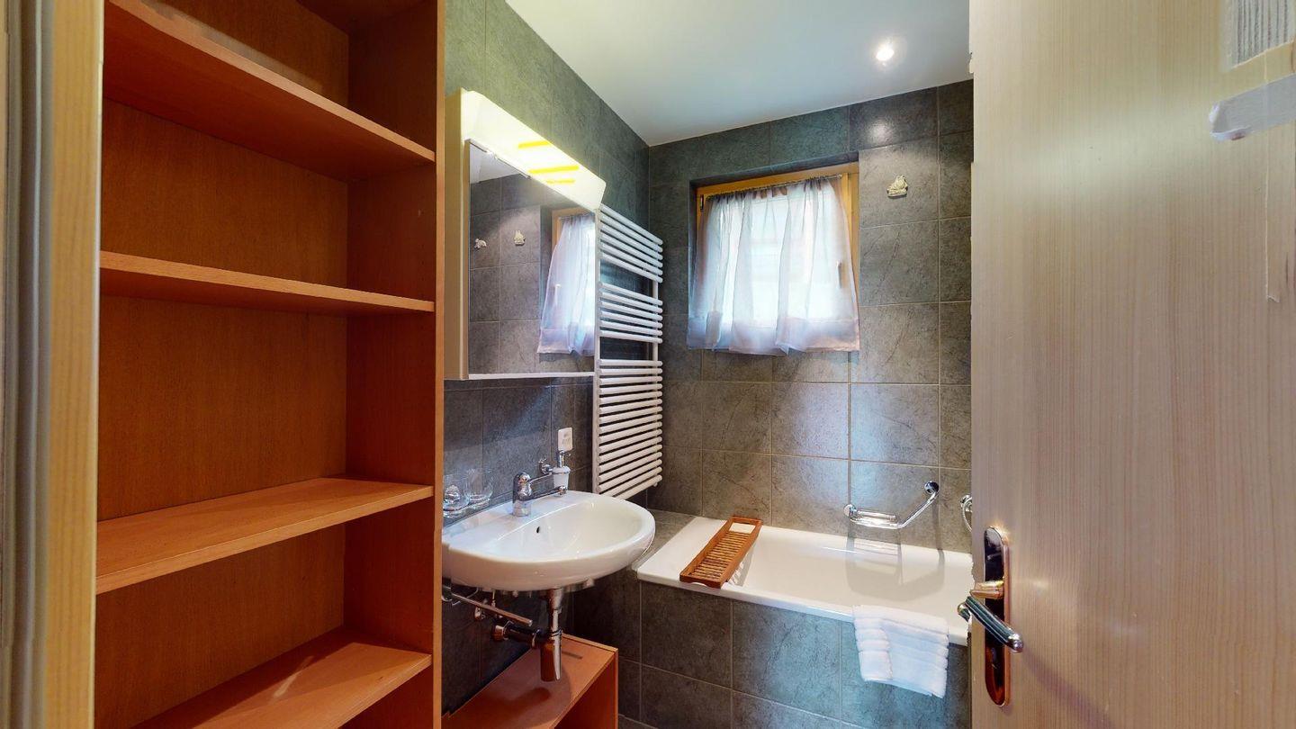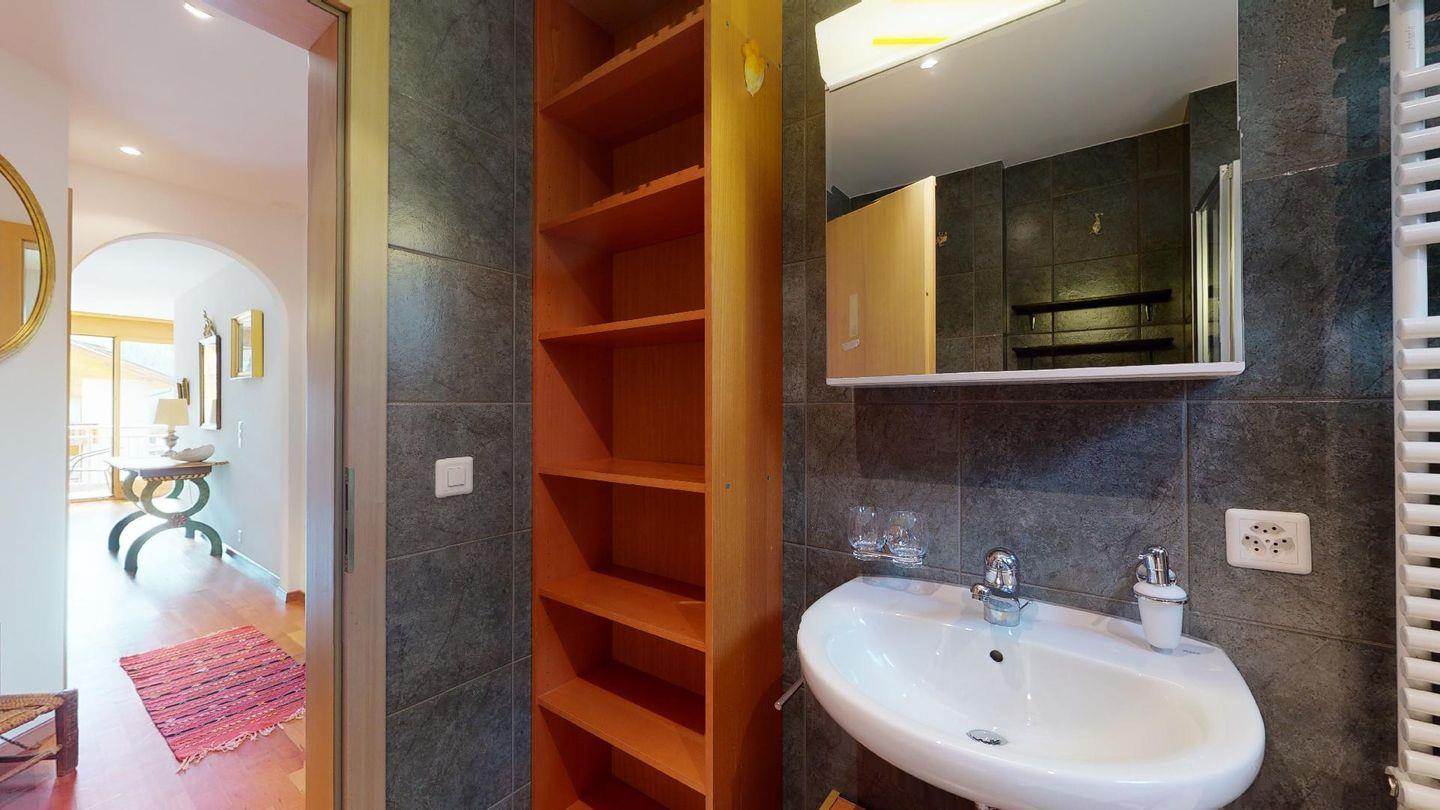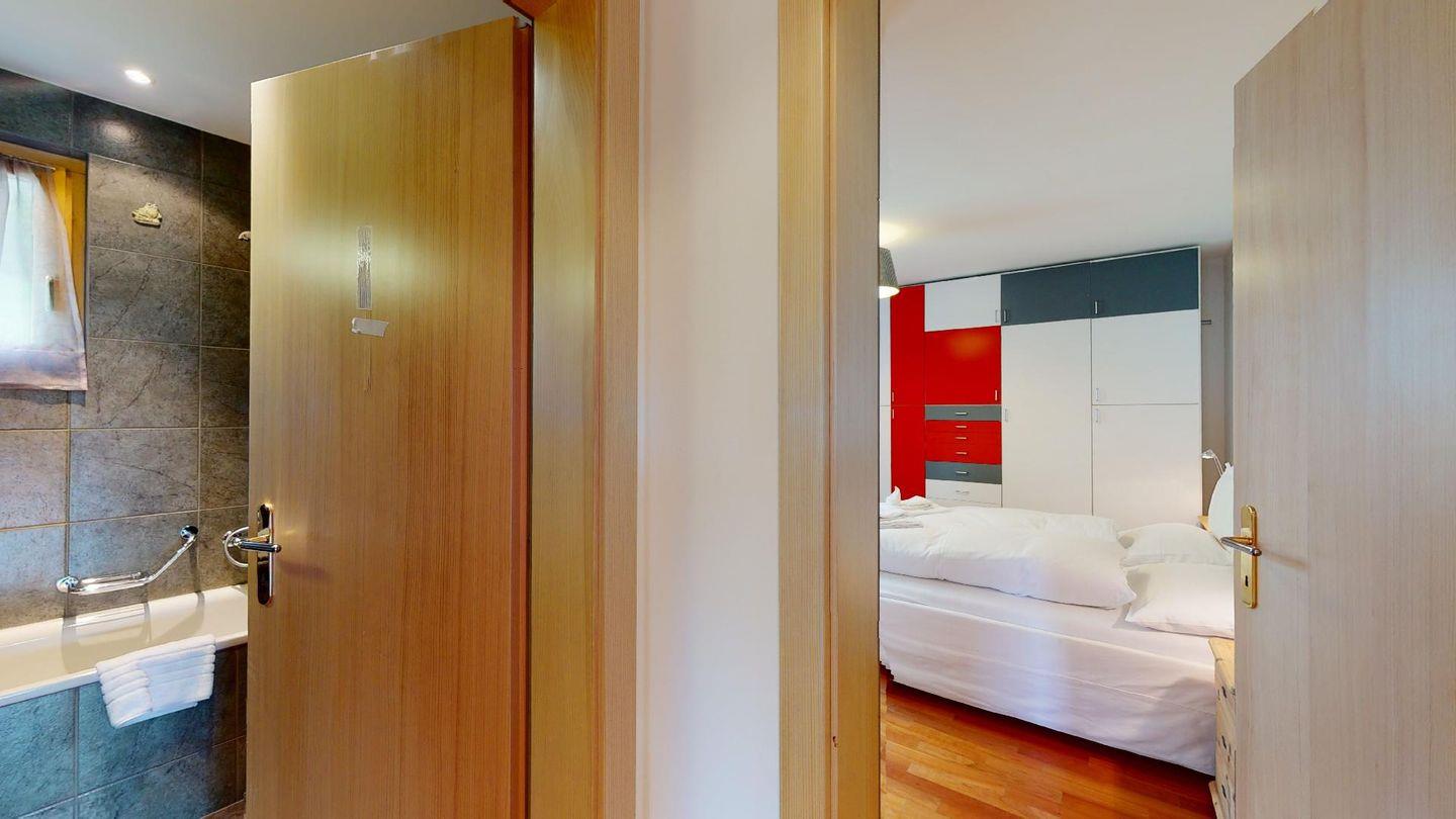 4½-Zimmerwohnung im 1. Stock. Eingang mit Garderobe. Wohnzimmer mit Balkon mit Blick zur Julierkette, Cheminée, TV, Internet und Essecke. Küche zum Wohnzimmer offen, mit Backofen, Herd, Geschirrspüler, Waschmaschine und Tumbler. Ein Doppelschlafzimmer (160cm x 195cm). Ein Doppelschlafzimmer (180cm x 200cm) und ein Einzelzimmer (90cm x 200cm). Ein Badezimmer mit Wanne, Toilette, Lavabo, Bidet und Fenster. Ein Badezimmer mit Dusche, Toilette, Lavabo und Bidet. 2 Parkplätze in der Tiefgarage. Haustiere sind erlaubt. Gemeinsamer Ski- und Veloraum.