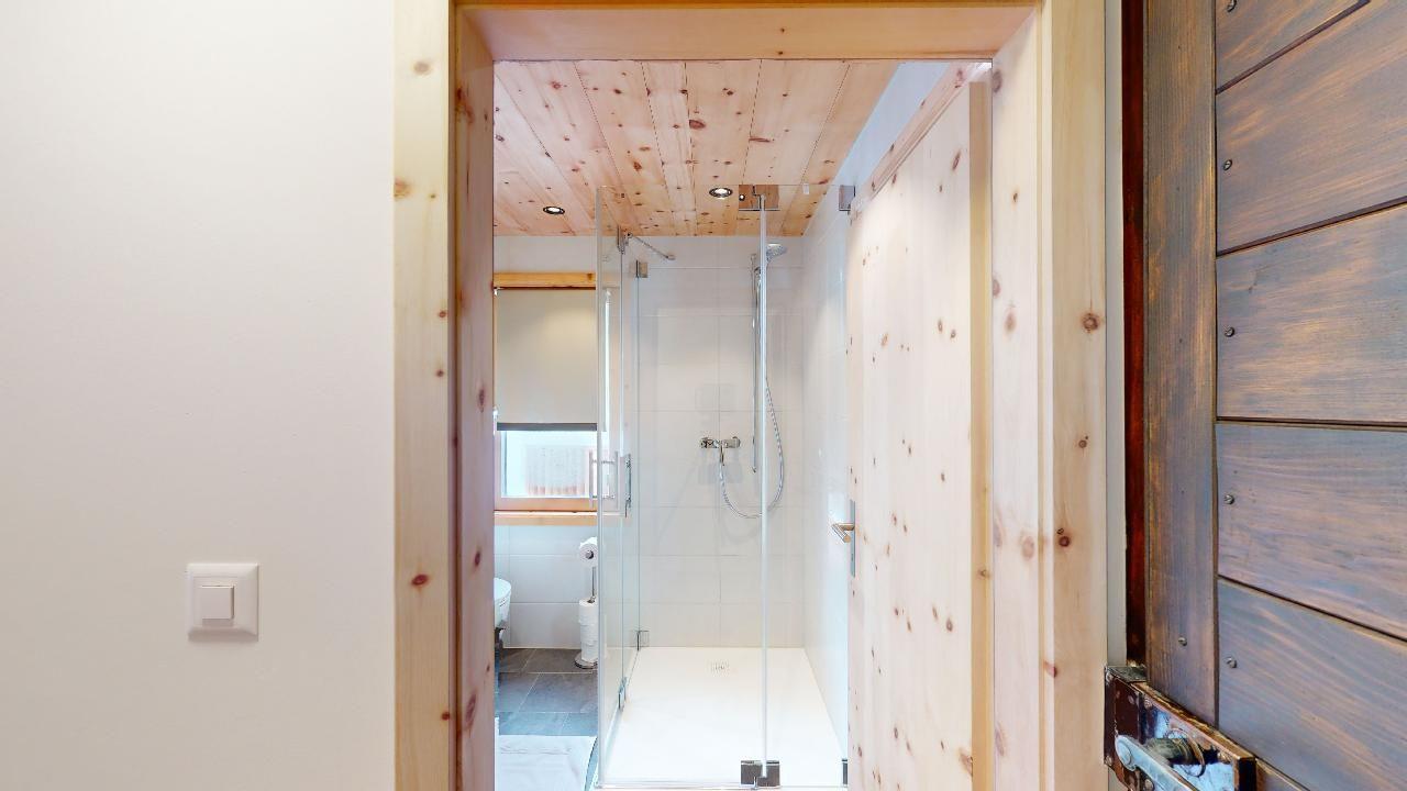 Das Studio wurde im Jahr 2023 komplett umgebaut. Es zeichnet sich durch einen gelungenen alpinen Stil mit viel Holz und modernen Materialien aus. Die Küche, der Esstisch und die zwei Einzelbetten befinden sich im gleichen Raum. Der Eingangsbereich bietet eine kleine Garderobe. Im Badezimmer befinden sich eine Dusche, WC und zusätzlich eine Waschmaschine. Der Gartensitzplatz darf nur im Sommer genutzt werden. Die Studiowohnung verfügt über keinen Fernseher, ist jedoch mit WLAN-Internet ausgerüstet.