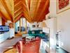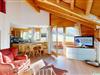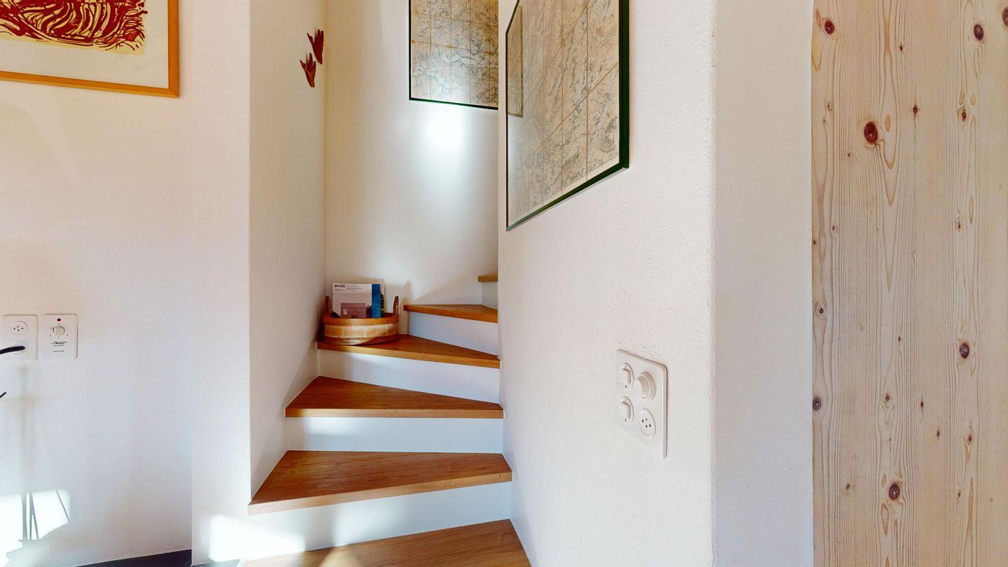 Maisonette 4-Zimmerwohnung im 1. Obergeschoss, Entrée mit Garderobe. Offene Küche mit Kühlschrank, Herd, Ofen und Geschirrspüler. Wohnzimmer mit Essecke, TV, Kamin und Ausgang auf den Balkon mit schöner Bergsicht. Ein Doppelzimmer mit Balkon und Treppe zur Wiese mit Gartensitzplatz (Gartenmöbel vorhanden). Badezimmer mit Dusche, WC, Lavabo, Waschmaschine und Tumbler. Ein Schlafzimmer mit zwei Etagenbetten. Auf der oberen Etage ein zweites Doppelzimmer und ein Badezimmer mit Wanne, Dusche, WC und Lavabo. Zwei Parkplätze in der Garage (Höhe 200cm, Breite 280cm). Nichtraucherwohnung. Haustiere sind nicht erlaubt.