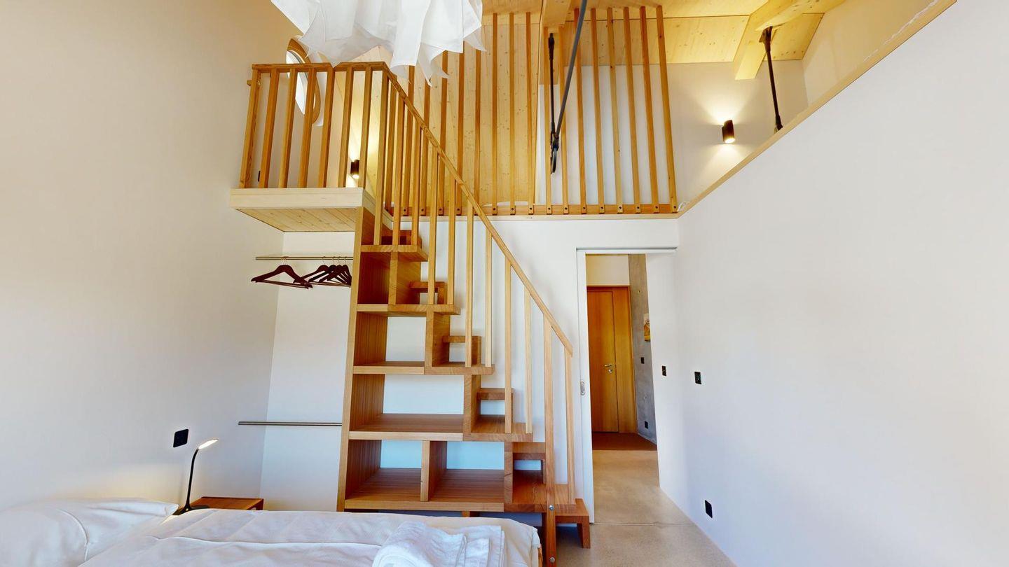 Die Ferienwohnung verfügt über ein grosszügiges Wohn-Esszimmer mit einem gemütlichen Schwedenofen und direkten Zugang zu einem überdachten Balkon, der dazu einlädt, die frische Bergluft und die spektakuläre Aussicht zu geniessen. Zwei komfortable Schlafzimmer, eines davon mit einer charmanten Galerie, bieten Platz für bis zu sechs Personen. Die luxuriös ausgestatteten Badezimmer garantieren höchsten Komfort, und die voll ausgestattete Küche mit Blick auf den imposanten Julier Gipfel lässt keine Wünsche offen. Gegen Aufpreis können Sie den Spa-Bereich nutzen – für ein rundum entspanntes Urlaubserlebnis.