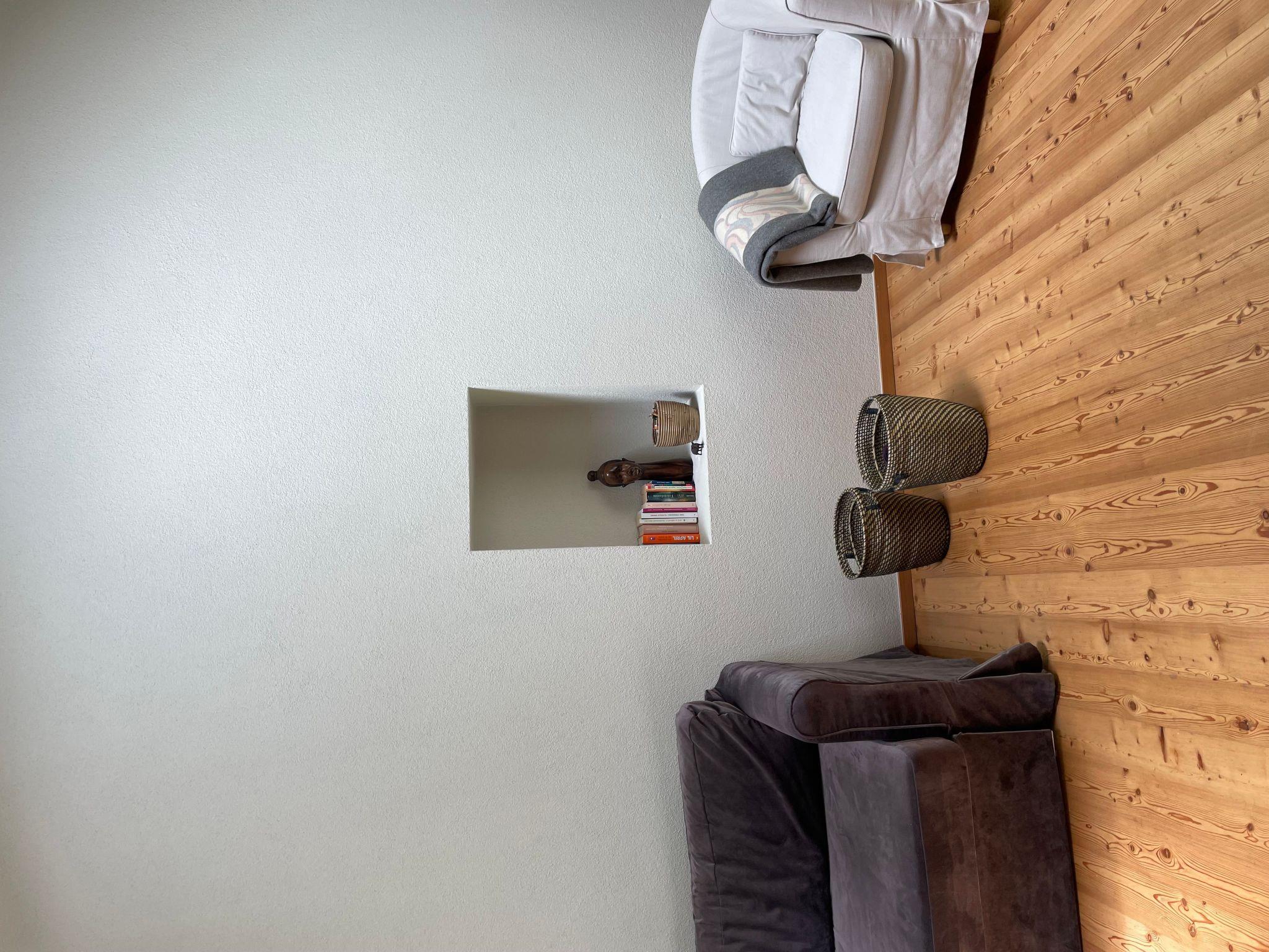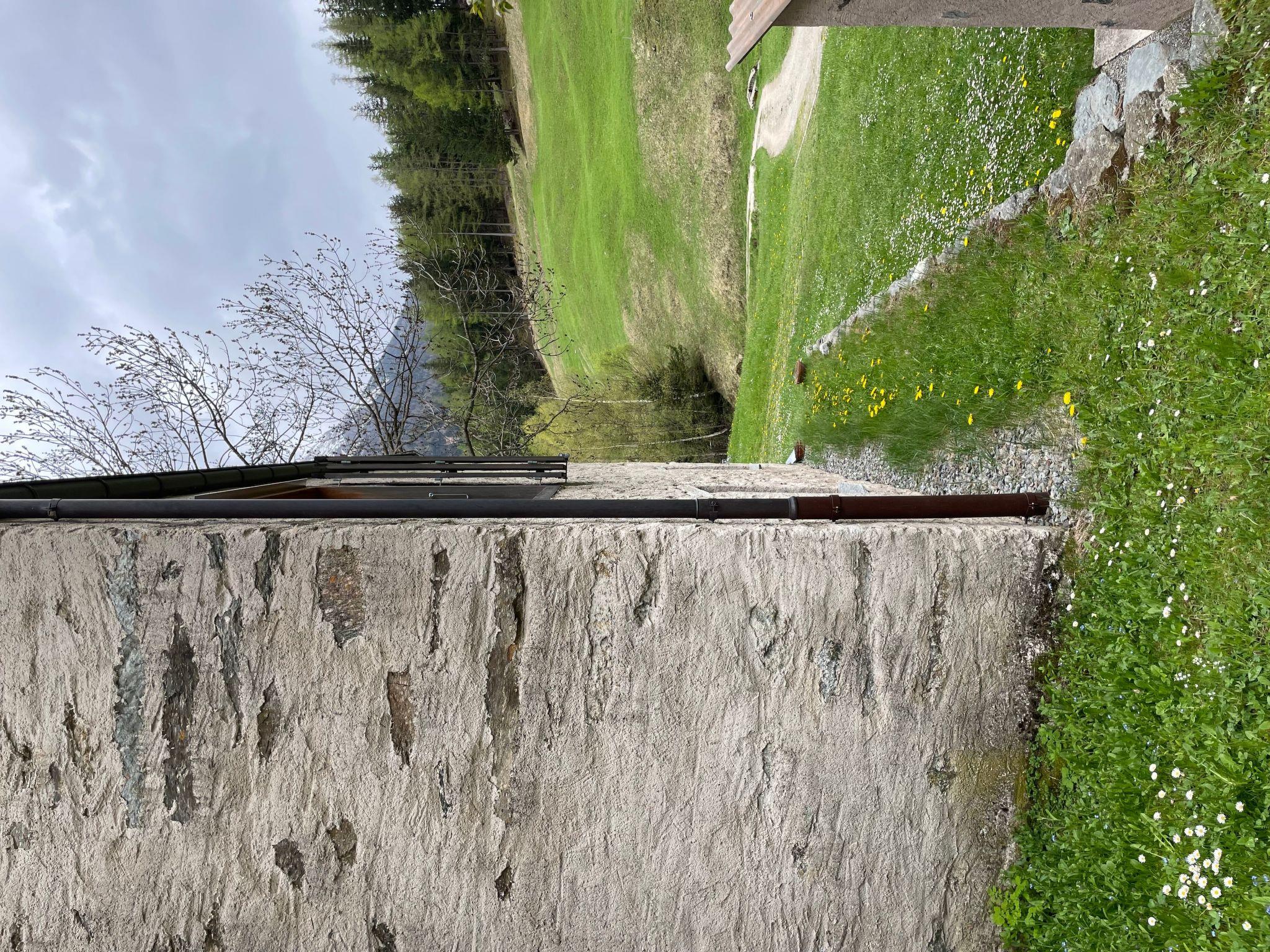 In the outdoor area of the Maiensäss, you will be welcomed by a lovingly landscaped garden for your exclusive use. The renovation of the outdoor area in 2021 with new chairs, table, parasol and a barbecue invites you to spend cosy hours outdoors. The landscaped car park and the provided wood boxes for firewood provide practical amenities during your stay.