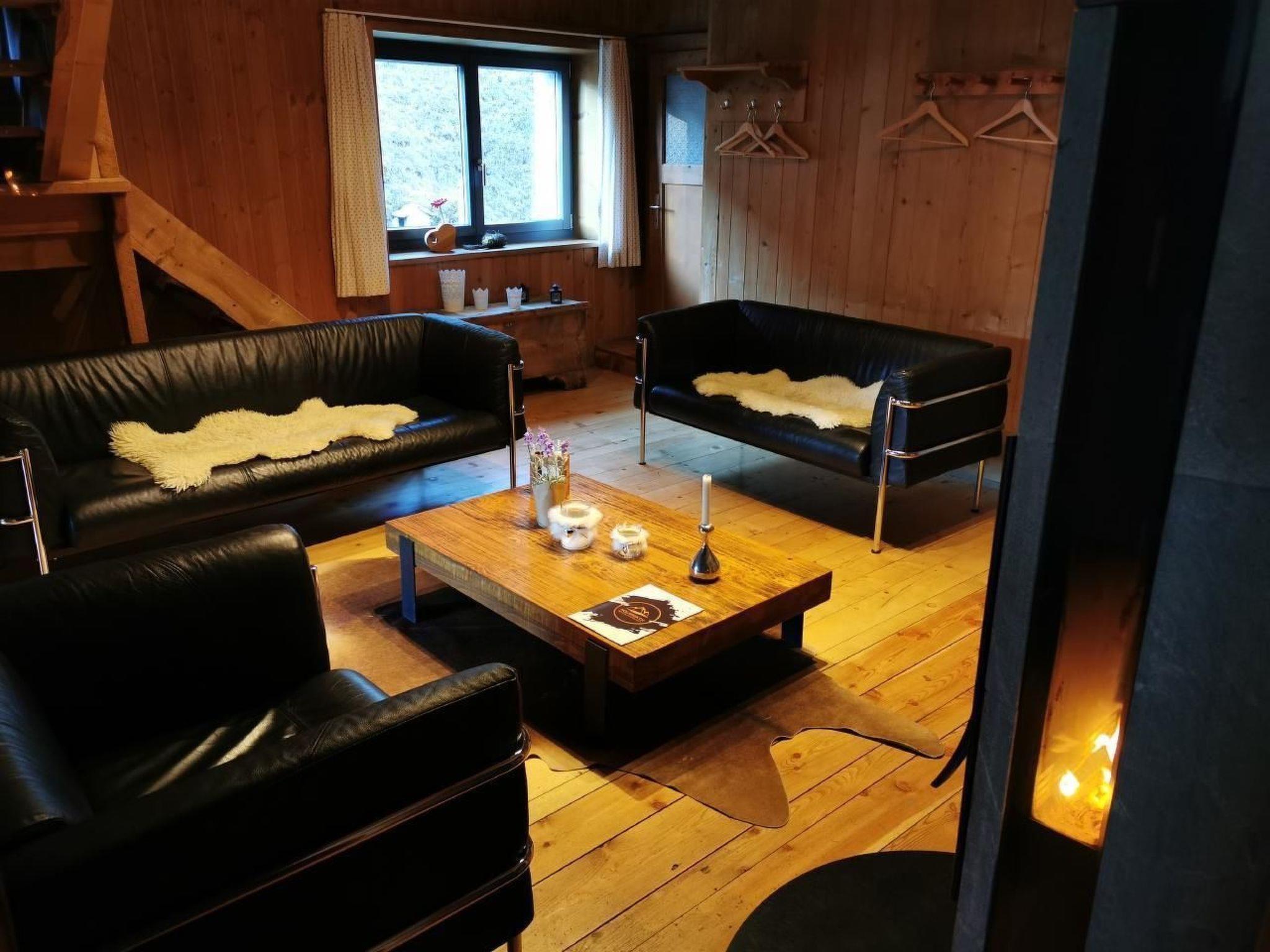 Two bedrooms and an attic room each with a double bed, an attic room with limited height with a double bed, a large living room, a bathroom (with shower and washbasin) and two toilets, a large eat-in kitchen with wood and electric cooker, electricity, heat pump boiler. Bedroom furnishings (bedroom 1): Mattresses (2x) 90 cm x 200 cm, duvets 160 cm x 210 cm, pillows 65 cm x 100 cm. Kitchen equipment (kitchen1): Coffee machine is available:- Bialetti coffee maker, requires instant coffee- Delizio coffee machines, requires Delizio coffee capsules (Migros, Fust, LeShop, Denner) Coffee capsules and coffee powder are not provided Oil, vinegar and salt are available. Refrigerator/freezer are in the basement.