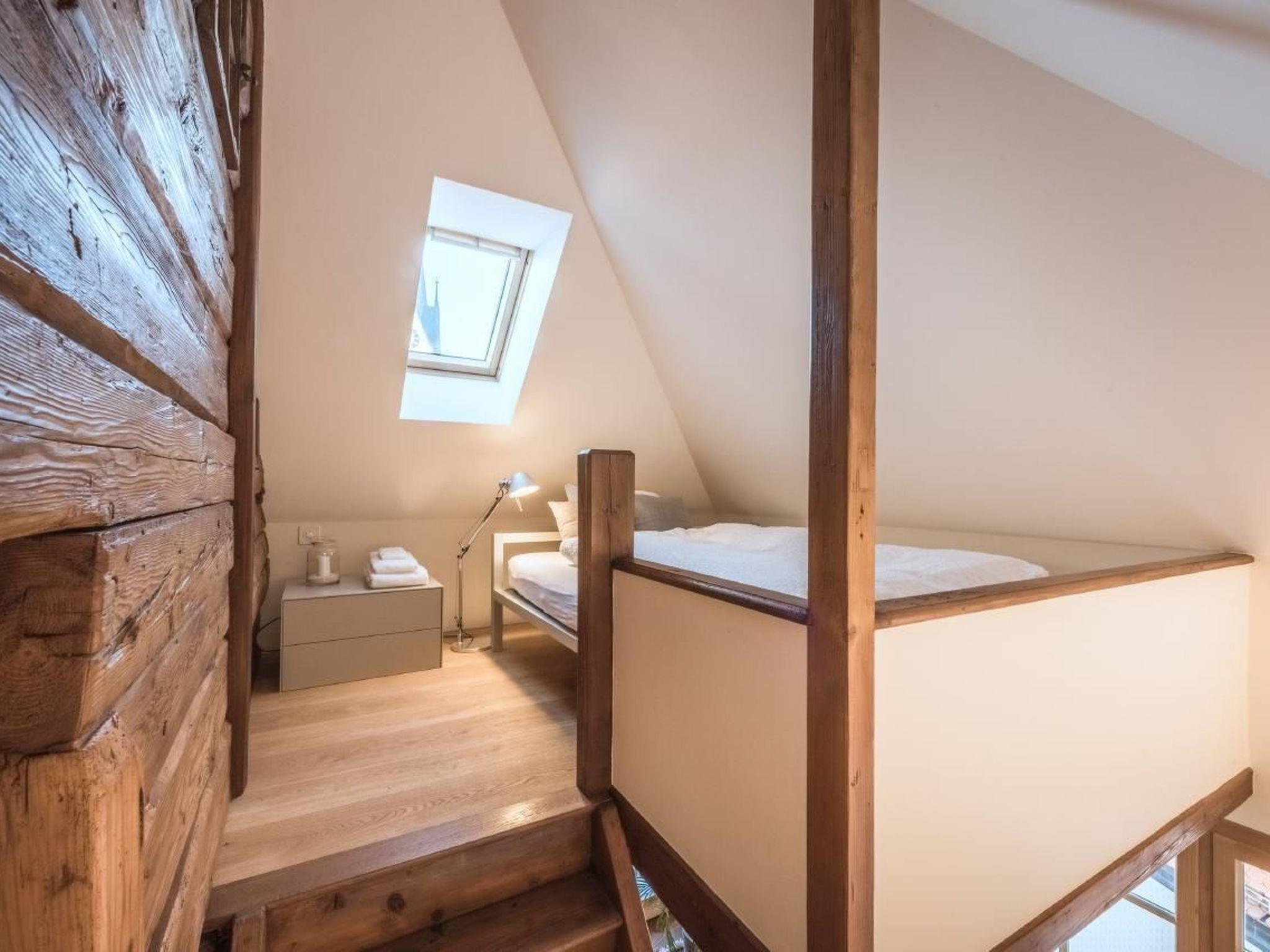 Spending the night here, with a unique view over the Appenzellerland as far as the Säntis, is an experience at any time of year.in the stylishly renovated, listed building on the historic village square of Rehetobel, old building fabric is combined with modernity. The stately five-storey building has served several purposes in its 230 years. Where there is now a pretty pub, the "Gasthaus Dorf5" with a beautiful garden, used to be the post office. The upper floors, which served as the telegraph office and business premises, are now home to three exclusive flats with a high standard of finish. The "Alpsteinpanorama" flat lives up to its name: the bird's-eye view is unique and there are many beautiful places to linger here on two floors with 150 m2 of living space. The 45 m2 living room with central fireplace is connected to the modern kitchen with cooking island and bar by sliding doors. Two bedrooms and a small, open tower room under the roof showcase impressive carpentry from times gone by. One bedroom can also be converted into an ideal retreat or separate TV room in just a few simple steps. The well-insulated but natural building fabric and the generous furnishings are of a very high technical and aesthetic standard, with modern communication and a built-in projection projector in the spacious living room. This special location, often combined with catering from the guesthouse, is therefore often used for smaller seminars and meetings,The central location in the Appenzeller Vorderland is ideal for exploring the Alpstein region, the nearby Lake Constance region and the extremely attractive city of St.Gallen.The flat offers plenty of space for two to five people. The two cosy "roof niche sleeping areas" are popular with children, so that up to seven people can also enjoy the flat. - And if you don't feel like cooking, you can treat yourself in the cosy "Dorf5" restaurant.