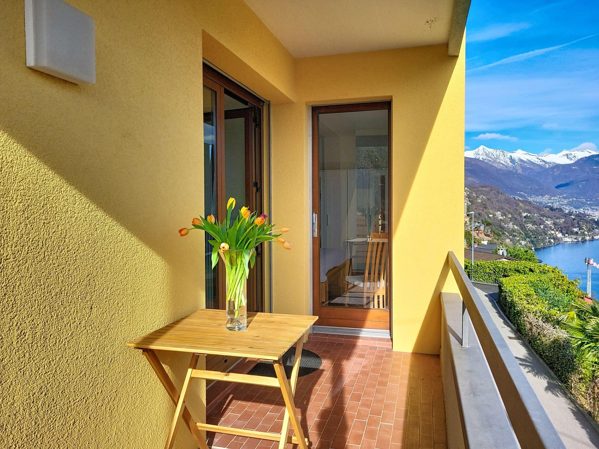 "Apt. Tana dei Leoni", 4-room apartment 85 m2 on 1st floor, south-east facing position. Renovated in 2025, modern and cosy furnishings: open living/dining room with panoramic window with open-hearth fireplace, dining table, international TV channels, flat screen and radio. Exit to the balcony. 1 double bedroom with 1 double bed (1 x 160 cm, length 200 cm). 1 room with 1 bed (90 cm, length 200 cm). 1 room with 1 bed (90 cm, length 200 cm). Open kitchen (dishwasher, 4 ceramic glass hob hotplates, toaster, kettle, microwave, electric coffee machine, Capsules for coffee machine (Nespresso) extra, fondue Set (cheese)). Sep. WC, bath/shower/WC, double hand-basin. Heating. Balcony, terrace roofed, south facing position and, east facing position. Terrace furniture, deck chairs (2). Marvellous panoramic view of the lake, the mountains and the countryside. Facilities: washing machine (extra). Dryer (extra), iron, children's high chair for up to 2 year olds (extra), hair dryer. Internet (WiFi). Parking space n 1 (roofed). Please note: non-smokers only. Maximum 1 pet/ dog allowed. NL-00013153