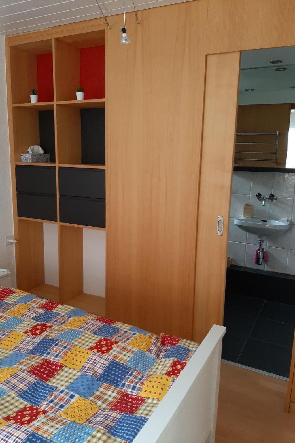 Other bedroom furnishings (bedroom1): Wardrobe, bedside tables, washbasin with hot and cold water, multiple clothes hooks