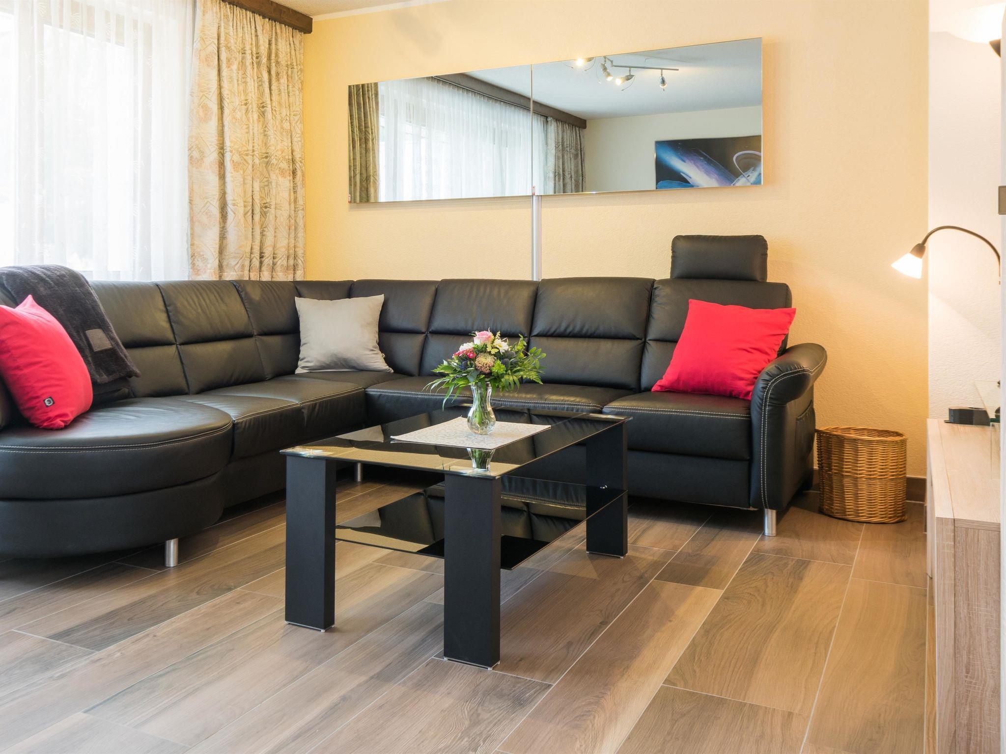 The apartment is on the first floor and consists of a separate, comfortable kitchen with a dishwasher and coffee machine. A spacious living room with TV and radio. Two double bedrooms with wash-basin and a WC with bath and two balconies to the south and west. Further there is a lift, a ski room, ski boot warmers and house bar available. The apartments are certified by "Q for You". The balconies on the south side, overlooking our charming garden with a fountain made of granite and the firs and pines and the many flowers invite you to linger. Equipment: coffee machine, water heater, toaster, oven, freezer, fondue set, satelite tv, blu-ray player, video library, free wi-fi, hairdryer, towel warmer, cot, children's chair, washing machine on demand. Ski boot dryer, lift, BBQ place, lawn, house bar - you won't miss anything. Additional are ski room with ski boot warmer and bar at your disposal. We offer expert consultation in summer as in winter to make your holiday a success.