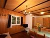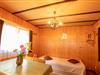 2-Zimmer-Chalet, Erdgeschoß, ca. 30 m². Überdachter Eingangsbereich in Wohn-/Schlafraum mit Einzelbett, Ausziehbett, Eßcke (Eckbank und 3 Stühle) sowie einer Küchenzeil mit Einbauherd (3 Platten, Backofen), Kühlschrank, Kaffeemaschine, Wasserkocher. Zweibettzimmer. Dusche. WC.