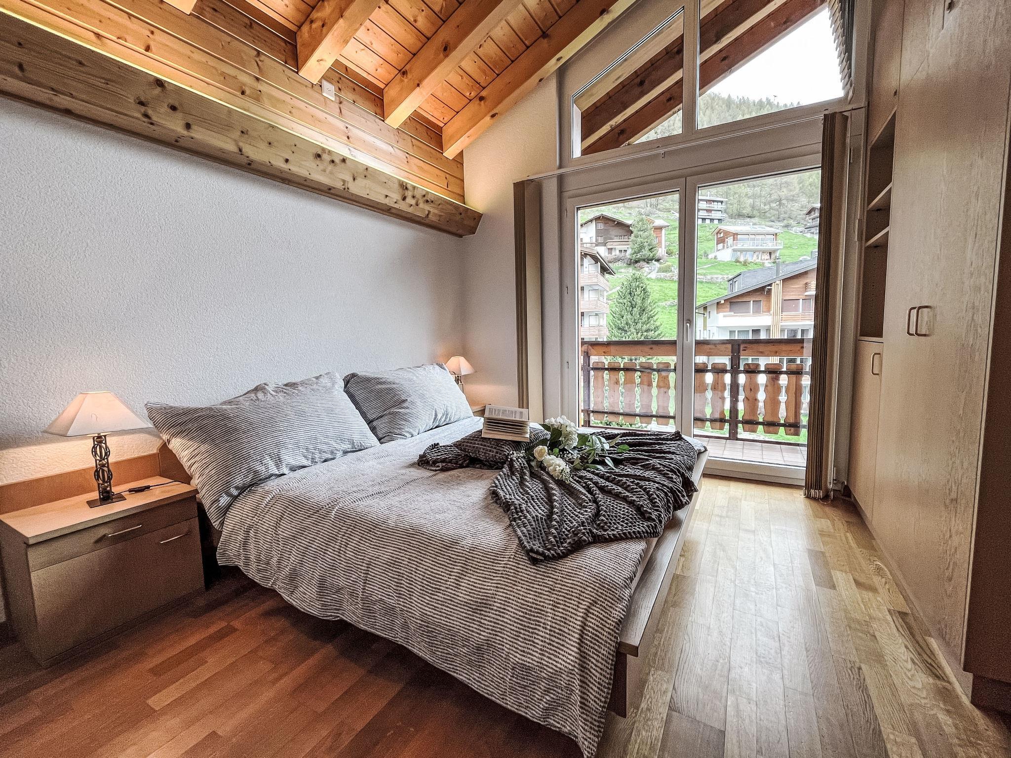 "Apartment Allalin", 3-room apartment 85 m2 on 3rd floor. Beautiful and tasteful furnishings: living/dining room with dining table and cable TV. Exit to the balcony. 2 double bedrooms, each room with 1 double bed (160 cm, length 200 cm). Open kitchen (oven, dishwasher, 4 ceramic glass hob hotplates, toaster, kettle, electric coffee machine). Bath/WC, shower/WC. Balcony. Balcony furniture. View of the mountains. Facilities: hair dryer. Internet (WiFi, free). Please note: non-smokers only.