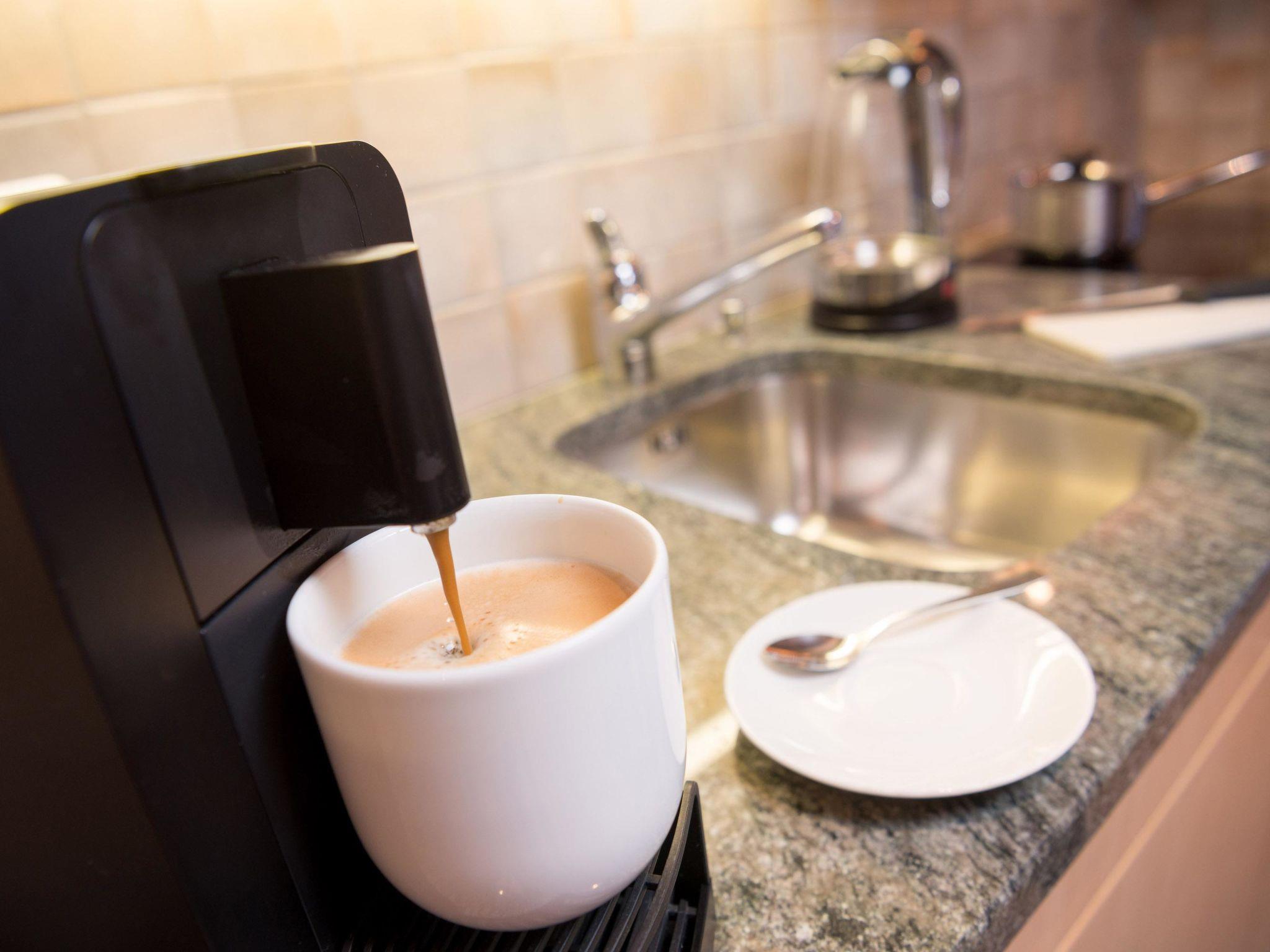 Modern holiday Studio-apartment (26 m2 ) consisting of a living- and bed-room with telephone (direct dial), radio/CD player, flatscreen TV, video, kitchen with glass ceramic hob, fridge, coffee machine (Delizio capsules or filter), dishwasher, microwave, cheese fondue set, dining table, leather sofa, shower, WC, terrasse with garden furniture and sunbathing area. The **** holiday apartment with its modern and contemporary facilities is very spacious and of a high quality standard.
