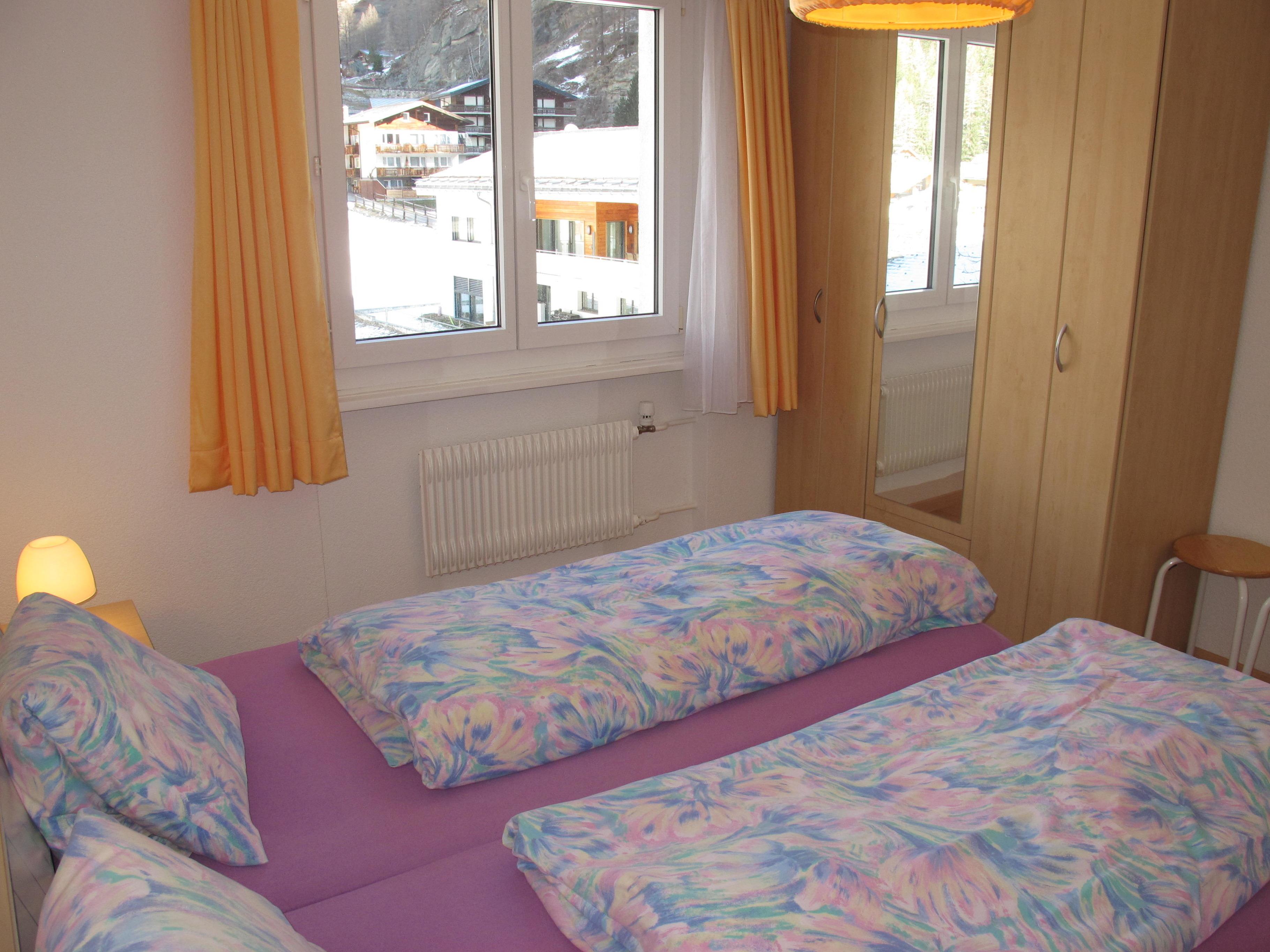 Die Wohnung ist geschmackvoll, gemütlich und hell eingerichtet, gute und komplette Ausstattung. Gemütliche Dachschrägen mit Blick auf die offene Holzkonstruktion. Kabel-TV. Fliesenböden, in den Schlafzimmern jeweils Laminatböden. Großer, überdachter Südbalkon mit Mobiliar und sehr schönem Blick bis zum Skigebiet von Saas-Fee und Allalin.