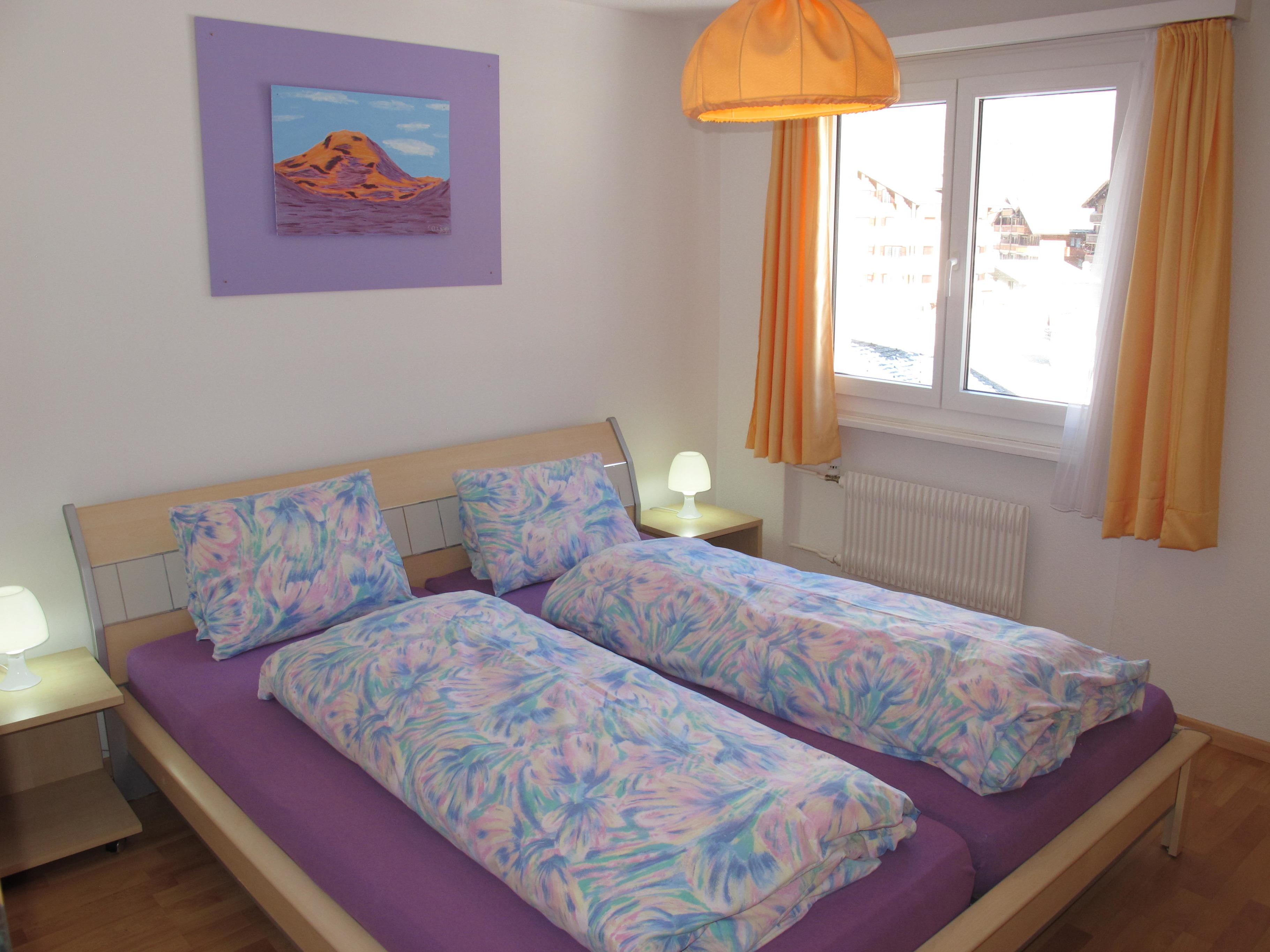 Aufzug direkt zur Etage: Offener Flur mit Ablagemöglichkeit für Skibekleidung. Zugang in geräumigen Flur mit Garderobe. Großer Wohnraum mit gemütlicher Ledersitzgruppe, Kabel-TV und Balkonausgang (Süd). Offene, sehr gut ausgestattete Küche mit Einbauherd (4 Ceranfelder, Backofen), Geschirrspüler, Mikrowelle, Kühlschrank mit Gefrierfach, Toaster, Wasserkocher, Kaffeemaschine, Dolce-Gusto-Kaffeemaschine, Fondue-Rechaud und Raclette-Gerät sowie ein großer Eßplatz. 4 gemütliche Doppelzimmer, 2 davon mit Balkonausgang. 2x Dusche/WC, jeweils mit 2 Waschbecken.