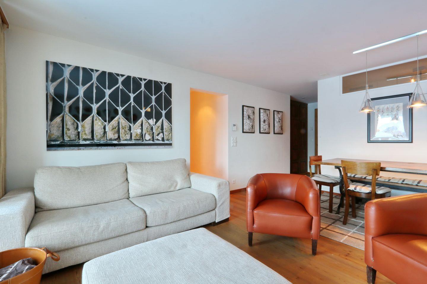 Moderne und heimelige 2.5 Zimmer-Wohnung im Erdgeschoss mit schöner Aussicht auf die Engadiner Bergwelt.