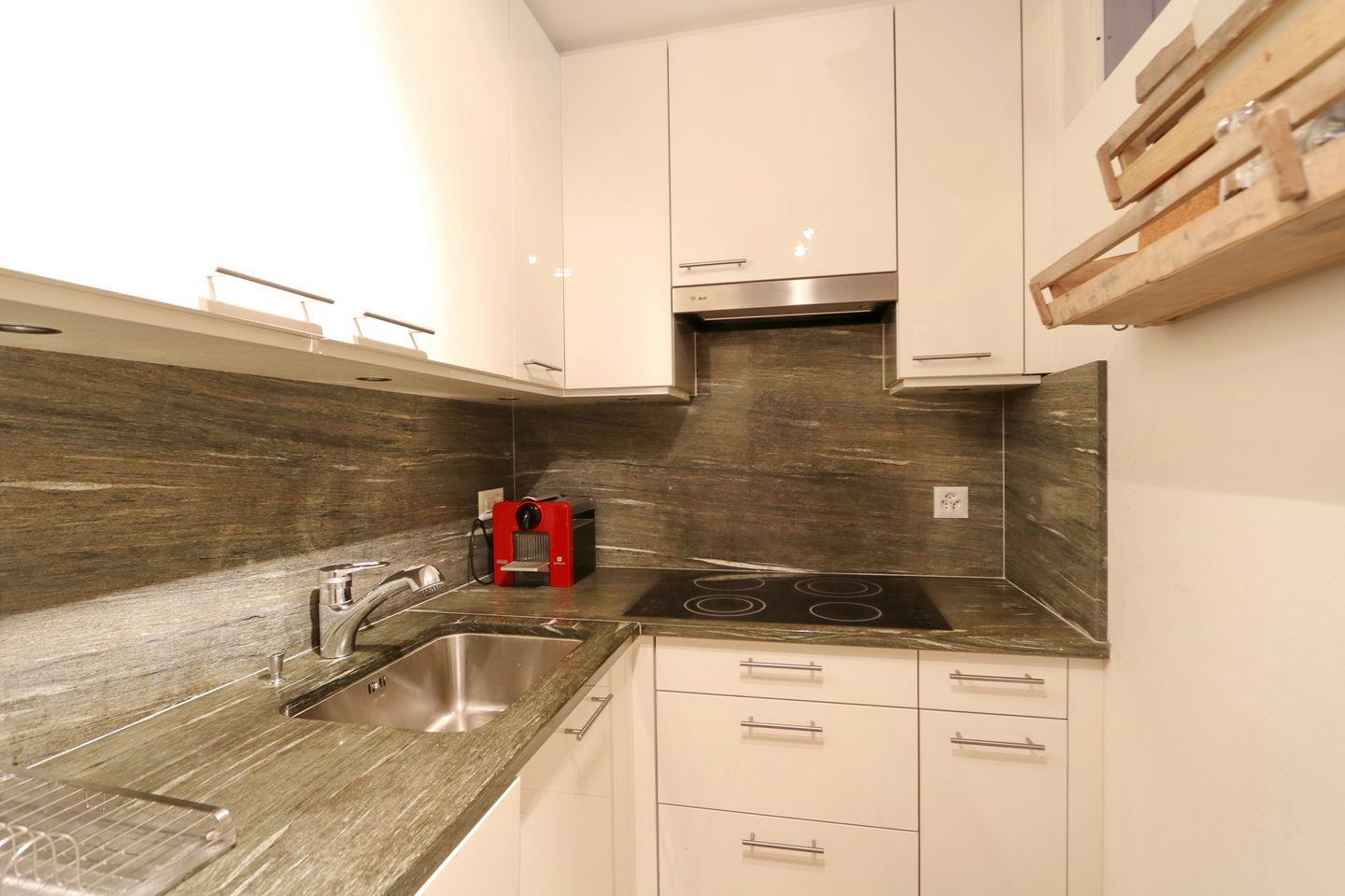 Die Wohnung verfügt über einen Eingangsbereich welcher in das gemütliche Wohnzimmer mit Sofa, Sesseln, Fernseher und grossem Esstisch führt. Vom Wohnzimmer gelangt man auf den Gartensitzplatz. Die geschlossene Küche ist mit den modernsten Küchengeräten ausgestattet und komplett eingerichtet. Ein Gang führt zu dem Schlafbereich mit einem Schlafzimmer mit Doppelbett und einem Badezimmer mit Badewanne. Ein Garagenparkplatz gehört zu dieser Wohnung. Eine Waschküche sowie ein Skiraum zur gemeinschaftlichen Nutzung steht ebenfalls zur Verfügung.