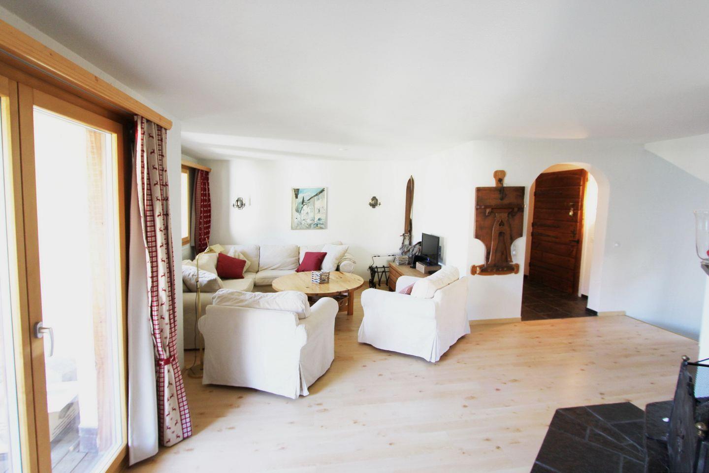 Die Wohnung liegt ruhig mit traumhaftem Bergblick. Die Skipiste Corviglia-Samedan endet direkt am Haus – ideal, um nach einem Tag auf der Piste direkt in den Wellnessbereich zu entspannen.