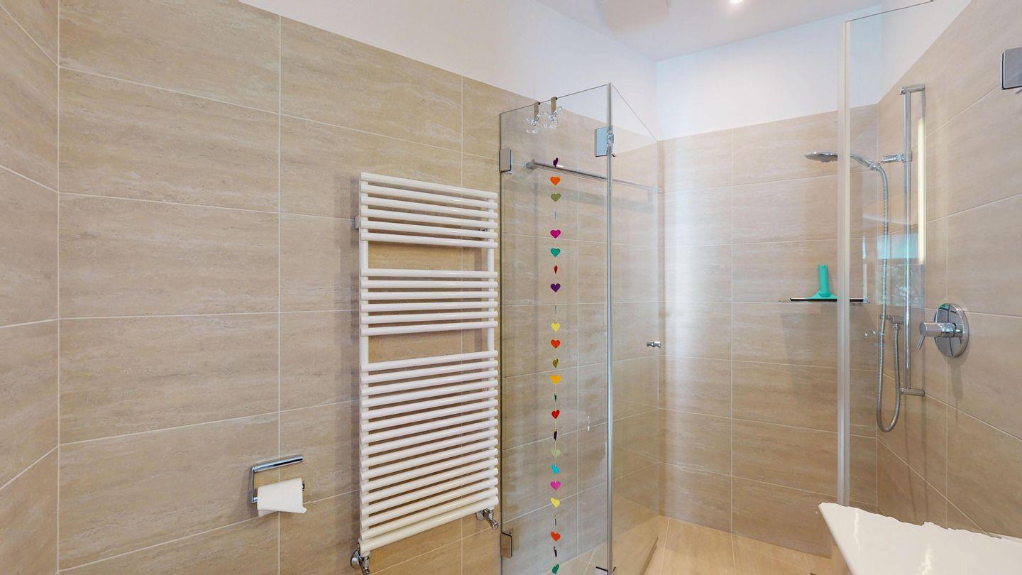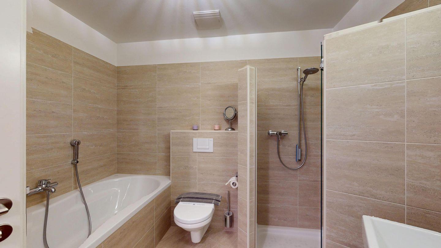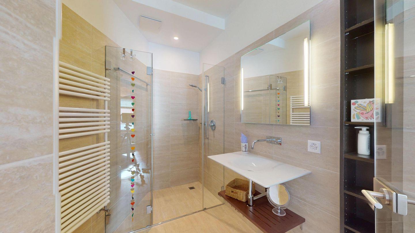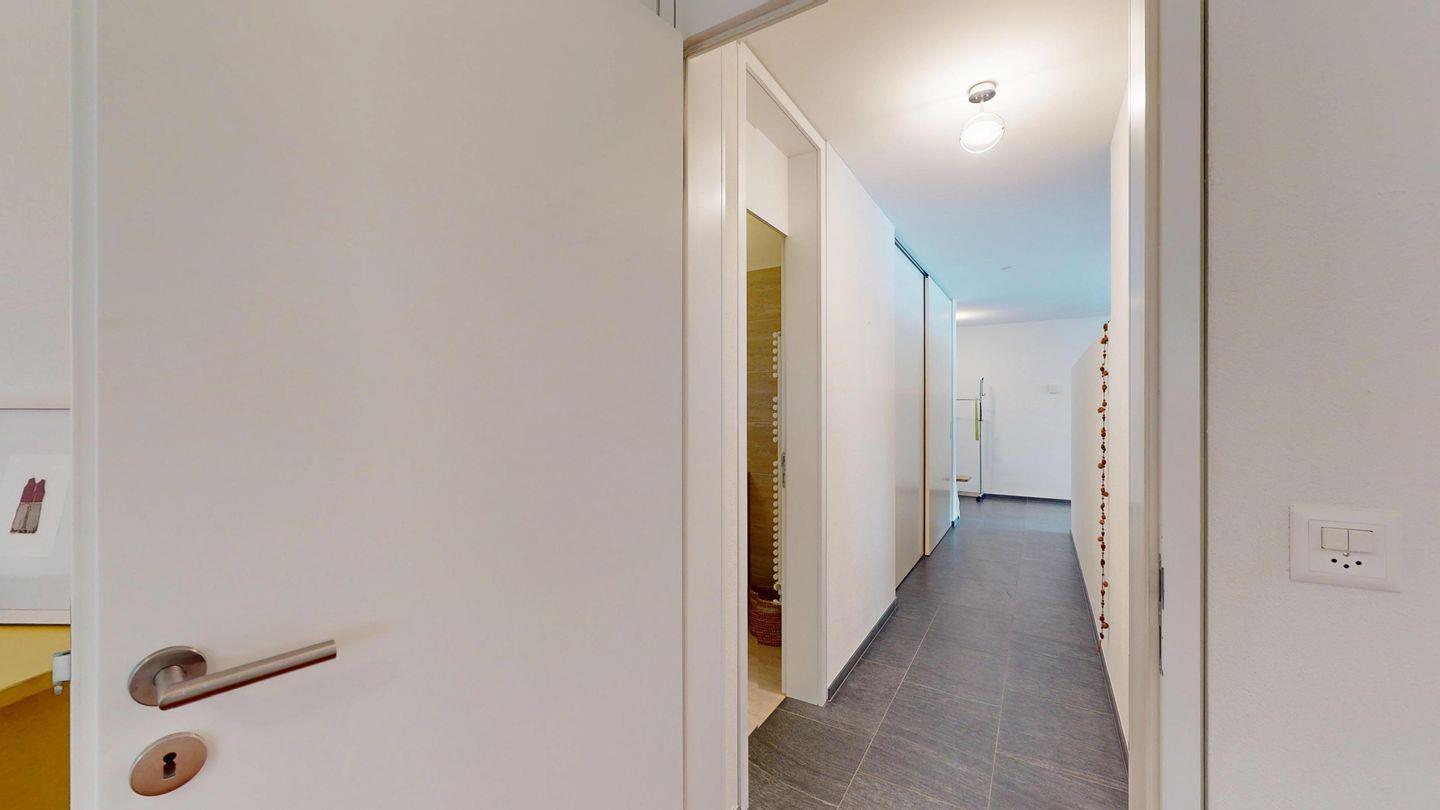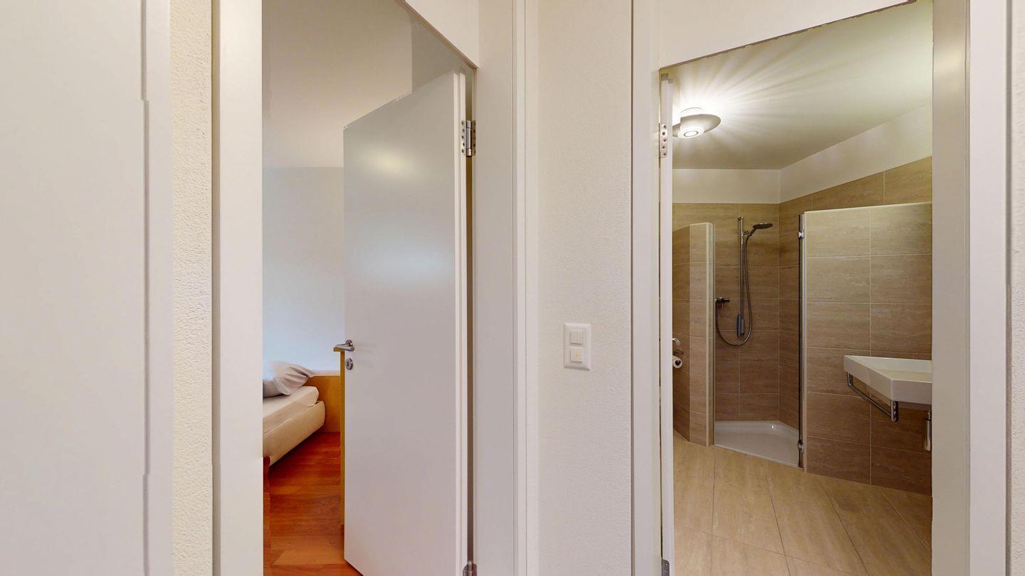 Grosszügige 4½-Zimmerwohnung im Erdgeschoss. Eingang mit Garderobe. Sonniges Wohnzimmer mit Zugang zur Südterrasse, und Essbereich. Offene Küche mit Herd, Backofen und Kühlschrank. Zwei Doppelschlafzimmer, eines davon mit eigenem Badezimmer (Dusche, WC, Lavabo). Ein Schlafzimmer mit zwei Einzelbetten. Ein zweites Badezimmer mit Badewanne, Dusche, Lavabo und WC. Gemeinschaftliche Waschmaschine/Tumbler. Ein Parkpatz. Haustiere sind nicht erlaubt. Nichtraucherwohnung.