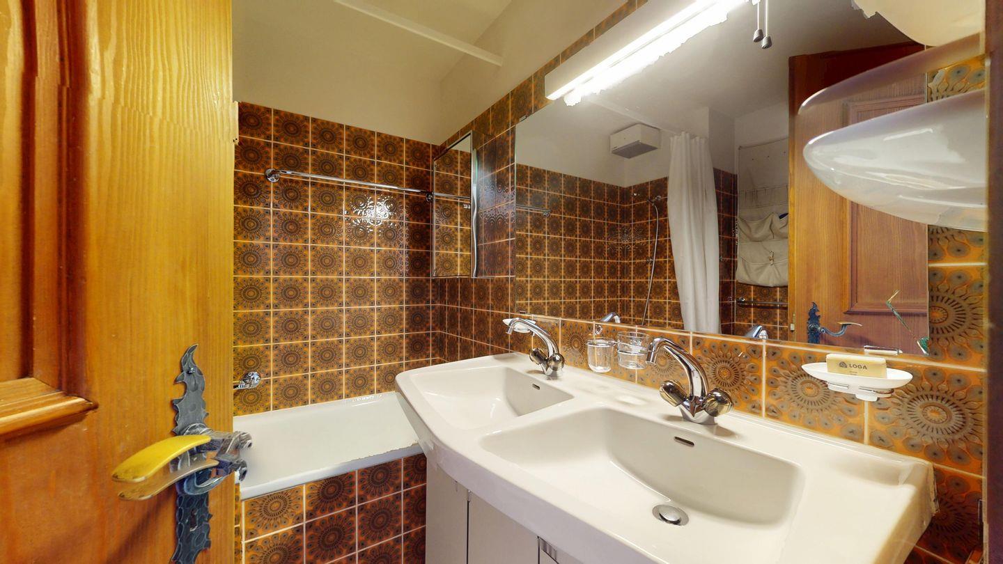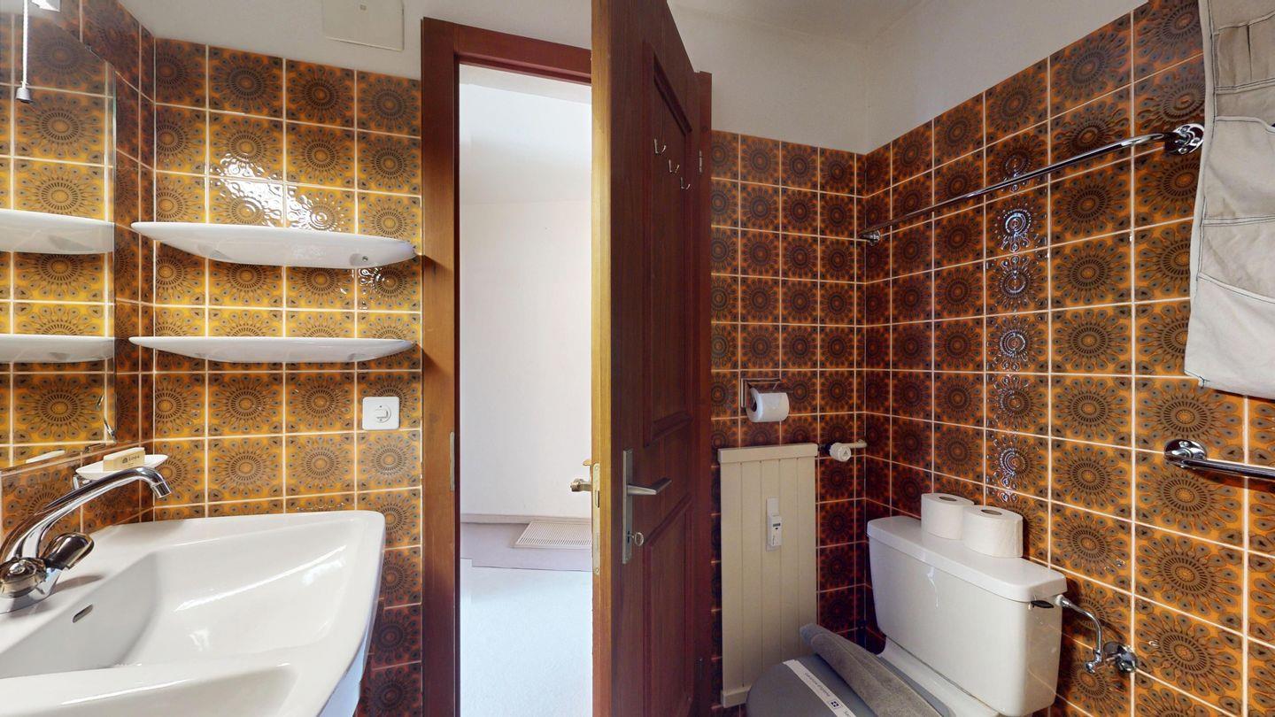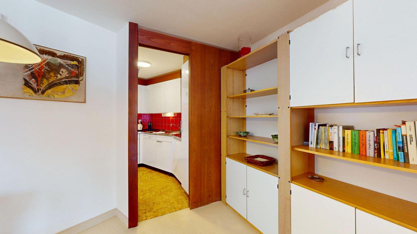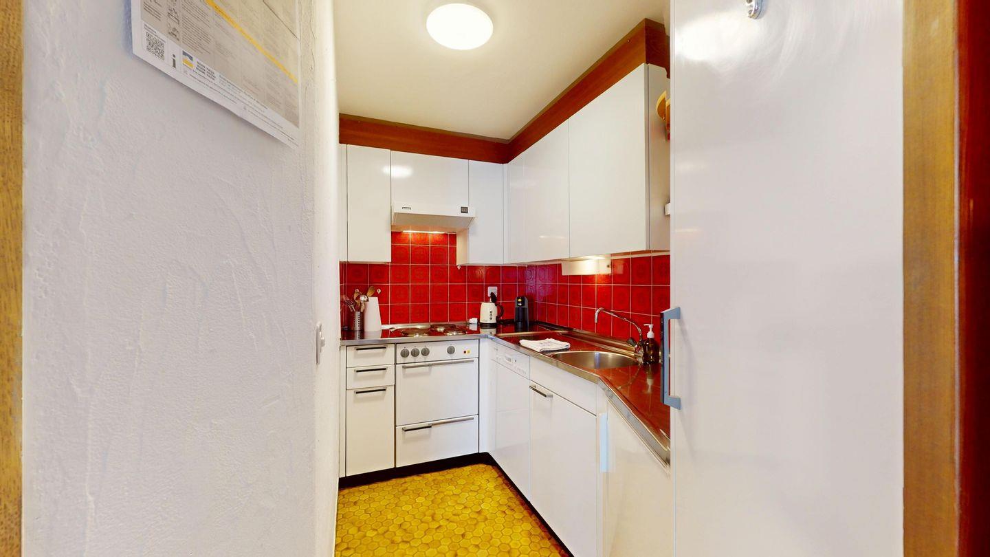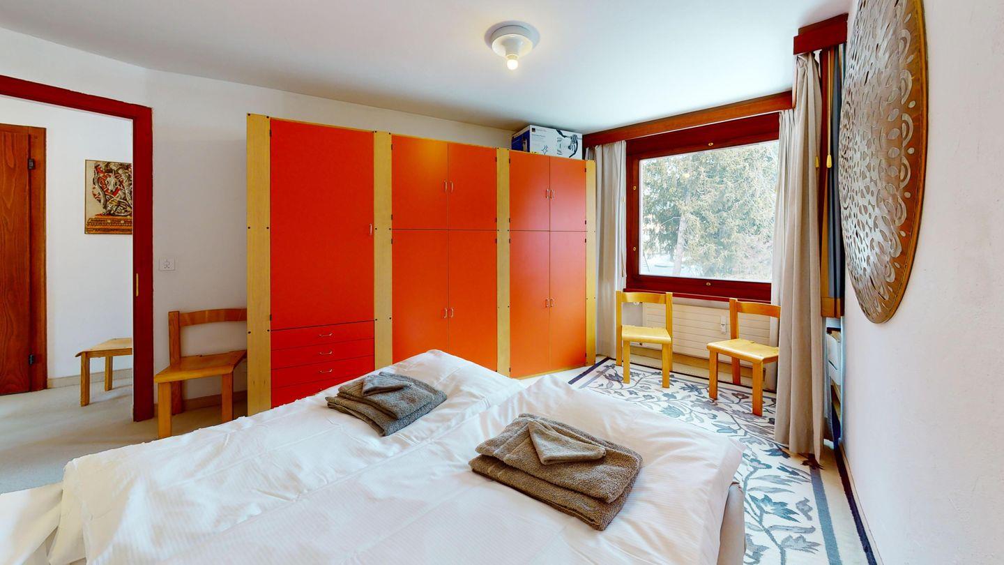 2 ½ Zimmerwohnung mit ca. 60 m2 im 2. Stock mit Aufzug. Eingang mit Garderobe, Wohn- / Essbereich, Bettsofa, Ausgang zu einem kleinen Balkon mit Blick auf die Berge. Fernsehen und Internet. Kleine separate Küche mit Backofen, Kühlschrank, Kaffeemaschine und Geschirrspüler. Schlafzimmer mit Doppelbett. Badezimmer mit Badewanne, Waschbecken und Bidet. Ein Aussenparkplatz. Waschküche und Skiraum. Haustiere nicht erlaubt.
