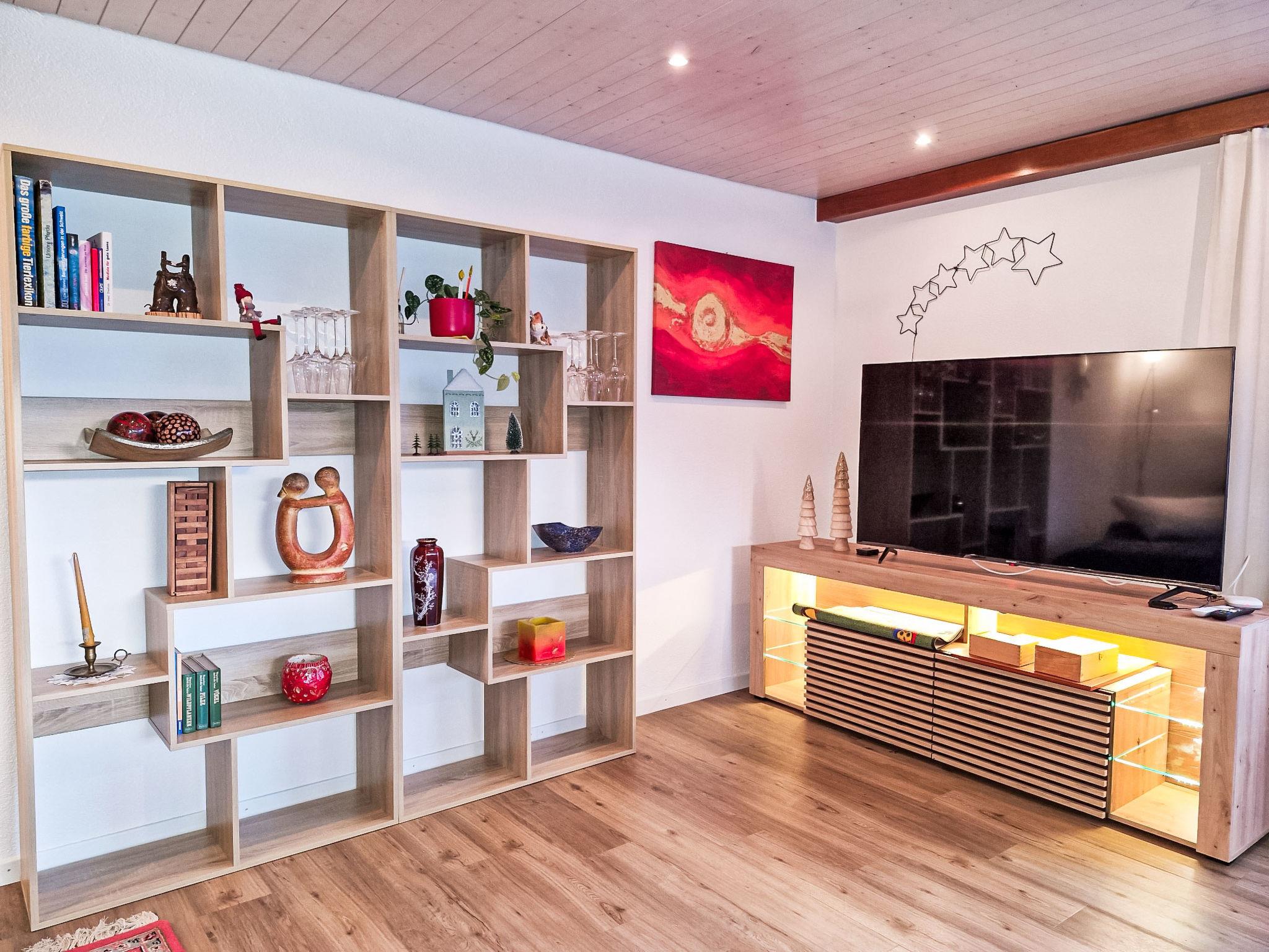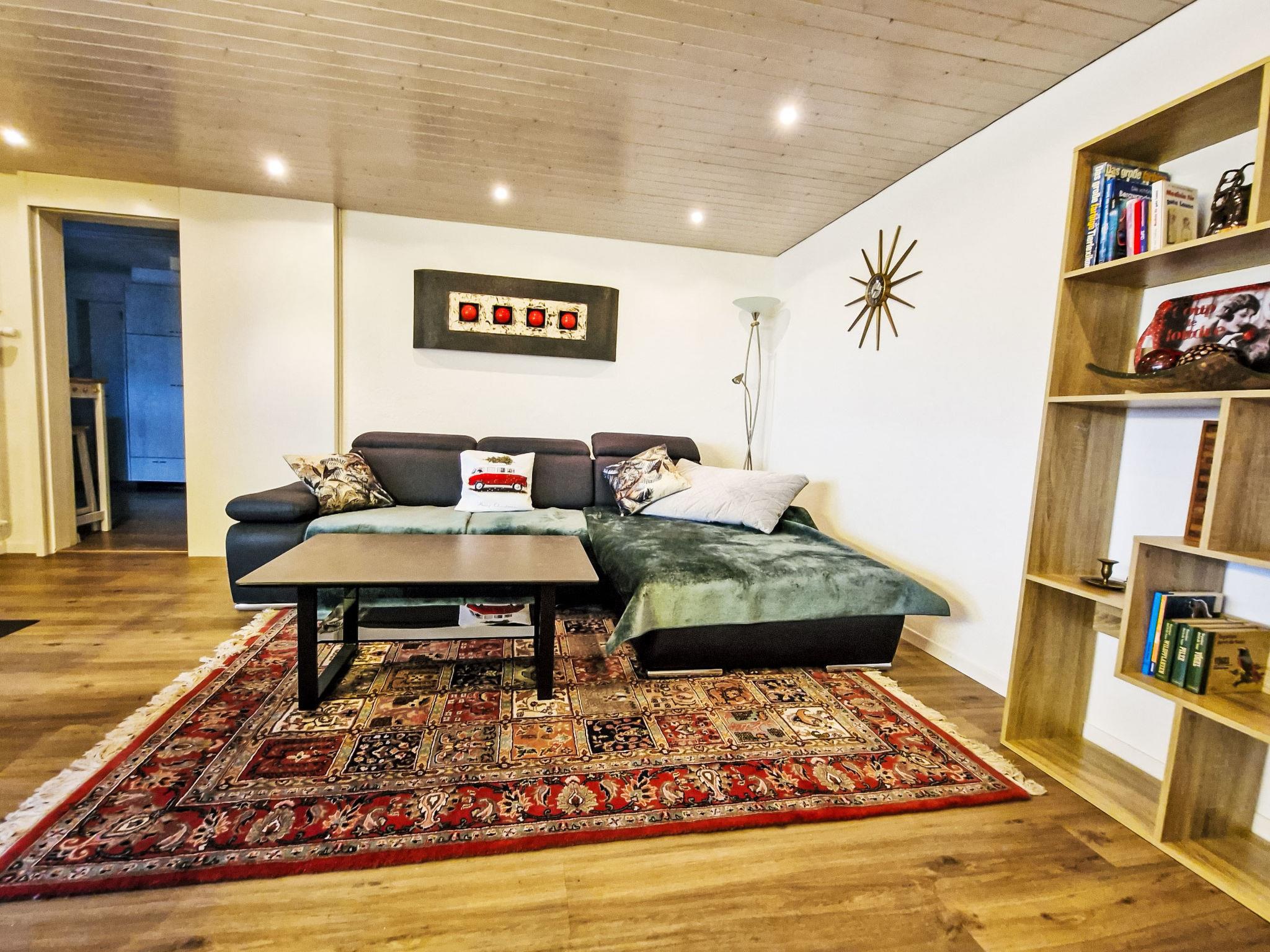 "Sonnentraum", 3-room apartment 110 m2, on the ground floor. Stylish furnishings: living room with 1 sofabed and TV. 1 room with 1 double bed. 1 room with 1 double bed. Kitchen (oven, dishwasher, 4 ceramic glass hob hotplates, toaster, kettle, freezer, electric coffee machine, steamer, fondue Set (chinoise)) with dining table. Bath/WC, shower, sep. WC. Oil heating, underfloor heating. Terrace 25 m2. Barbecue. Beautiful view of the lake and the mountains. Facilities: washing machine, dryer, children's high chair, baby cot, hair dryer. Internet (WiFi, free). Please note: non-smokers only. 2 pets/ dogs allowed.