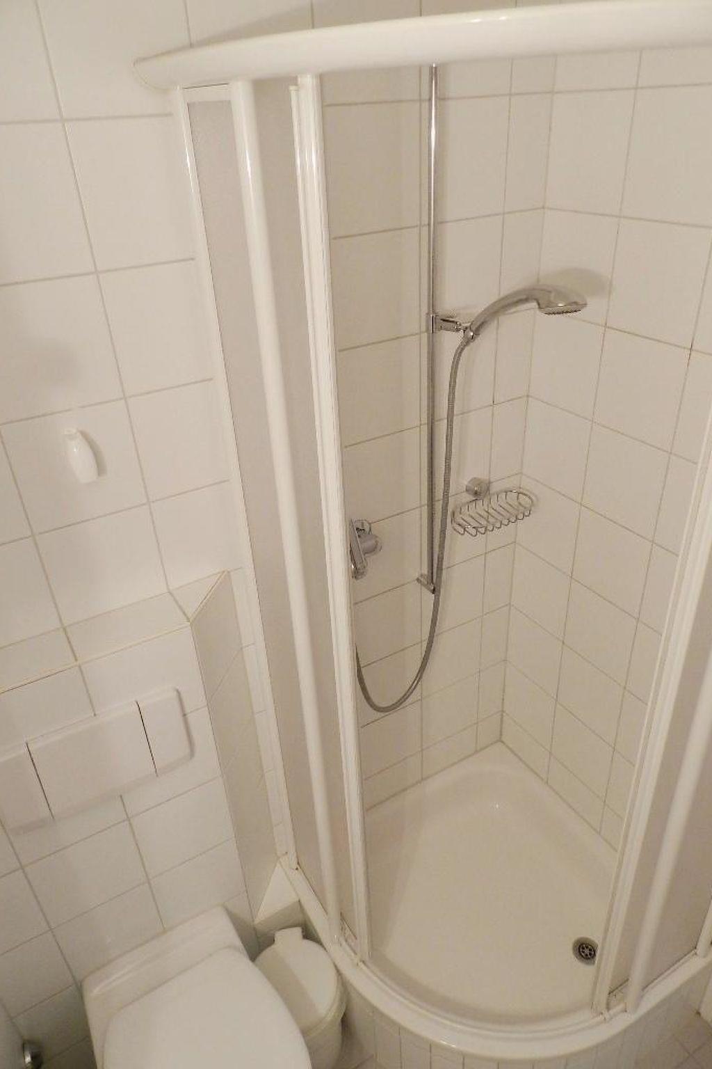 2 room apartment (32sqm). Living room with sofa which converts into a conventional bed (for 1 person), kitchenette (among other things furnished with ceramic hob, oven, refrigerator with deep-freezer compartment, filter coffee machine as well as a fondue-set) and dining corner, radio, TV, telephone, WiFi. 1 bedroom with double bed (90x190cm). Bathroom with shower/toilet. Wardrobe. Balcony with table and chairs, 2 deck chairs. Baby cot (60x120cm) incl. bed linen available.