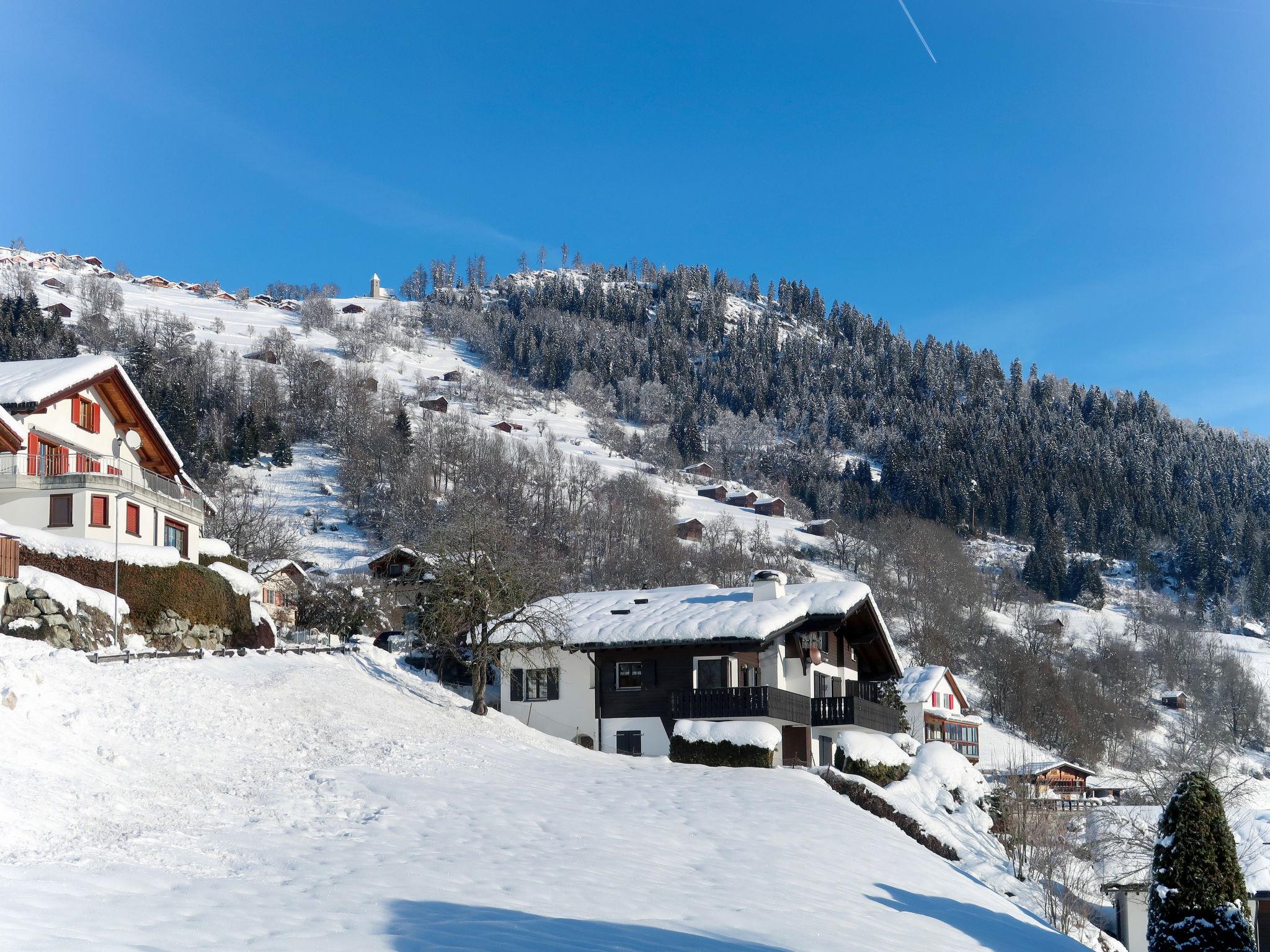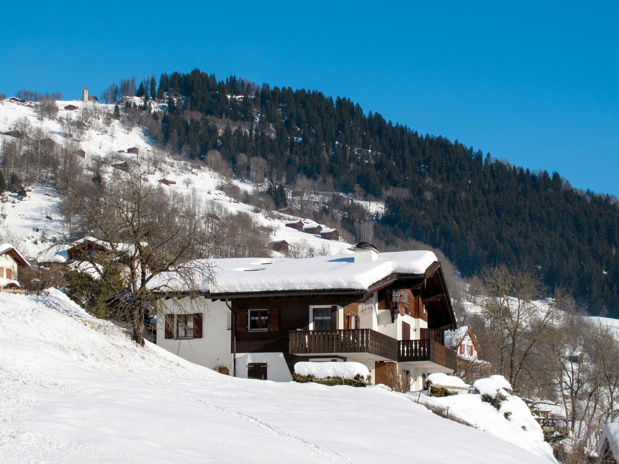 Schluein 4 km from Laax: Cosy apartment house "Muotta Sulegl", 770 m a.s.l., 3 storeys. In the resort 400 m from the centre of Schluein, in a quiet, sunny position on a slope, 6 km from the skiing area. For shared use: property. In the house: sauna (extra). Storage room for skis, central heating system. Motor access to the house. Stepped path to the house. Parking at the house. Shop 2 km, supermarket 2 km, restaurant 400 m, bus stop 400 m, railway station "Ilanz" 4 km. Golf course (18 hole) 5 km, cable car 6 km, ski lift 6 km, chair lift 6 km, skisport facilities 6 km, ski bus stop 400 m, ski school 6 km, sled run 6 km, cross country ski track 5 km, children's playground 4 km. Nearby attractions: Rheinschlucht 5 km. Well-known ski regions can easily be reached: Weisse Arena Flims/Laax 6 km. Well-known lakes can easily be reached: Caumasee 10 km, Laaxersee 9 km, Crestasee 12 km.