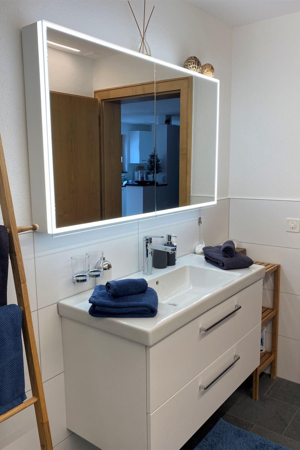 45 m2. More information by the provider: The flat (45 m2 surface, floor-heating) has an own entrance, a garden-terrace nice furnished (table, chairs, deck chairs, charcoal barbeque, parasols). The big garden invites you to stay and recover under the trees surrounded with many flowers. By the entrance we have a garden-bench, a box with the things to take a barbeque. The furnishing is very comfortable. In the living-room is a couch-bed, TV/DVD, Radio-CD, W-Lan/WiFi-access, table, games, informations from this holliday-area and a exit-door to the garden-terrace. In the bed-room is a double-bed (2x90x200m) and a wardrobe. The bathroom have a shower, toilet, washbasin, hair-dryer, a heater for towels. We also provide you with towels for the shower and the bath, bathrobes, for the ground-base is it toilet-paper, Kleenex, soap, cleaners a vacuum cleaner. Also the kitchen is furnished perfectly with: stove, oven, microwave, dishwasher, refrigerator, coffee-maker, tea-maker, steamer, toaster, fondue-/raclette. Enough crockery and dishes is it. Salt, pepper, spices, cleaners, sponges, coffee, tea, sugar, oil, vinegar are existing for the ground-base.