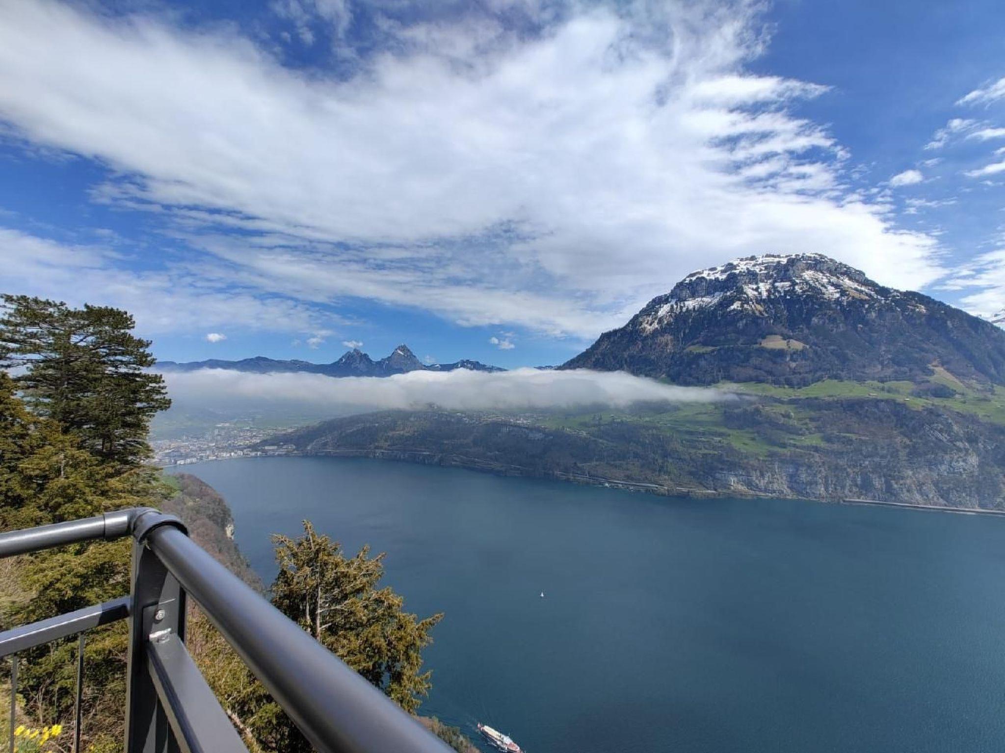 Our villa is situated directly above Lake Lucerne with a unique panoramic view of the lake and the mountains (Pilatus and Rigi)