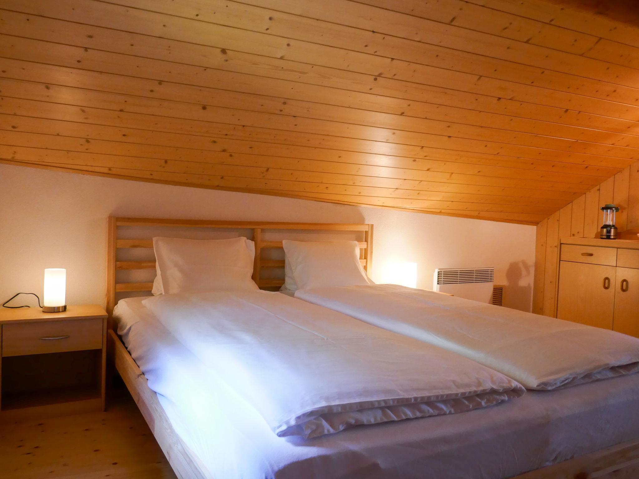 "Rustico Cleo", 4-room house. Partly with sloping ceilings, comfortable and rustic furnishings: open dining room with open-hearth fireplace and dining table. Exit to the garden. Open kitchen (dishwasher, 4 ceramic glass hob hotplates, toaster, kettle, microwave, electric coffee machine, Capsules for coffee machine (Nespresso) extra, raclette grill, fondue Set (chinoise, cheese)). Shower/WC. Electric heating, wood heating. On the lower ground floor: living room with satellite TV and flat screen. Upper floor: 2 double bedrooms with sloping ceilings, each room with 1 double bed (1 x 160 cm, length 200 cm). Terrace furniture, barbecue (portable), deck chairs (1), sitting area. Very beautiful view of the mountains, the valley and the countryside. Facilities: washing machine, dryer, children's high chair, baby cot for up to 2 year olds (extra), hair dryer. Please note: suitable for families. Non-smokers only. 1 small pet/ dog allowed. Fire extinguisher. NL-00006897