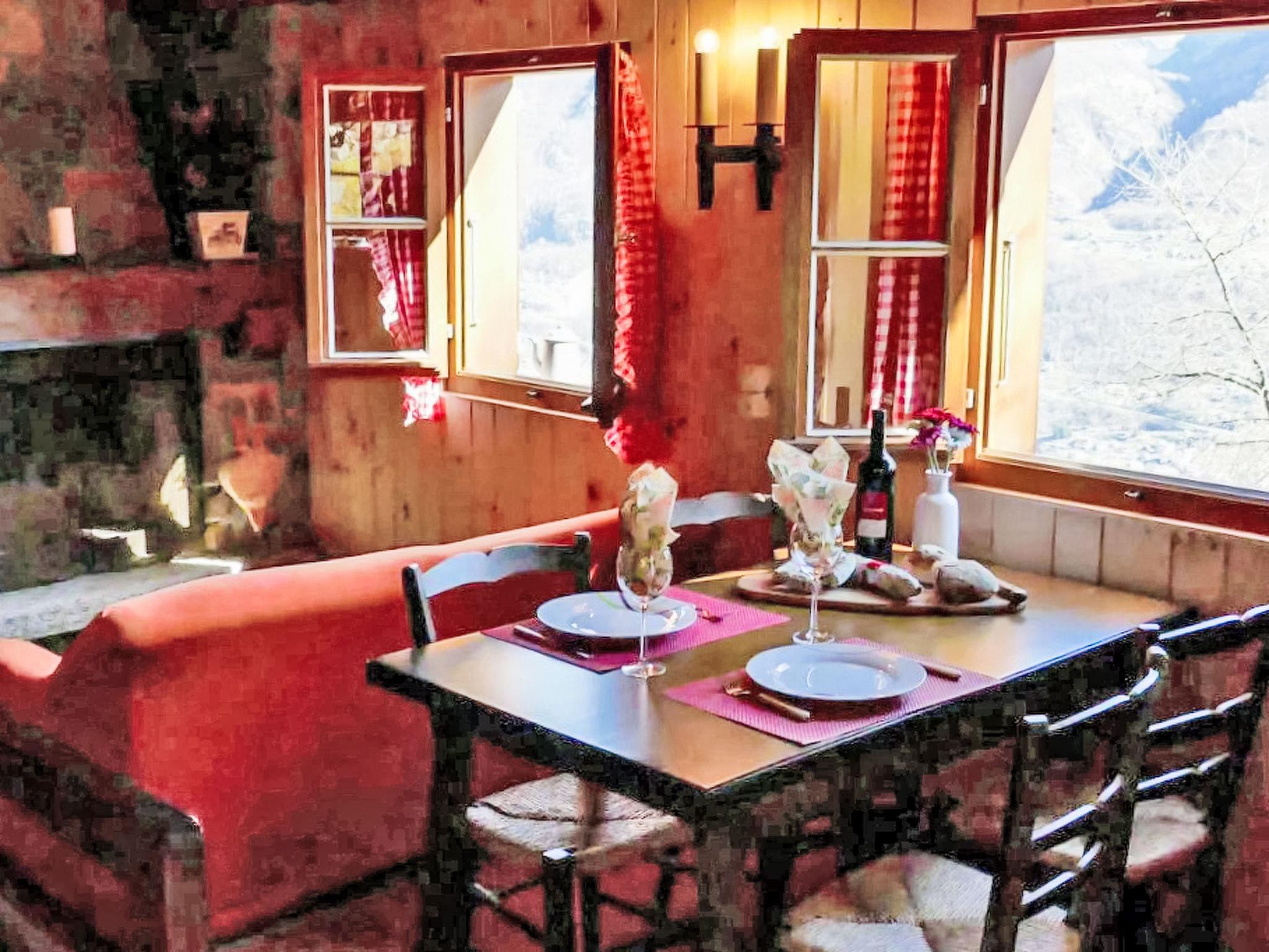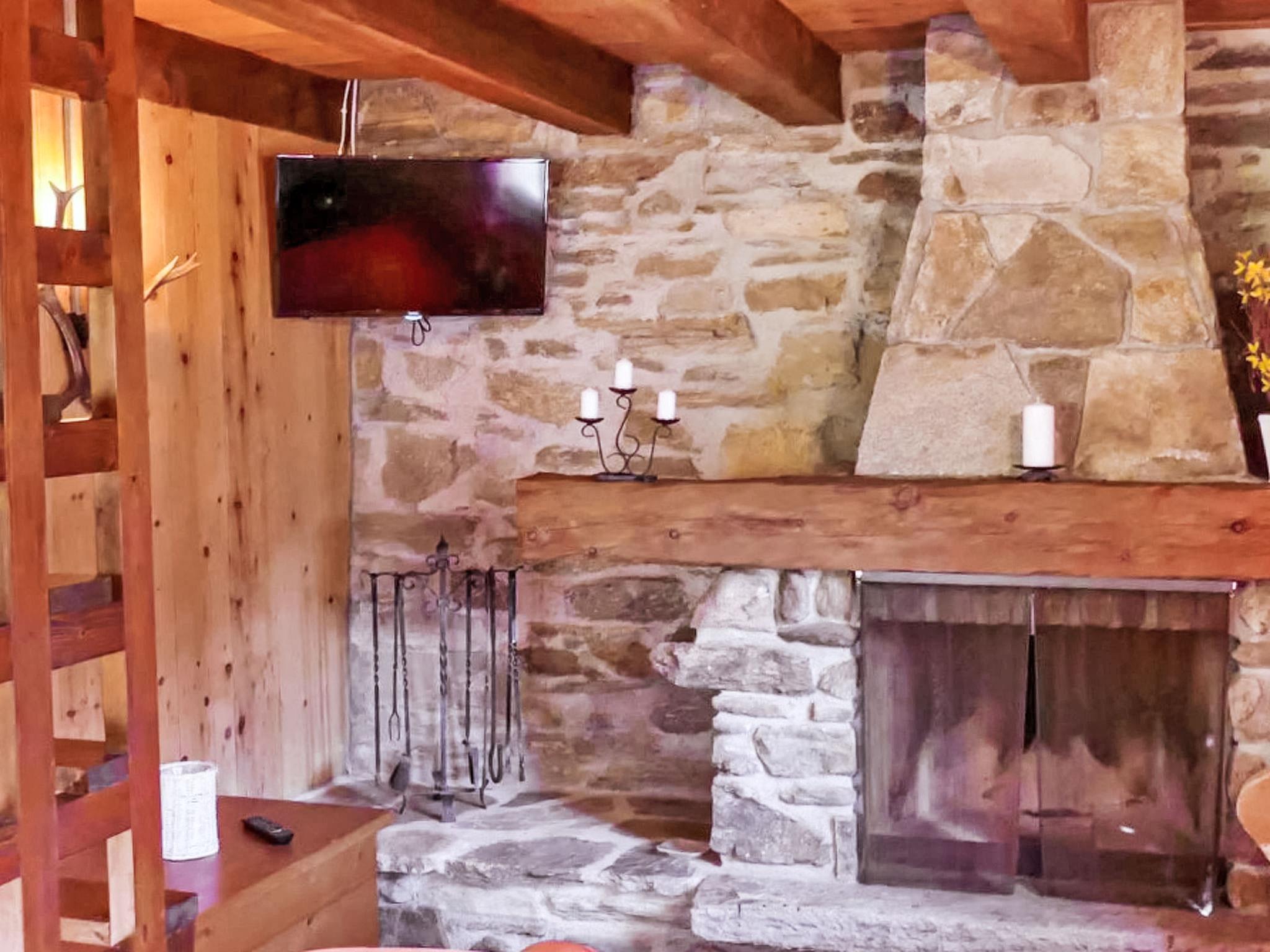 "Rustico Fey", 2-room cottage 50 m2 on 2 levels, south facing position. Comfortable and cosy furnishings: open living/dining room with open-hearth fireplace, dining table and TV (flat screen), radio. 1 room with 2 beds (90 cm, length 200 cm). Open kitchen (mini-oven, Gas stove, 3 gas rings, toaster, electric coffee machine) with bar and wood-burning stove. Exit to the patio. On the lower ground floor: (steep stair). Shower/WC. Terrace furniture, barbecue (portable), deck chairs (2). Marvellous panoramic view of the mountains, the valley and the countryside. Facilities: children's high chair, baby cot for up to 2 year olds (extra), hair dryer. Please note: non-smoking house. Maximum 1 small pet/ dog allowed. Fire extinguisher. NL-00003747
