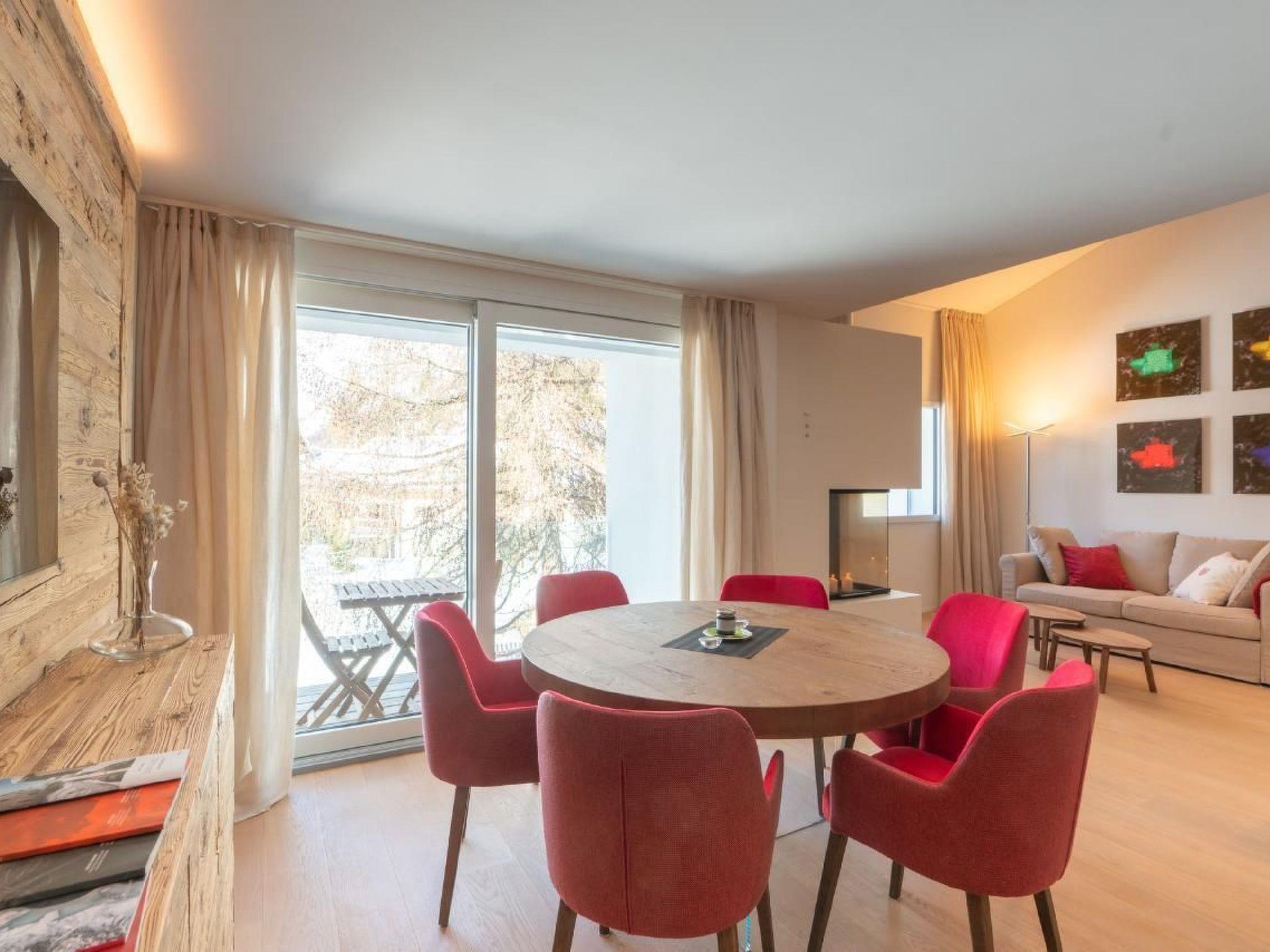 The flat has 2 double bedrooms, 2 bathrooms and a separate WC. The entire flat has parquet flooring. The kitchen is fully equipped. Raclette oven and fondue equipment are available on request. The flat is very sunny. There is a workplace on the gallery for our guests who work from home. The cellar, where the washing machine and tumble dryer are also located, offers enough space for skis and ski boots with dryer, bicycles and the like. There are 2 reserved parking spaces in the underground car park.