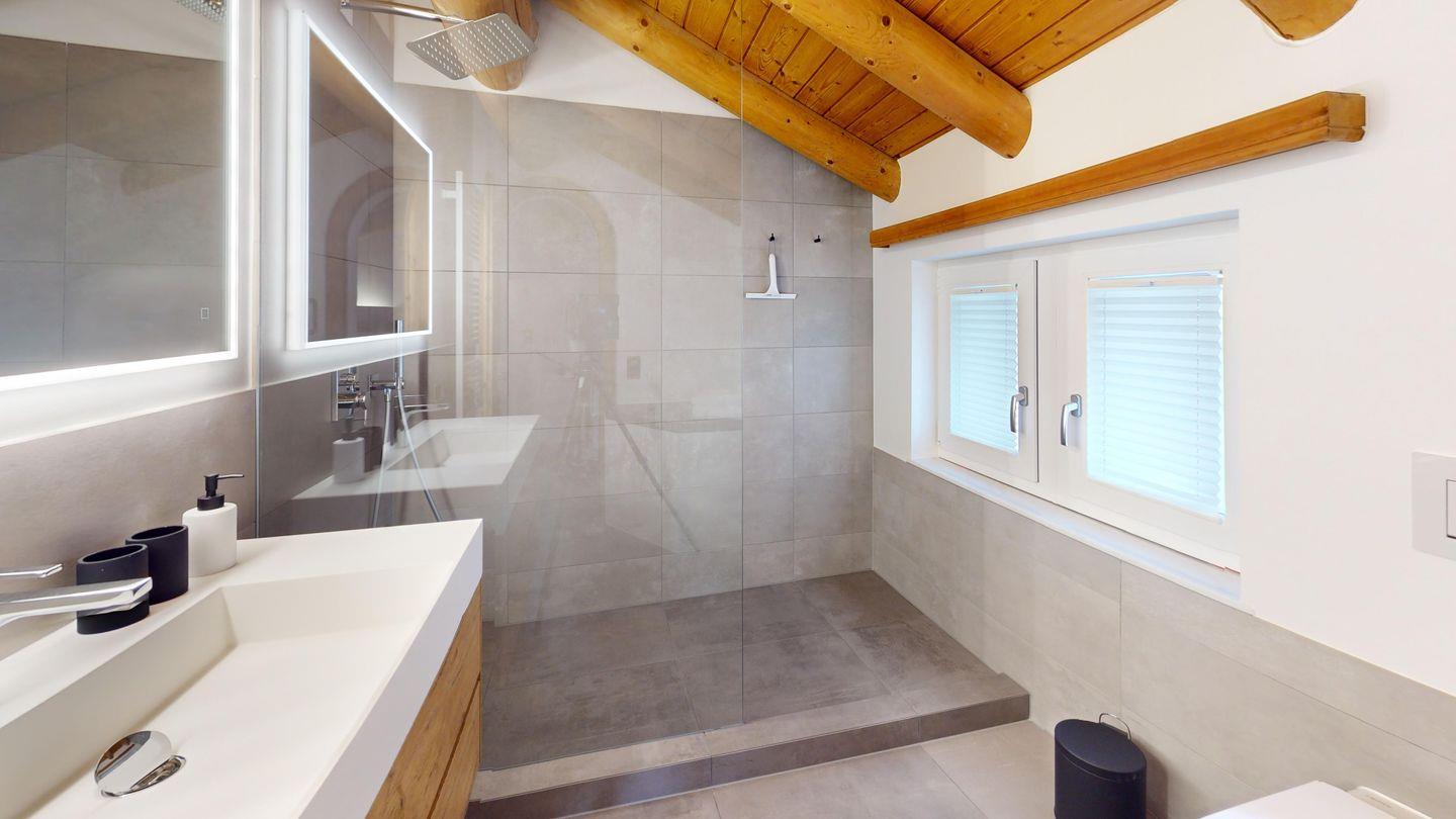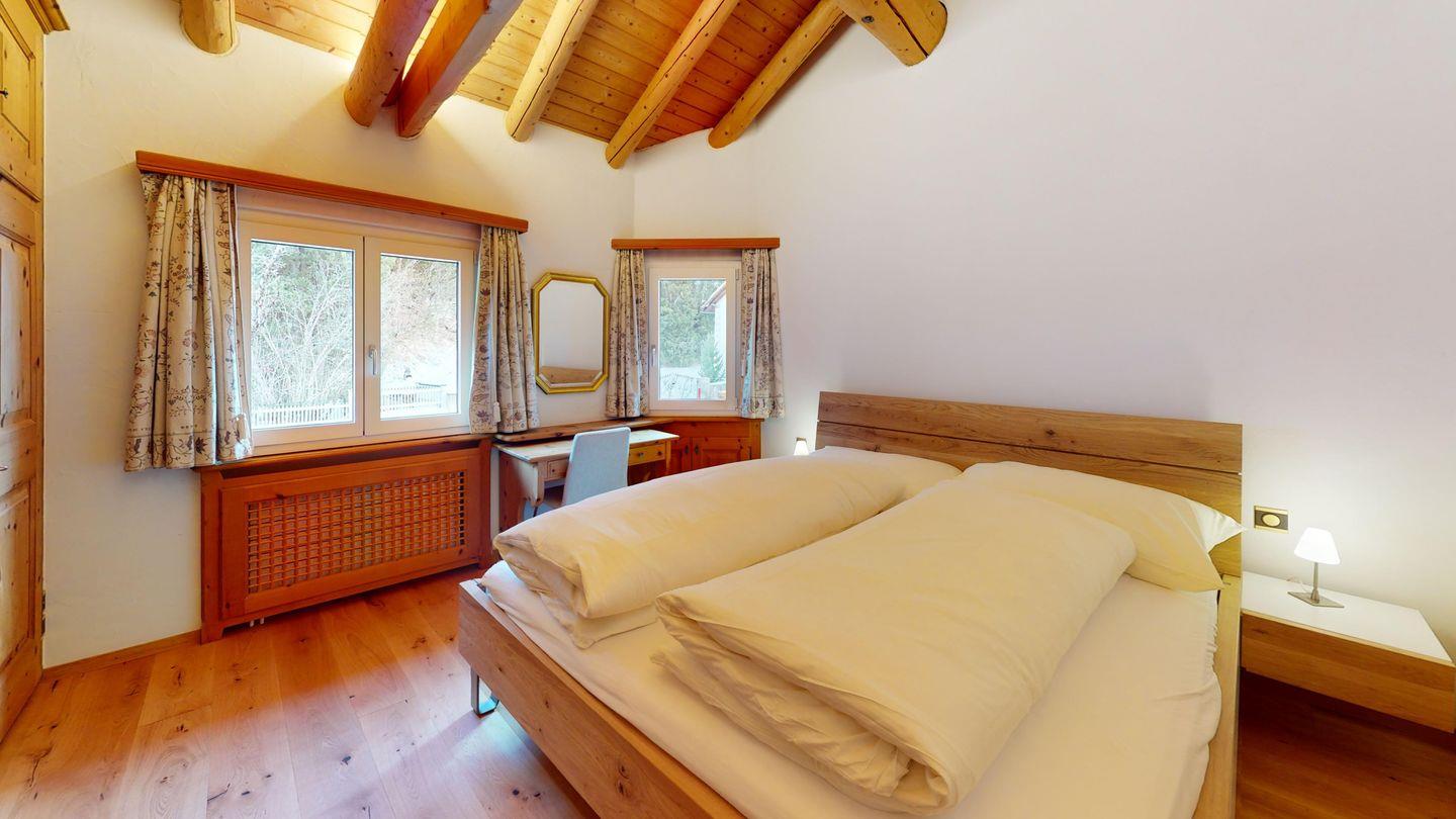 Das grosszügige und gemütliche Wohnzimmer lädt zum Verweilen ein. Hier können Sie sich in einer modernen Umgebung entspannen, die dennoch von der Wärme des Holzes und der Authentizität traditioneller Möbel geprägt ist. Die Wohnung verfügt über eine offene Küche und einen Essbereich. Das geräumige Schlafzimmer verfügt über ein komfortables Doppelbett und garantiert erholsame Nächte.