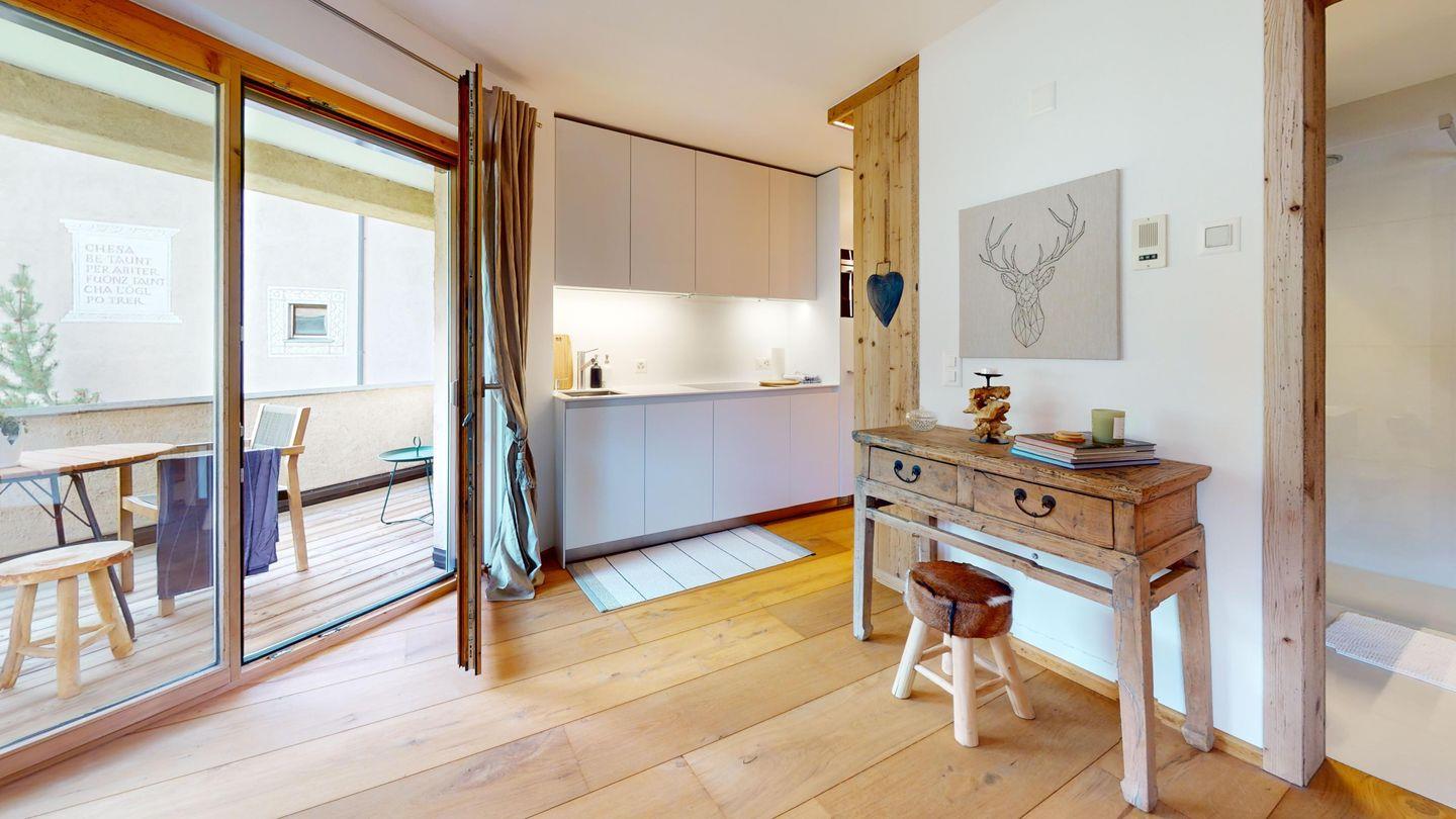 Schöne stilsicher eingerichtete 2-Zimmerwohnung im 1. Stock, an ruhiger und zentraler Lage. Wohn-/ Esszimmer mit Ausgang zum Balkon. Bergsicht. Internet und TV. Offene Küche mit Geschirrspüler und Backofen. Nespresso Kaffeemaschine. Bad mit Dusche/WC/Lavabo. Doppelzimmer mit Boxspringbett. Neue, komfortable Einrichtung. Ein Garagenplatz. Waschmaschine/Tumbler Kombigerät in der Wohnung. Skiraum zur Mitbenützung. Nichtraucherwohnung. Haustiere sind nicht erlaubt.