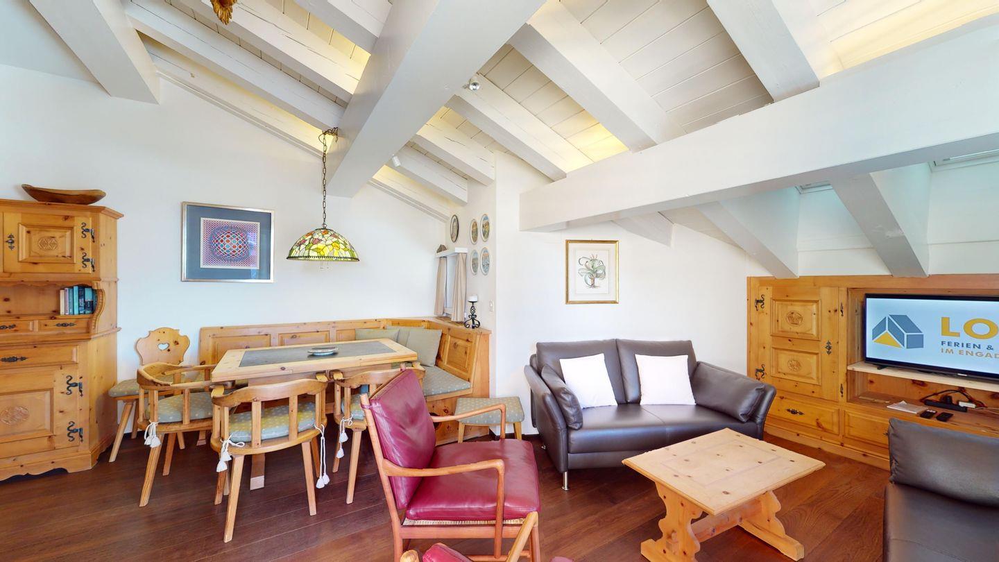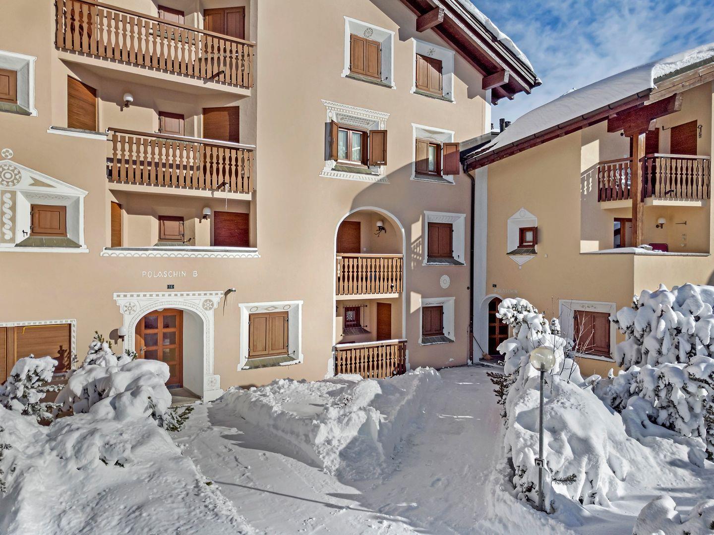 Die Chesa Polaschin A, eine Siedlung mit mehreren im Engadiner Stil gebauten Häusern, befindet sich am Anfang des Dorfes und wurde im Jahre 1990 erstellt. Langlaufloipen finden Sie neben der Chesa Polaschin. Die Talstation der Furtschellas-Bahn kann zu Fuss in 10 Minuten oder mit dem Sportbus (Haltestelle 50m vom Haus entfernt) erreicht werden. Der Sportbus fährt im Winter jeweils alle halbe Stunde in alle Richtungen. Wanderwege gibt es in unmittelbarer Umgebung.