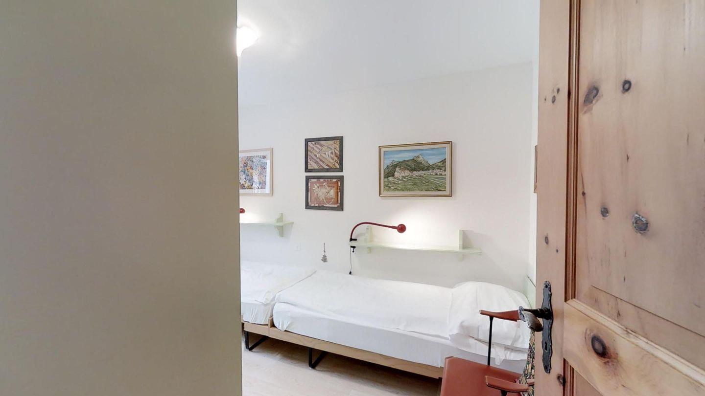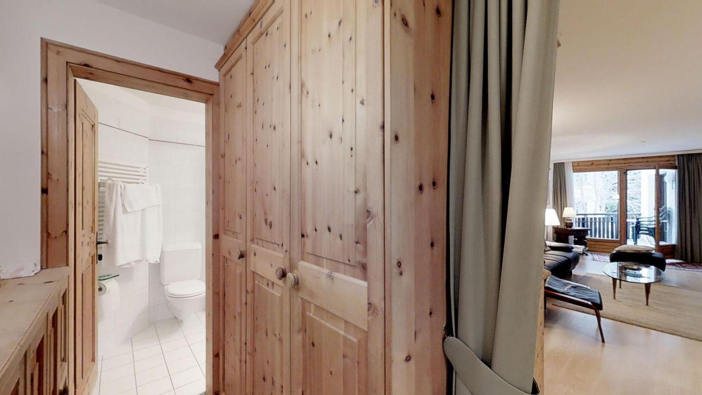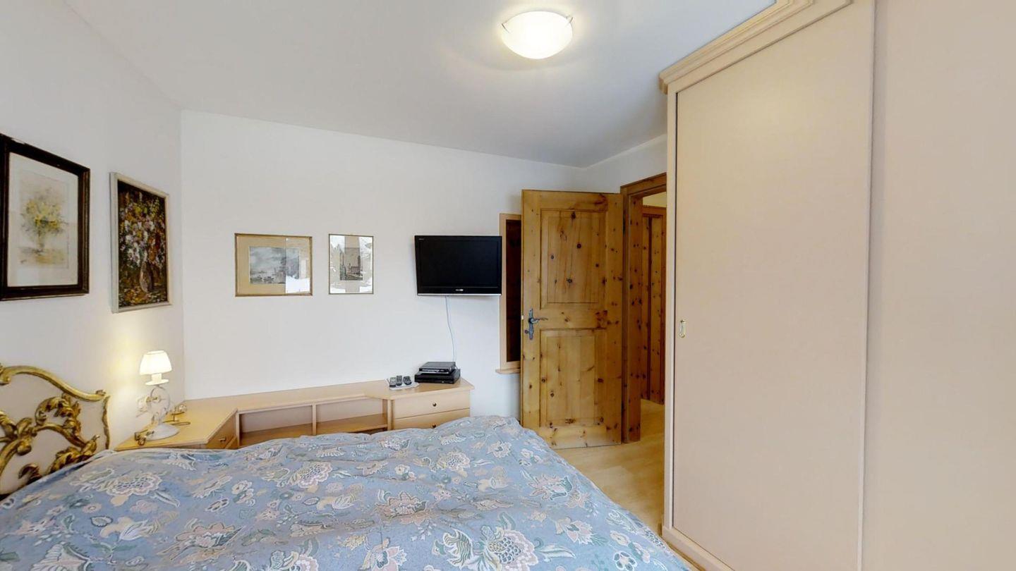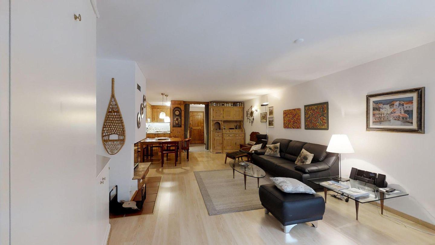 Geschmackvolle 3-Zimmerwohnung im Hochparterre (keinen direkten Zugang zum Garten), ca. 90 m2, an sehr ruhiger Lage. Ganze Wohnung mit Laminat. Entrée mit Garderobe. Halboffene Küche mit Backofen, Mikrowelle, Chicco d'Oro-Kaffeemaschine und Geschirrspülmaschine. Wohn-/ Esszimmer mit Cheminée und Balkon (südwest), Schrankbett für eine Person. TV/Sat sowie DVD/VHS. Kein Telefon. Dusche/WC/Lavabo. 1 Doppelschlafzimmer. Schlafzimmer mit 2 Einzelbetten. Bad/WC/Lavabo/Bidet. Garagenplatz. Ski- und Veloraum zur gemeinsamen Benützung. Haustiere erlaubt.