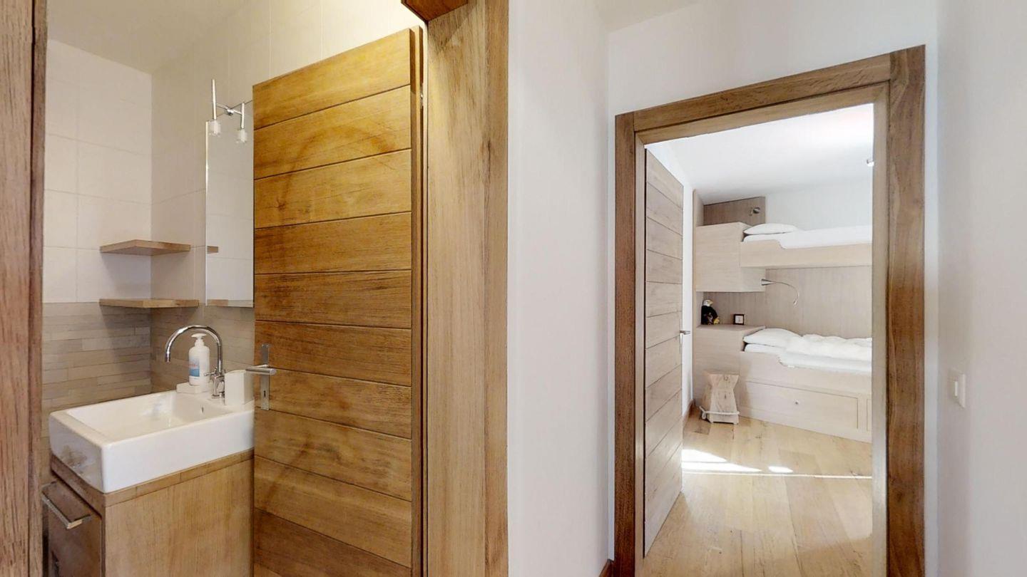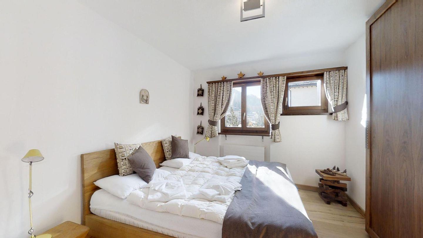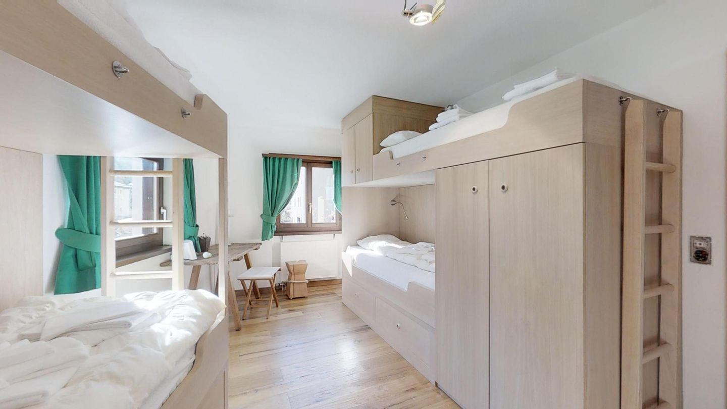 Geschmackvolle renovierte 3-Zimmerwohnung im 1. Stock, ca. 85 m2, an sehr ruhiger Lage. Ganze Wohnung mit Holzboden. Entrée mit Garderobe. Offene Küche mit Backofen, Chicco d'Oro Kaffeemaschine und Geschirrspülmaschine. Wohn-/ Esszimmer mit Cheminée und Balkon, TV/Sat sowie DVD/VHS. Dusche/WC/Lavabo. 1 Doppelschlafzimmer. 1 Schlafzimmer mit 2 Etagenbetten für 4 Personen. Bad/WC/Lavabo/Bidet. Garagenplatz Nr. 121. Ski- und Veloraum, Waschmaschine und Trockner zur gemeinsamen Nutzung. Haustiere erlaubt.