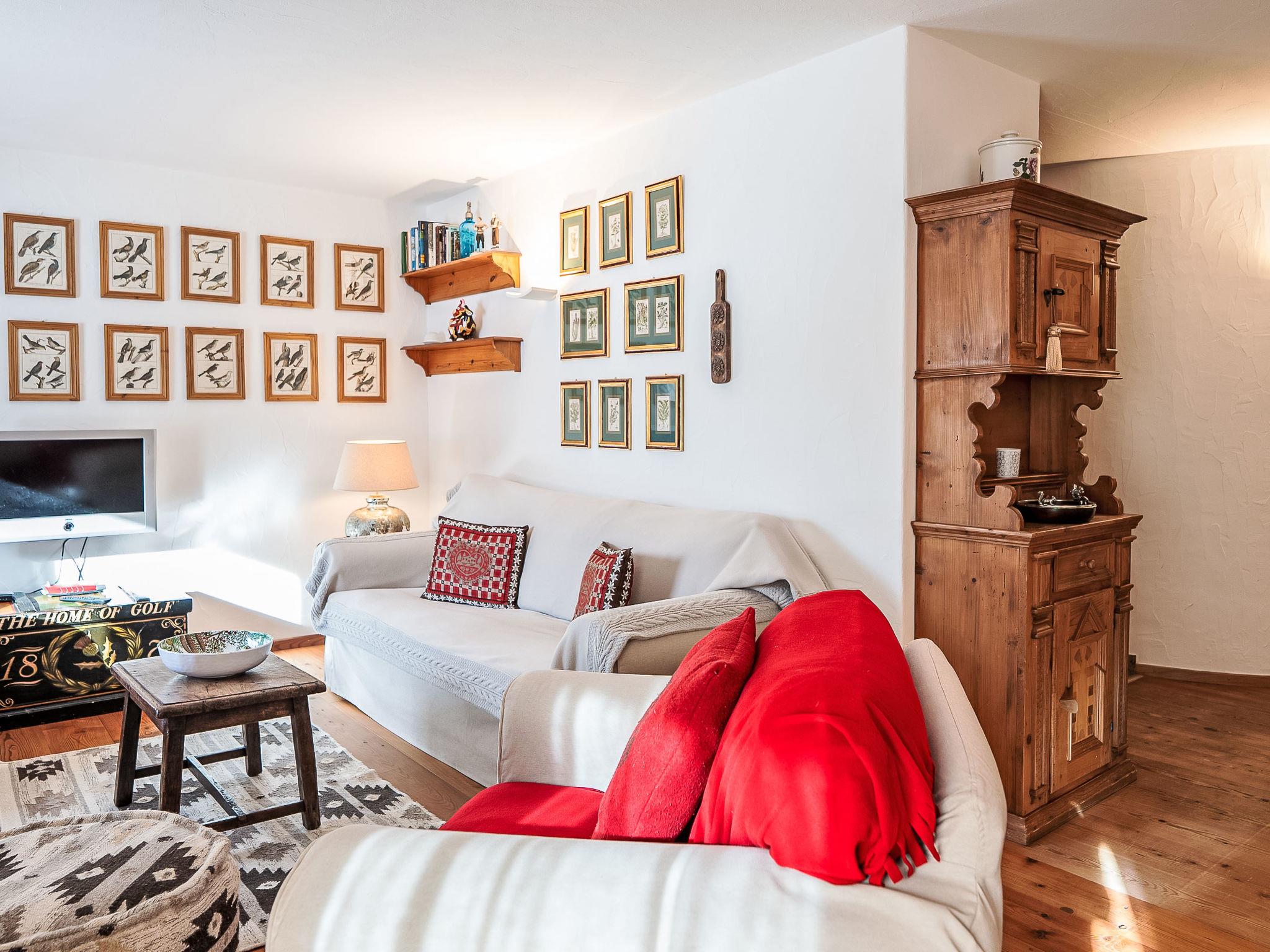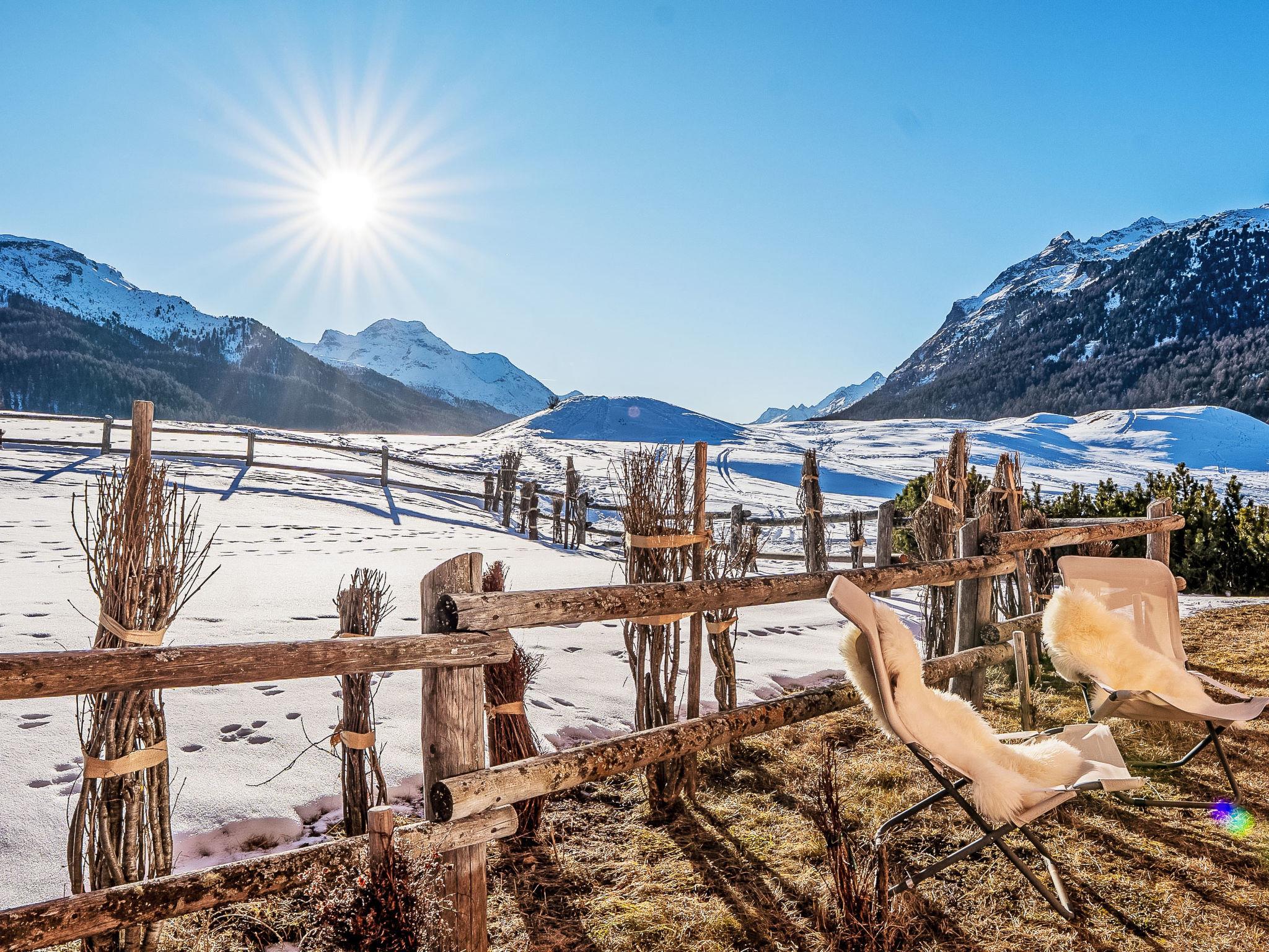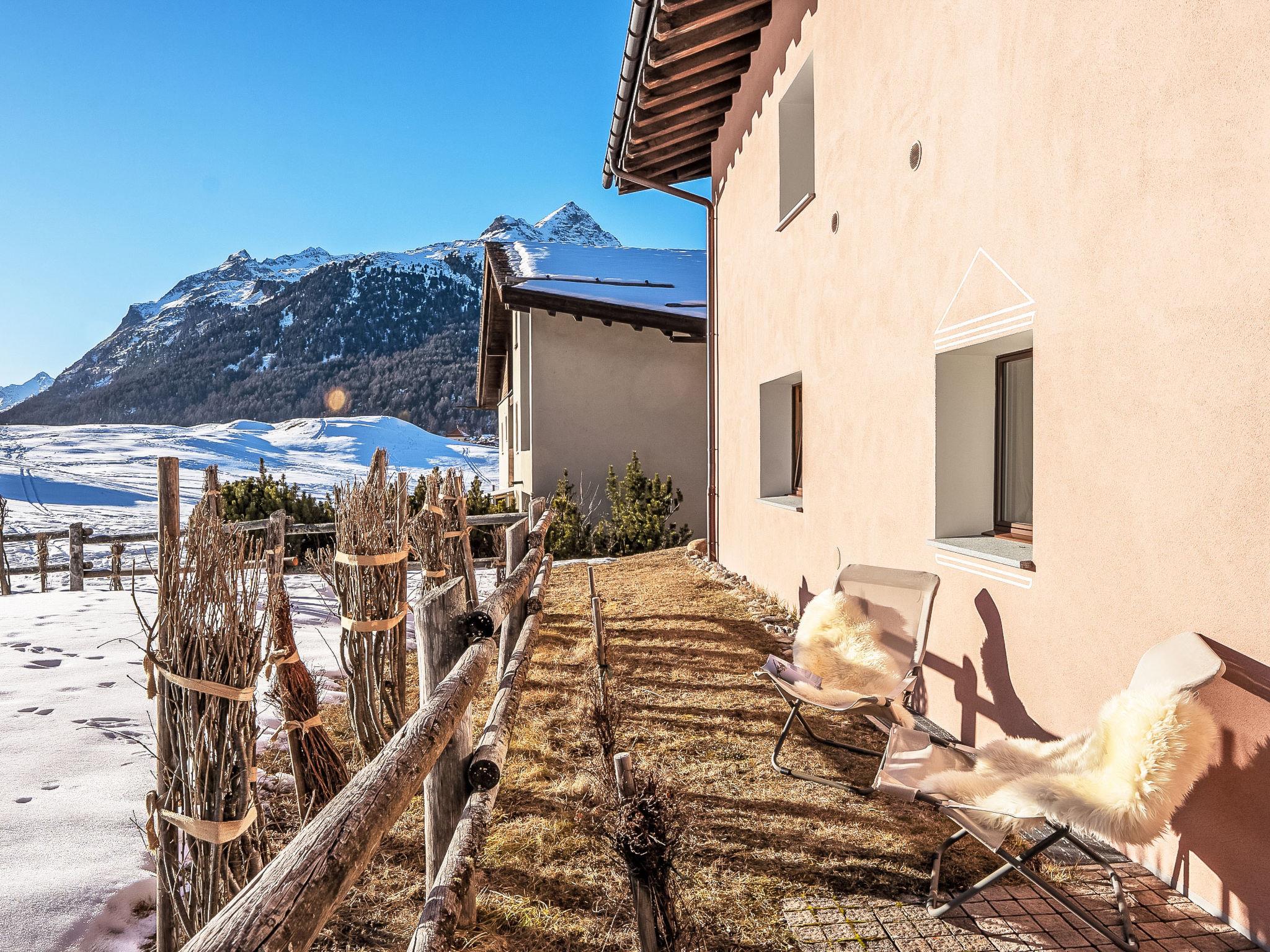 Surlej: Beautiful apartment house "Chesa Saira", 3 storeys, surrounded by meadows. In a quiet, sunny position in the residential district, 300 m from the lake, 800 m from the skiing area. For shared use: patio. In the house: storage room for skis, washing machine (extra), tumble dryer (for shared use, extra), drying room. 60 m footpath to the house. Communal covered parking at the house. Shop 1 km, grocery 1 km, café 150 m, bus stop 300 m, indoor swimming pool 6 km. Surf school 1.7 km, tennis 1.7 km, minigolf 6 km, riding stable 3.3 km, sports centre 1 km, walking paths from the house, ski rental 400 m, ski bus stop 300 m, ski school 400 m, cross country ski track 300 m, ice rink 1 km, children's playground 1 km. Nearby attractions: Nietzsche Haus in Sils-Maria 6 km, Segantini Museum in St. Moritz 6 km. Well-known ski regions can easily be reached: Corvatsch-Furtschellas 800 m, Corviglia 6 km, Diavolezza - Lagalb 25 km. Well-known lakes can easily be reached: Silvaplana See 1 km, Silser See 6 km, St. Moritzer See 6 km. Hiking paths: Corvatsch - Furtschellas 800 m, Via Engiadina 1.2 km.