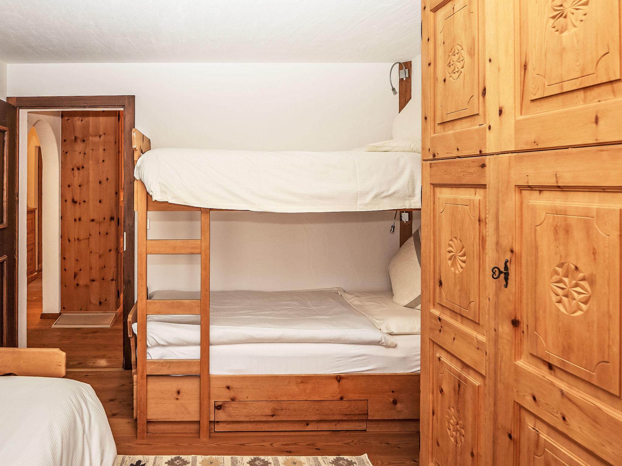 "Chesa Saira 2", 3-room apartment 90 m2, on the ground floor. Tasteful and wooden furniture furnishings: open living/dining room with dining table and TV (flat screen). Exit to the patio. 1 double bedroom with 1 double bed (2 x 90 cm, length 200 cm). 1 room with 1 bed (90 cm, length 190 cm), 1 x 2 bunk beds (90 cm, length 190 cm). Open kitchen (oven, dishwasher, 4 ceramic glass hob hotplates, toaster, kettle, electric coffee machine, Capsules for coffee machine (Nespresso) extra, raclette grill, fondue Set (cheese)). Shower/bidet/WC, sep. WC. Heating. Wooden floors. Patio. Terrace furniture, deck chairs (2). View of the mountains and the countryside. Facilities: iron, hair dryer. Extra. Garage space n 29 on the property (1 car), height 215 cm, width 220 cm. Please note: non-smokers only, non-smoking house. Maximum 2 small pets/ dogs allowed. No lift.