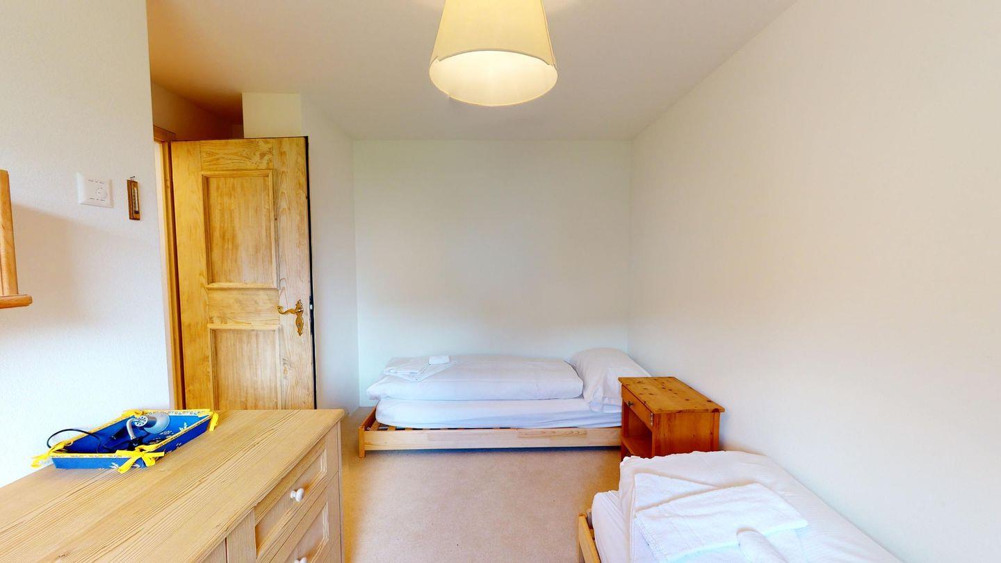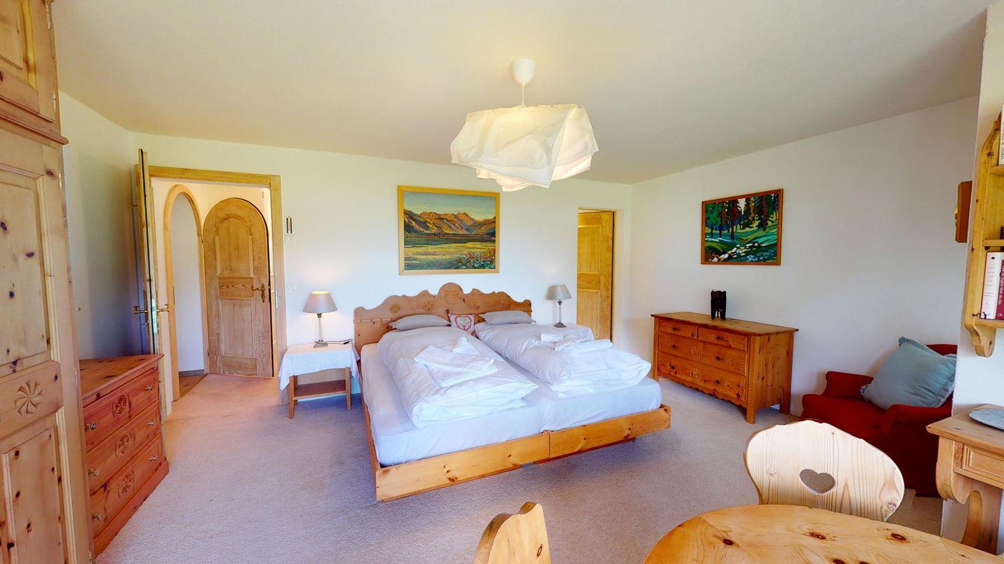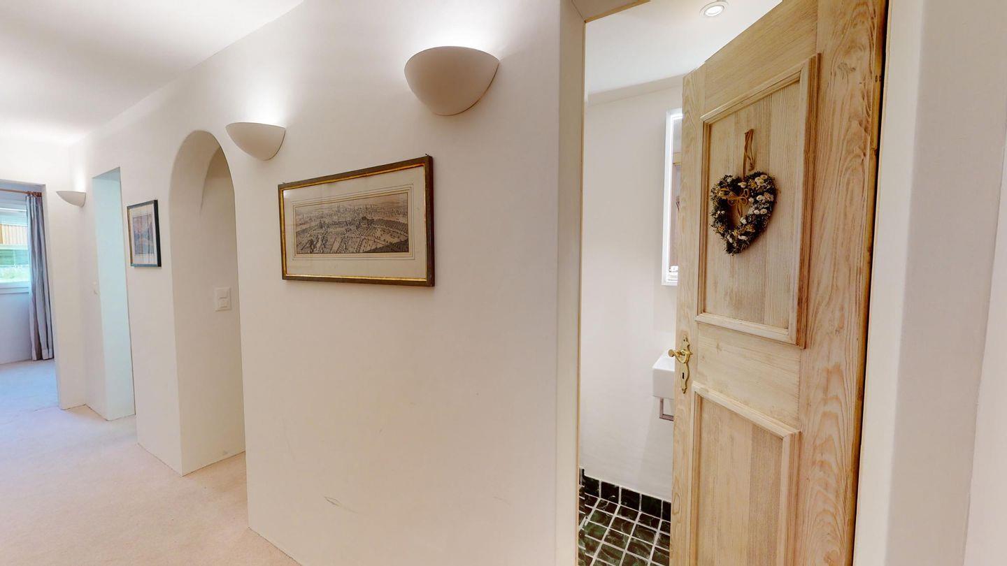 Einmalige 5-Zimmer-Wohnung im Erdgeschoss, herrliche Aussicht auf den See. Geräumiges Wohnzimmer mit Ausgang in den Garten, mit freier Aussicht. Fernseher, WLAN. Grosse, gut ausgestattete Küche (Geschirrspüler, Backofen, Steamer, Nespresso Kaffeemaschine, Milchschäumer) die zum Wohnzimmer hin offen ist. Getrennte Toilette. Hauptschlafzimmer. Badezimmer mit Badewanne/Dusche/Lavabo und Toilette. Zimmer mit 2 Einzelbetten. Doppelzimmer mit Bad//WC und Waschbecken. Eine Innentür führt zu einem kleinen Wohnzimmer mit zwei Schrankbetten. Bad/Dusche/WC/Lavabo. Waschküche und Sauna geteilt. Ein Parkplatz in der Garage und ein Parkplatz im Freien. Haustiere sind nicht erlaubt.