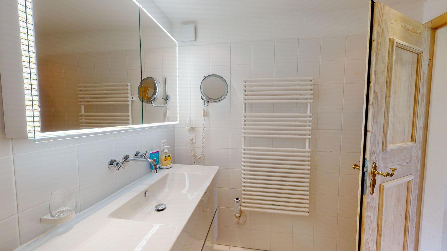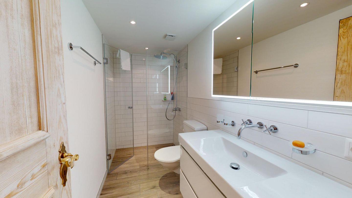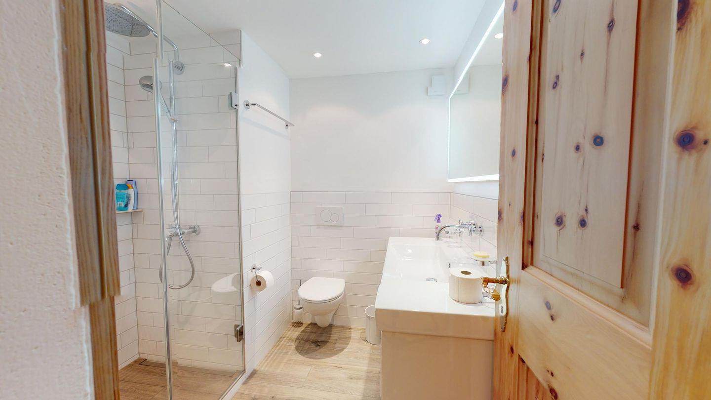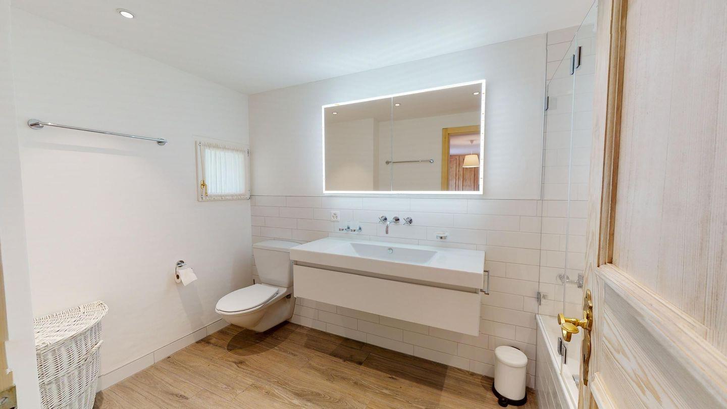 Einmalige 5-Zimmer-Wohnung im Erdgeschoss, herrliche Aussicht auf den See. Geräumiges Wohnzimmer mit Ausgang in den Garten, mit freier Aussicht. Fernseher, WLAN. Grosse, gut ausgestattete Küche (Geschirrspüler, Backofen, Steamer, Nespresso Kaffeemaschine, Milchschäumer) die zum Wohnzimmer hin offen ist. Getrennte Toilette. Hauptschlafzimmer. Badezimmer mit Badewanne/Dusche/Lavabo und Toilette. Zimmer mit 2 Einzelbetten. Doppelzimmer mit Bad//WC und Waschbecken. Eine Innentür führt zu einem kleinen Wohnzimmer mit zwei Schrankbetten. Bad/Dusche/WC/Lavabo. Waschküche und Sauna geteilt. Ein Parkplatz in der Garage und ein Parkplatz im Freien. Haustiere sind nicht erlaubt.