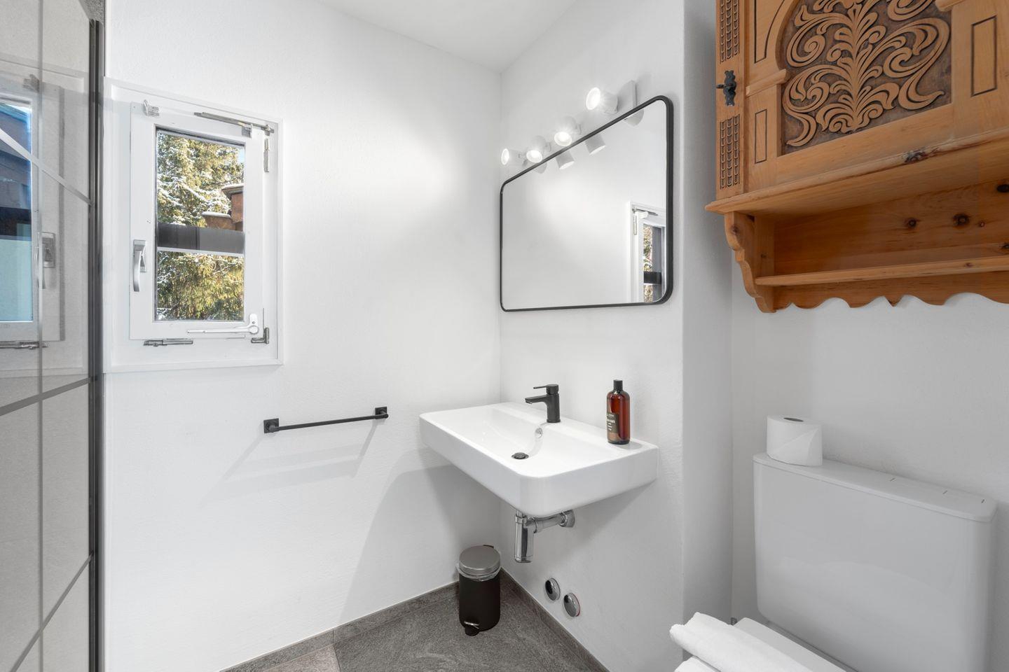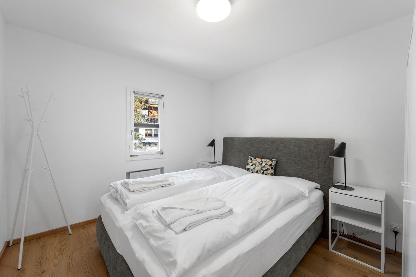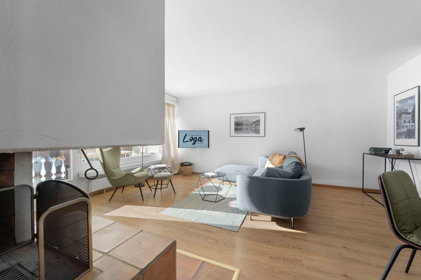 Helle 3-Zimmerwohnung im 1. Stock an ruhiger, sonniger Süd-Ost Lage, ca. 70 m2. Wohn-/ Esszimmer mit Kamin und Balkon (Gartenmöbel vorhanden). TV, WLAN. Separate Küche mit Backofen. 2 Doppelzimmer. Badezimmer mit Dusche/WC/Lavabo und Fenster. Separates WC/Lavabo. Sauna im Haus (gegen Bezahlung). Gemütliche und komfortable Einrichtung. Garagenplatz. Waschküche zur Mitbenützung. Haustiere sind erlaubt.