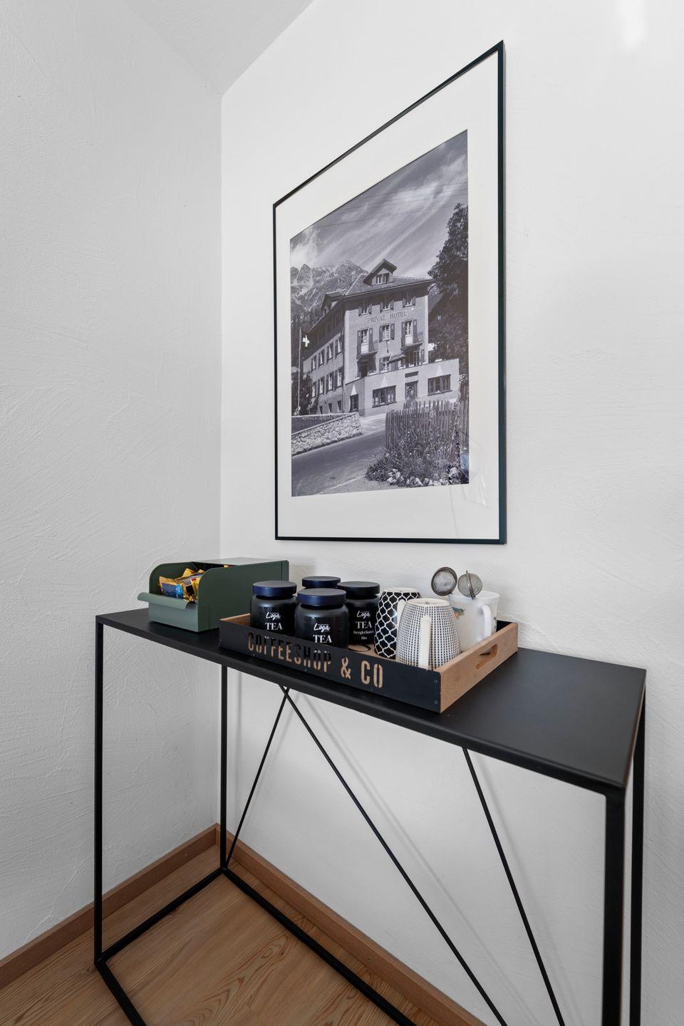 Das heisst, dass Sie eine Teebar mit Teekrug zur Verfügung haben während Ihres Aufenthaltes. Sie können soviel Tee trinken wie Sie möchten. Eine sehr grosse Auswahl ist jeweils in der Wohnung. Dazu hat es auch genügend Zucker.