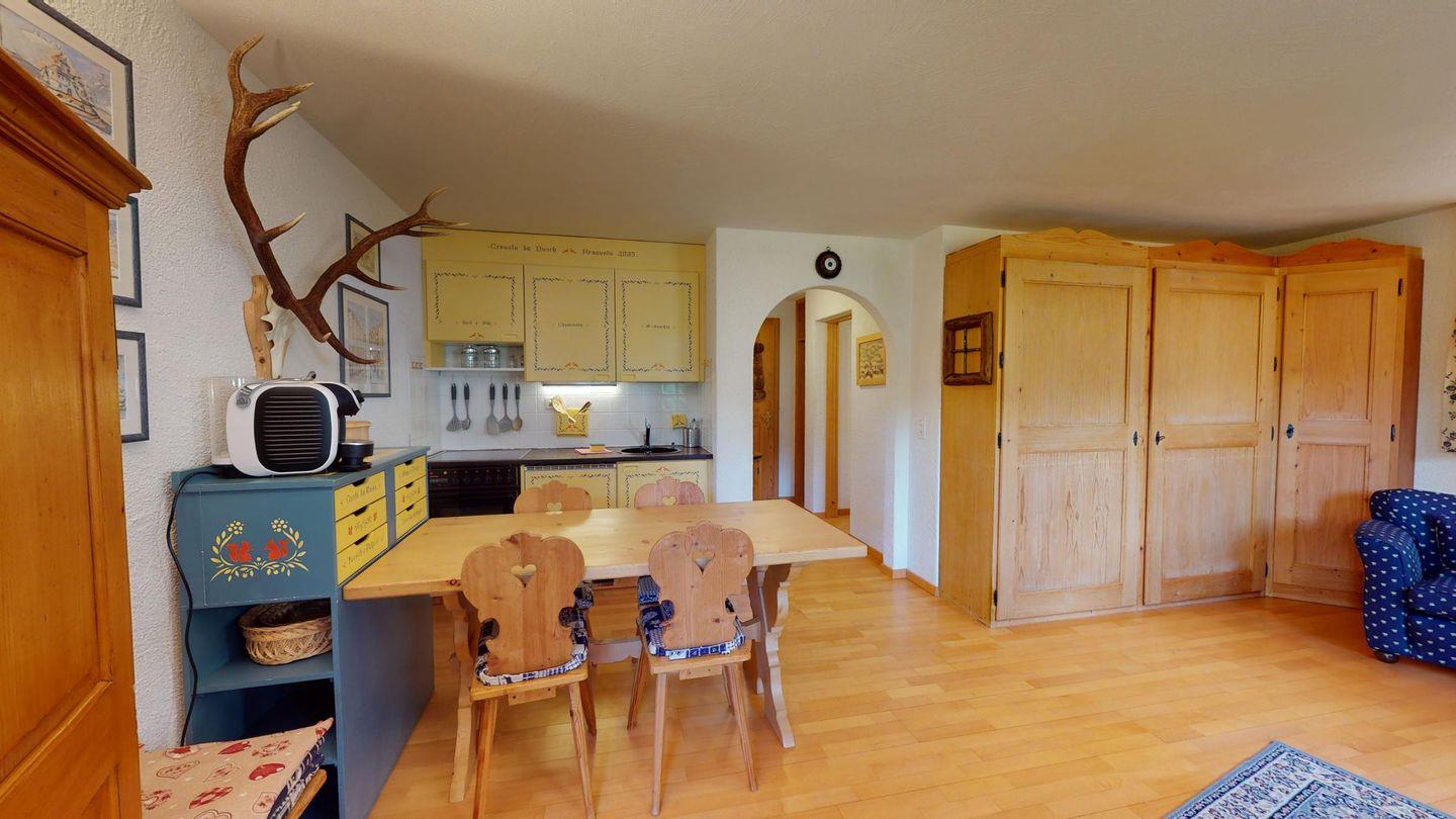 Die Chesa God Mez liegt am Dorfeingang von Surlej, an ruhiger Lage mit Aussicht auf den Silvaplanersee. Das Haus besitzt eine Sauna, welche man durch Reservation benutzen kann. Für die Kleinen gibt es einen Spielraum mit Ping-Pong Tisch. Die Corvatschbahn ist zu Fuss oder mit dem gratis Skibus erreichbar. Der Corvatsch ist im Winter dank wunderschönen Skipisten ein beliebtes Skigebiet. Im Sommer ist er Ausgangspunkt vieler Wanderungen. Langlaufloipen und Wanderwege sind nahe beim Haus. Die Bushaltestelle ist 2 Gehminuten entfernt. Busse fahren alle 30 Minuten in alle Richtungen. Einkaufsmöglichkeiten gibt es im 2km entfernten Silvaplana. Ein kleines Lebensmittelgeschäft wurde in Surlej vor kurzem eröffnet.