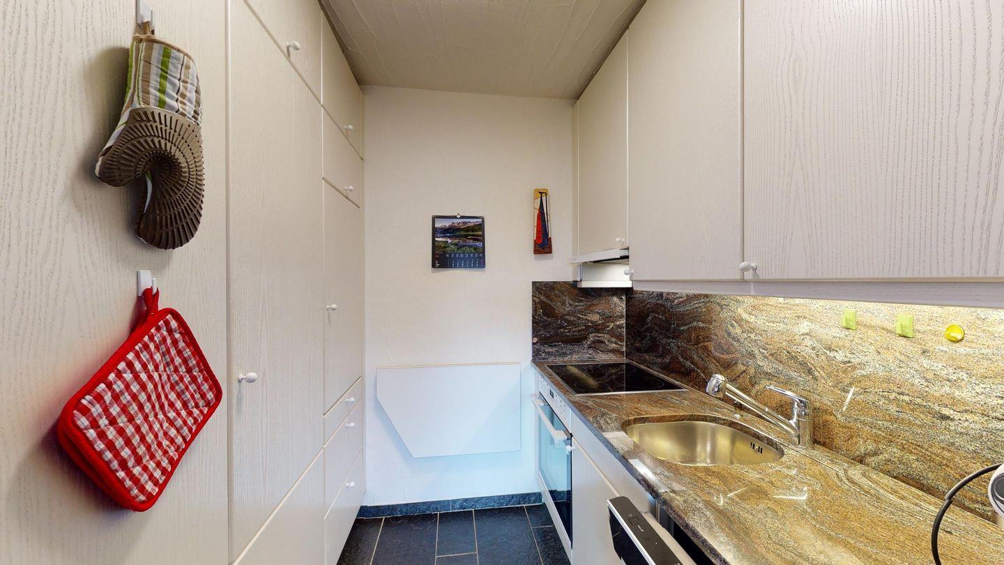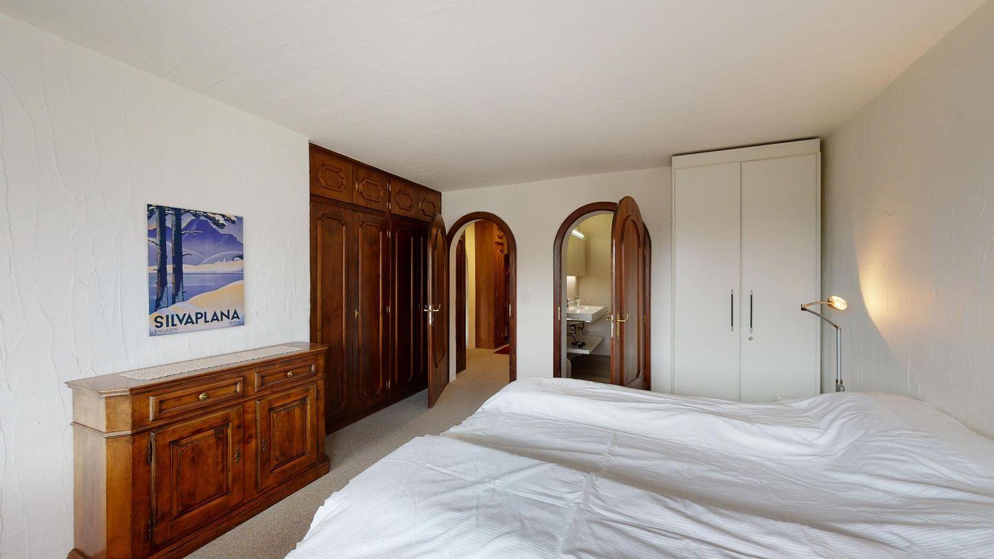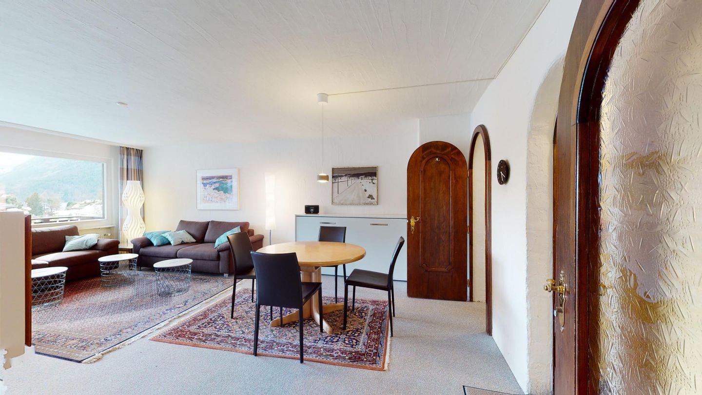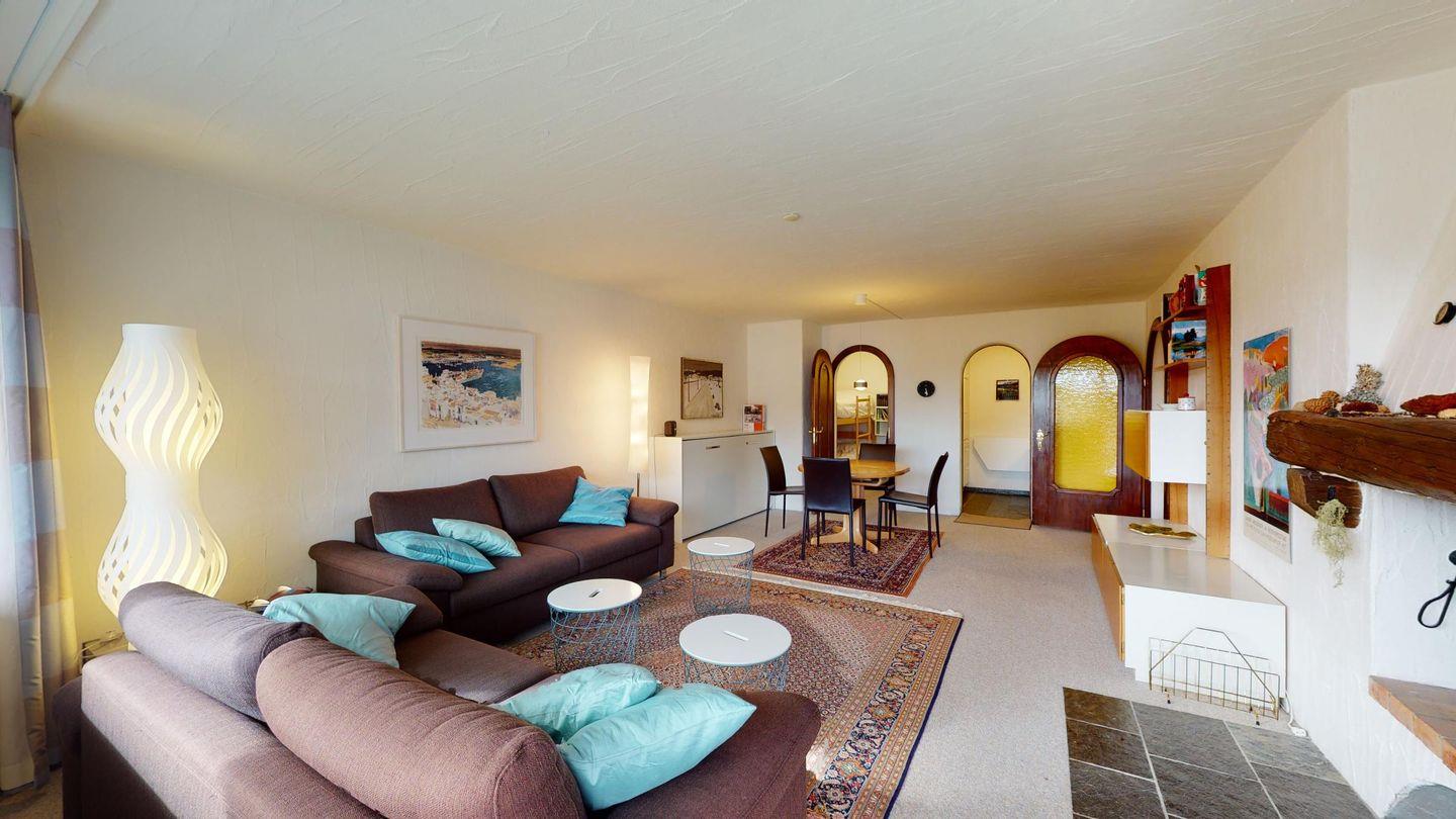 3-Zimmerwohnung im 2. Stock, ca. 90 m2. Wohn-/ Esszimmer mit Ausgang auf den Balkon. Radio und TV. Ruhige Lage mit Bergsicht. Doppelzimmer mit Badezimmer (Dusche/Lavabo/WC) und Ausgang auf den Balkon, kleines Zimmer mit Etagenbett (fensterloser Raum), Badezimmer mit Badewanne/Lavabo/WC, komplett eingerichtet Küche mit Backofen, Garagenplatz, Haustiere sind nicht erlaubt.