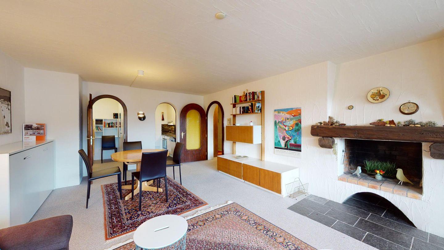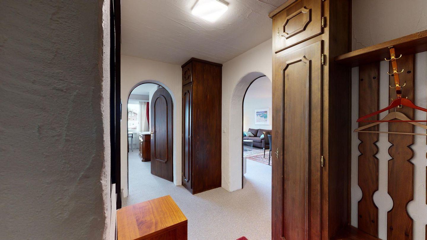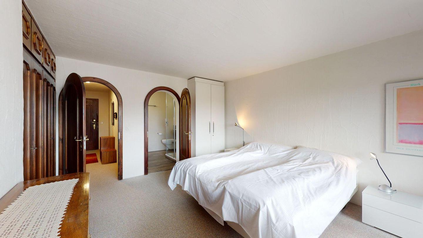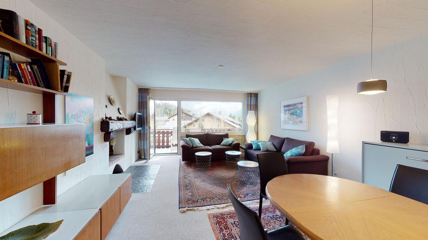 3-Zimmerwohnung im 2. Stock, ca. 90 m2. Wohn-/ Esszimmer mit Ausgang auf den Balkon. Radio und TV. Ruhige Lage mit Bergsicht. Doppelzimmer mit Badezimmer (Dusche/Lavabo/WC) und Ausgang auf den Balkon, kleines Zimmer mit Etagenbett (fensterloser Raum), Badezimmer mit Badewanne/Lavabo/WC, komplett eingerichtet Küche mit Backofen, Garagenplatz, Haustiere sind nicht erlaubt.