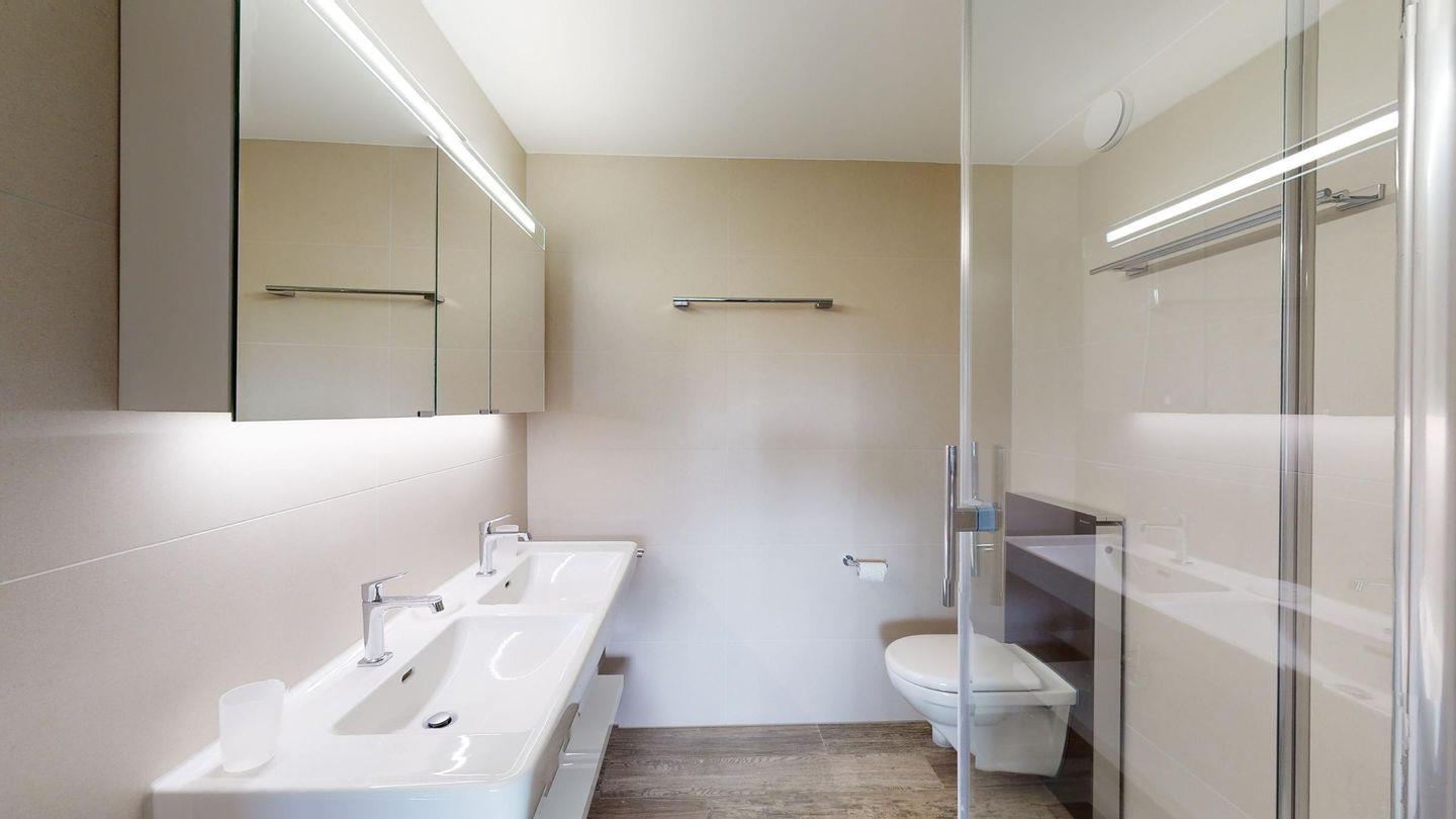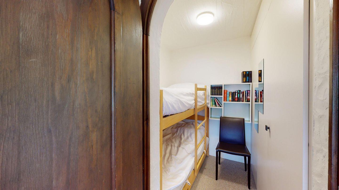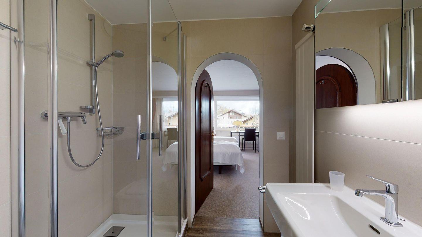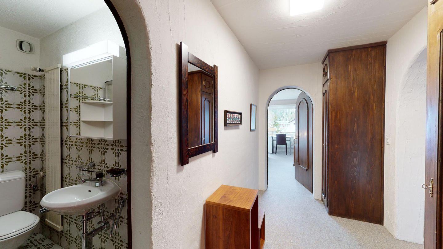 3-Zimmerwohnung im 2. Stock, ca. 90 m2. Wohn-/ Esszimmer mit Ausgang auf den Balkon. Radio und TV. Ruhige Lage mit Bergsicht. Doppelzimmer mit Badezimmer (Dusche/Lavabo/WC) und Ausgang auf den Balkon, kleines Zimmer mit Etagenbett (fensterloser Raum), Badezimmer mit Badewanne/Lavabo/WC, komplett eingerichtet Küche mit Backofen, Garagenplatz, Haustiere sind nicht erlaubt.